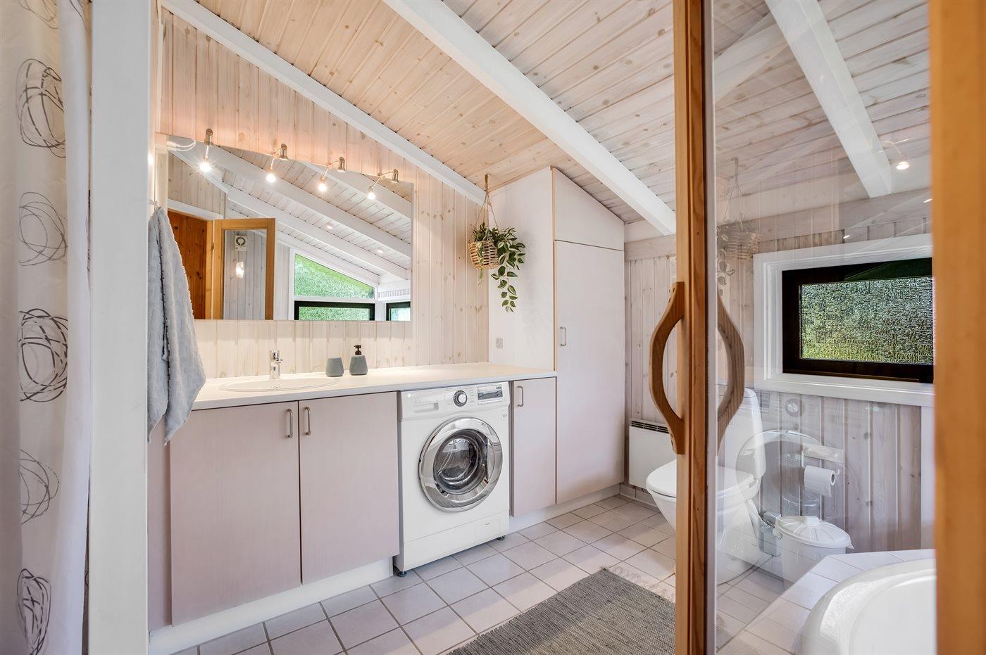 Der er 2 badeværelser med bruseniche og 2 toiletter. Der er gulvvarme på 1 badeværelse. I saunaen er der mulighed for afslapning.
