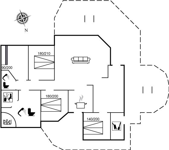 Der er i alt 4 soveværelser. Sovepladserne fordeler sig på: 6 sovepladser i dobbeltsenge. 2 sovepladser i køjeseng. Desuden er der en stor hems. Derudover er der 1 stk. barneseng.