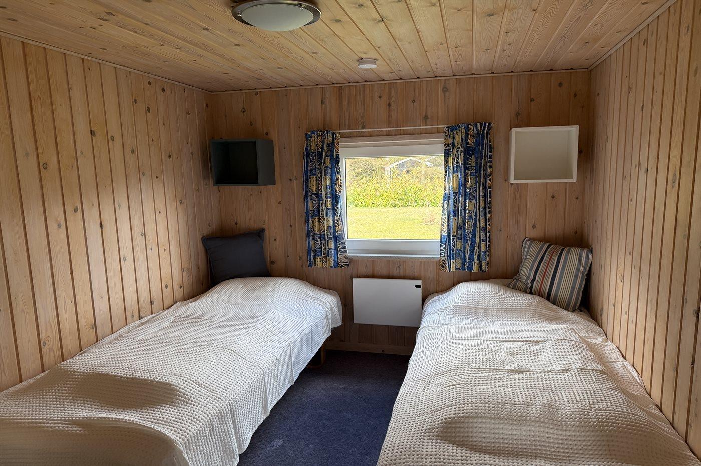 Der er i alt 4 soveværelser. Sovepladserne fordeler sig på: 6 sovepladser i dobbeltsenge. 2 sovepladser i enkeltsenge. Derudover er der 1 stk. barneseng.
