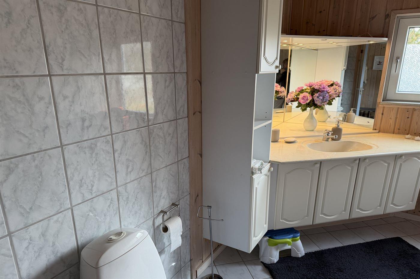 Der er 2 badeværelser med bruseniche og 2 toiletter. Der er gulvvarme på 2 badeværelser.