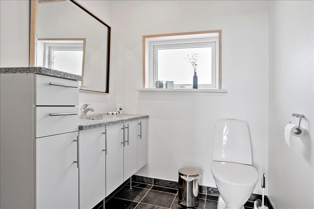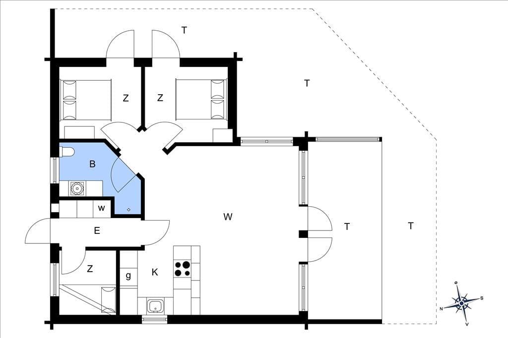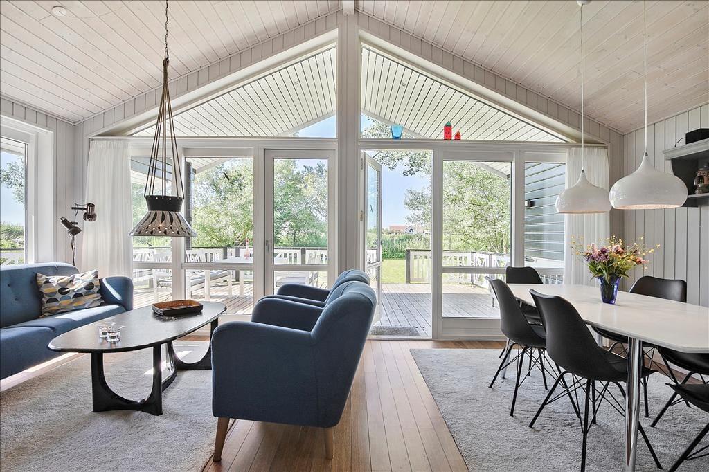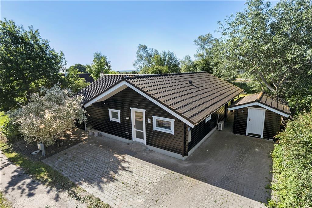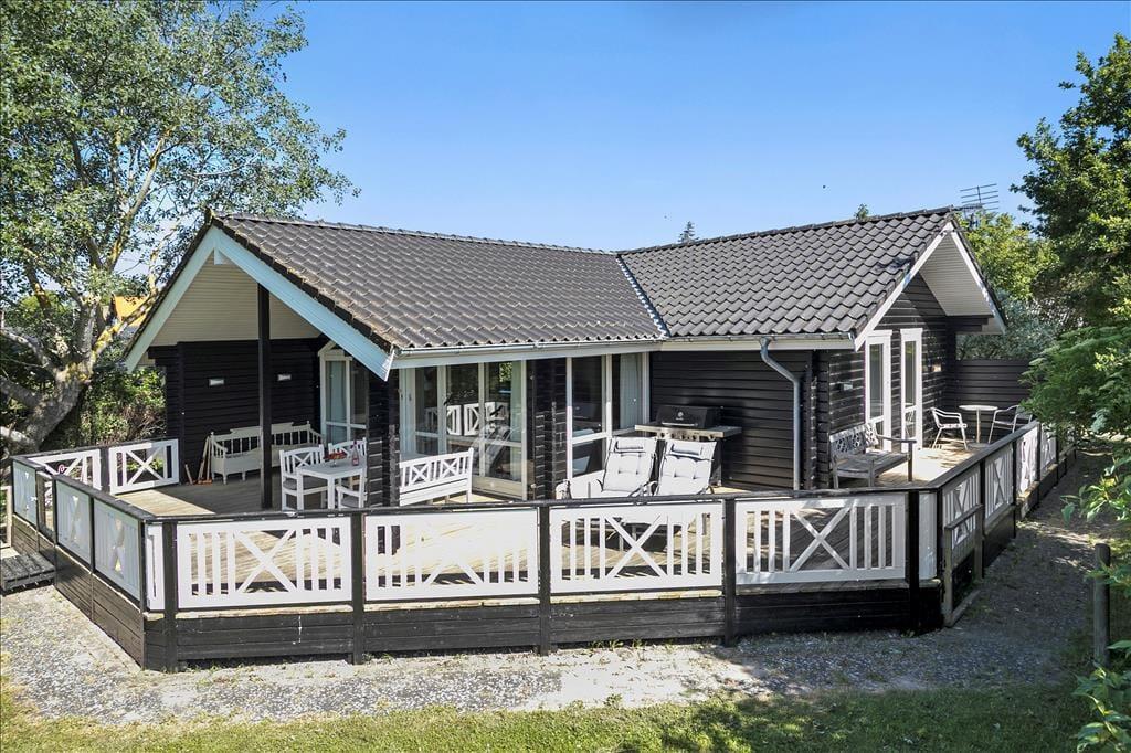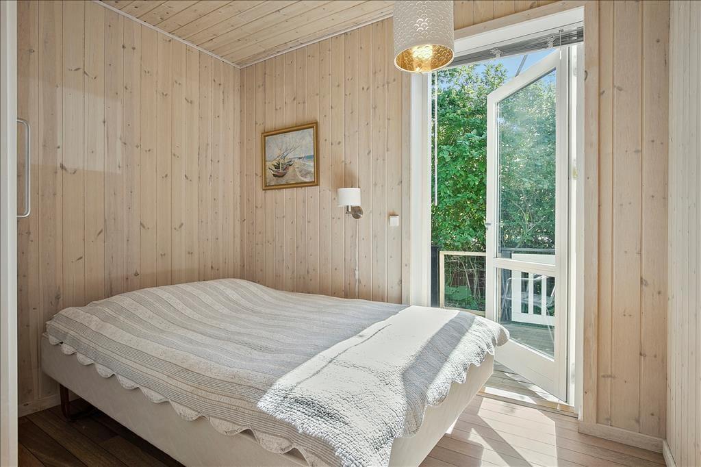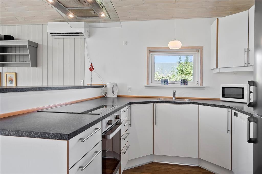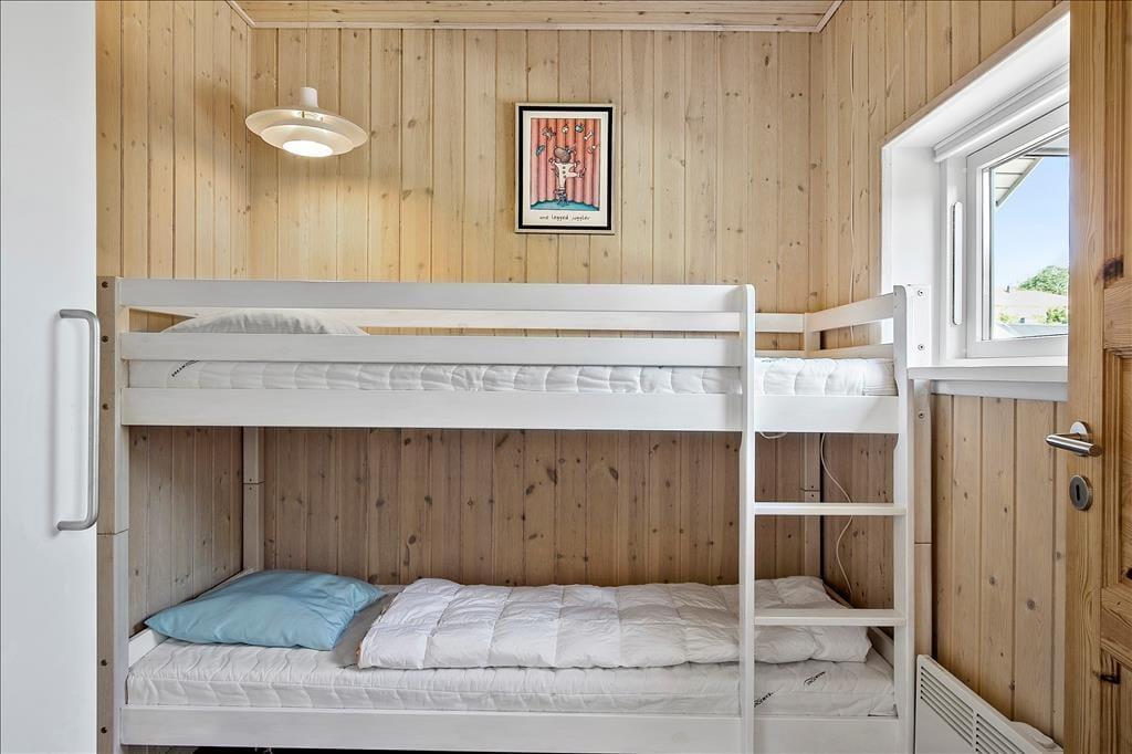 Feriehuset som er fra 2008 er indrettet med kombineret køkken og opholdsstue. Lyst køkken med indbygget ovn, kogeplader, køleskab med fryser, mikroovn og opvaskemaskine. Opholdsstue med udgang til delvis overdækket terrasse og med et stort lysindfald fra vinduespartierne. Loft til kip. To sofaer og TV med Waoo lille TV-pakke. Badeværelse med sorte gulvklinker og hvide elementer, bruseniche og gulvvarme. Entre med vaskemaskine med integreret tørretumbler. Tre soveværelser, to med dobbeltsenge og et med køjeseng. Fra to af soveværelserne er der havedør ud til terrassen. Huset opvarmes med varmepumpe og elvarme.