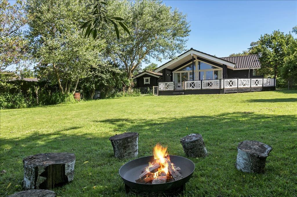 Huset er beliggende på en 904 m2 grund. Haven er totalt indhegnet, hvilket gør den meget velegnet hvis der er små børn og hunde. Der en delvis overdækket træterrasse. Ved huset er der havemøbler, liggestole, gasgrill, bålsted og sandkasse. Bagerst på grunden er der en låge, som giver direkte adgang til stisystemet mod stranden
