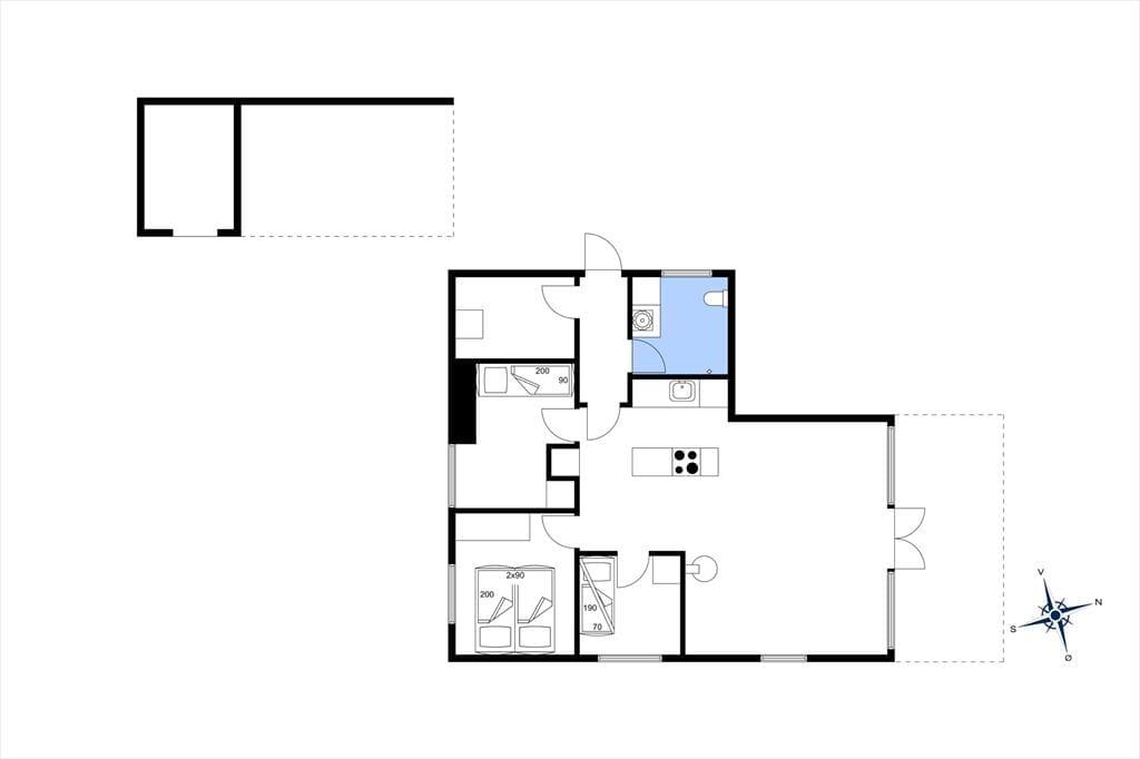 Sommerhuset er indrettet med kombineret køkken og opholdsstue. Lyst Køkken med flisegulv, indbygget ovn, kogeplader, opvaskemaskine, mikroovn og køleskab. Opholdsstue med loft til kip, udgang til delvis overdækket terrasse, stort vinduesparti mod terrassen, som giver masser af lys i huset, hyggelig spisekrog, sofaer, lænestol, Smart-TV med indbygget Chromecast som har adgang til streamingtjenester (kræver eget login). Badeværelse med flisegulv, bruseniche og vaskemaskine. Tre soveværelser, et med en dobbeltseng (to enkeltsenge som er sat sammen), et med en enkeltseng og det tredje med en køjeseng. Der er desuden et depotrum med en fryser. Huset opvarmes med varmepumpe, brændeovn og elvarme.