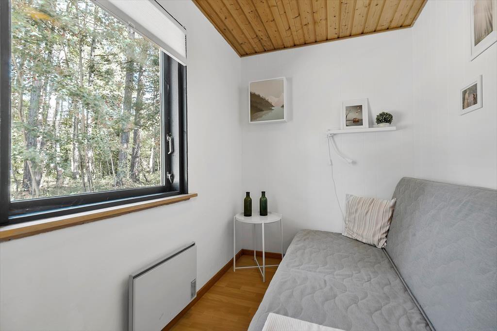 Sommerhus i Bjerge Strand, Sydvestsjælland, med plads til 4 voksne. Der er en hyggelig indretning med bl.a. brændeovn.