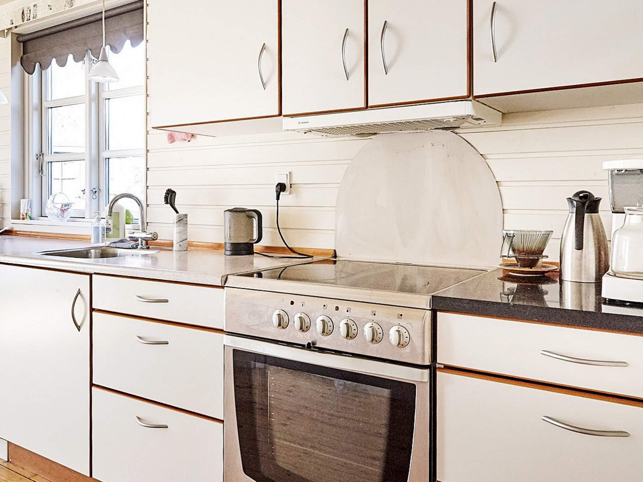 Køkkenafd.: El-komfur, køleskab, køle-frys, mikroovn, emhætte, kaffemaskine, opvaskemask.