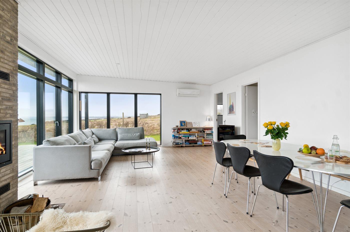 Kun 100 meter fra en dejlig og børnevenlig sandstrand og med udsigt til havet og åbne marker finder man dette skønne sommerhus. Huset er beliggende i et mindre og roligt sommerhusområde for enden af en blind vej og direkte ud til åbne marker.