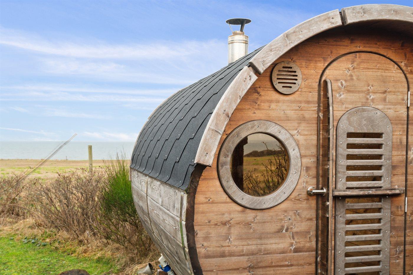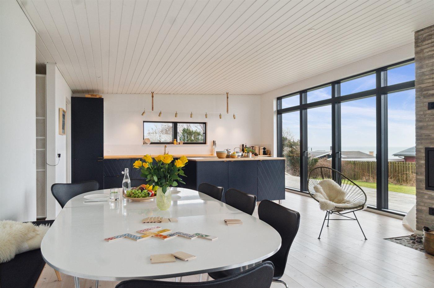 Fra huset og fra terrassen er der udsigt over Jammerland Bugt med kig helt til Asnæs og Kalundborg. Dette gælder også fra den udendørs sauna, hvorfra man kan nyde den flotteste udsigt. Huset fremtræder lyst og venligt på grund af det store lysindfald fra de mange store vinduespartier.