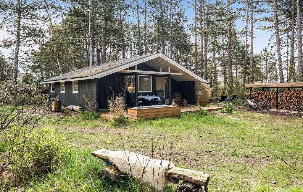 Hyggeligt træhus nær stranden i Store Fuglede med stor naturgrund og brændeovn.