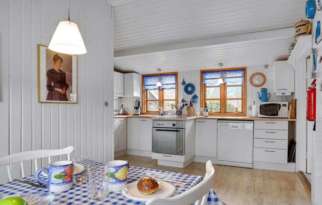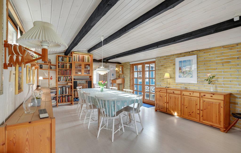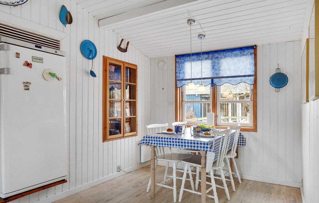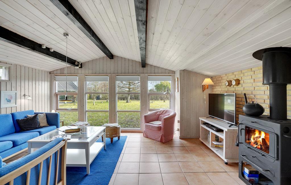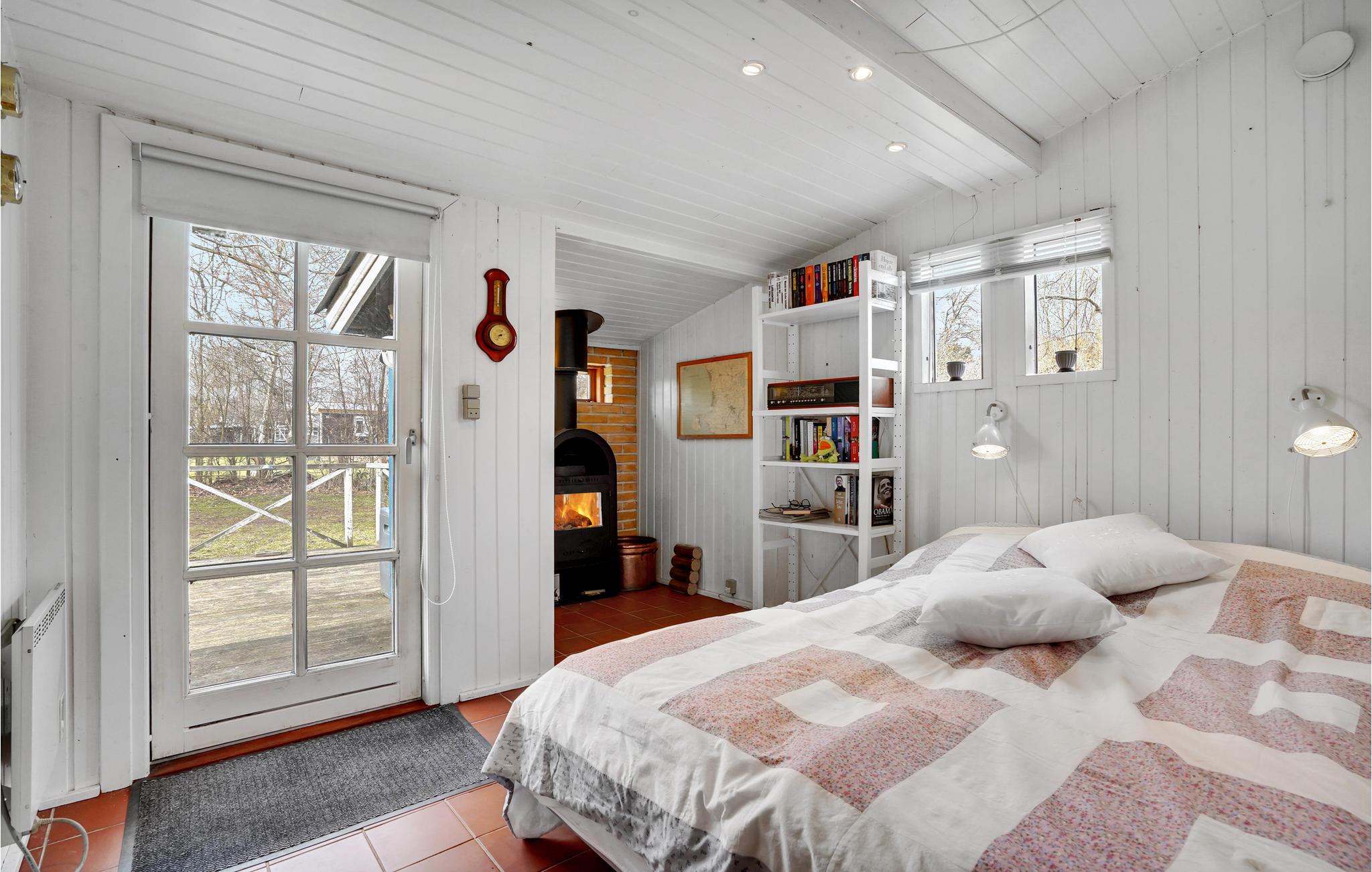 Dette feriehus har plads til op til 6 personer med 3 soveværelser. To af soveværelserne har dobbeltsenge, det tredje soveværelse har en køjeseng. Interiøret er hyggeligt og svarer til den klassiske skandinaviske sommerhusstil. I stuen kan I sætte jer godt til rette ved brændeovnen og nyde hyggen efter en lang dag.
