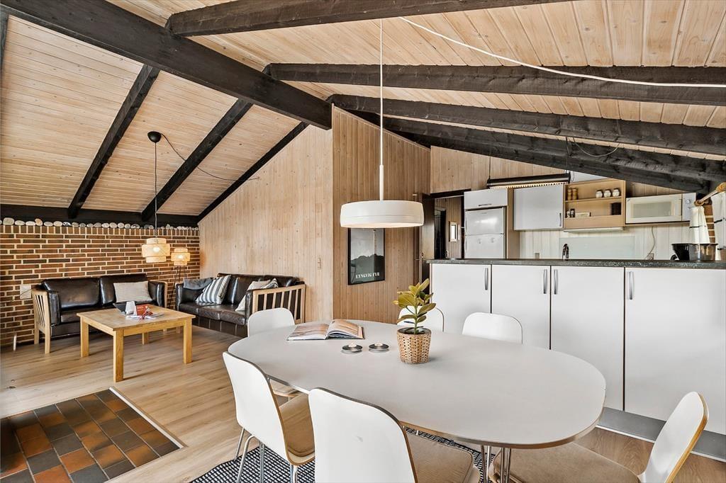Sommerhuset er på 72 m2, og det har ligget her i Bjerregårds klitlandskab siden 1980. Inden døre er køkken og stue slået sammen, så det er nemt at inkludere madlavningen i de fælles hyggestunder. Om aftenen kan I samles i sofaafdelingen og nyde roen, mens I ser en spændende film eller jeres yndlingsserie på tv’et – måske med tæpper, snacks og stearinlys for ekstra hygge. I den anden ende af huset ligger tre gode værelser med i alt fem sovepladser, og et badeværelse med tilhørende sauna er også del af planløsningen. Ved siden af hoveddøren har I adgang til et lille vaskerum, hvis I får brug for at benytte vaskemaskinen og tørretumbleren. Huset er de seneste år blevet delvist renoveret, med nyt gulv, nyt køkken, renoveret skorsten og nyt nye møbler, heriblandt nye senge og nye sofaer.