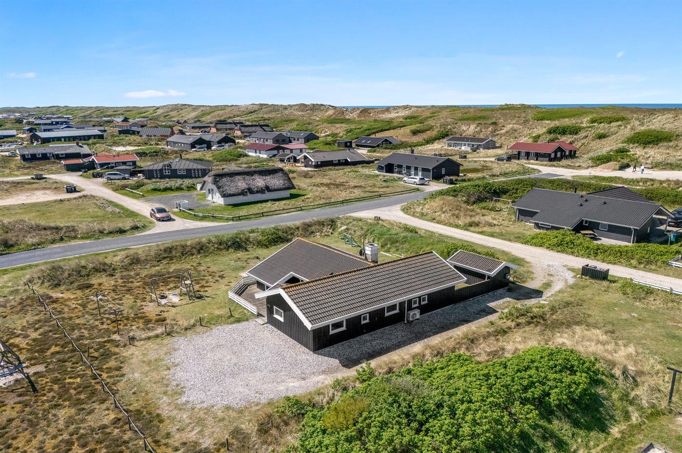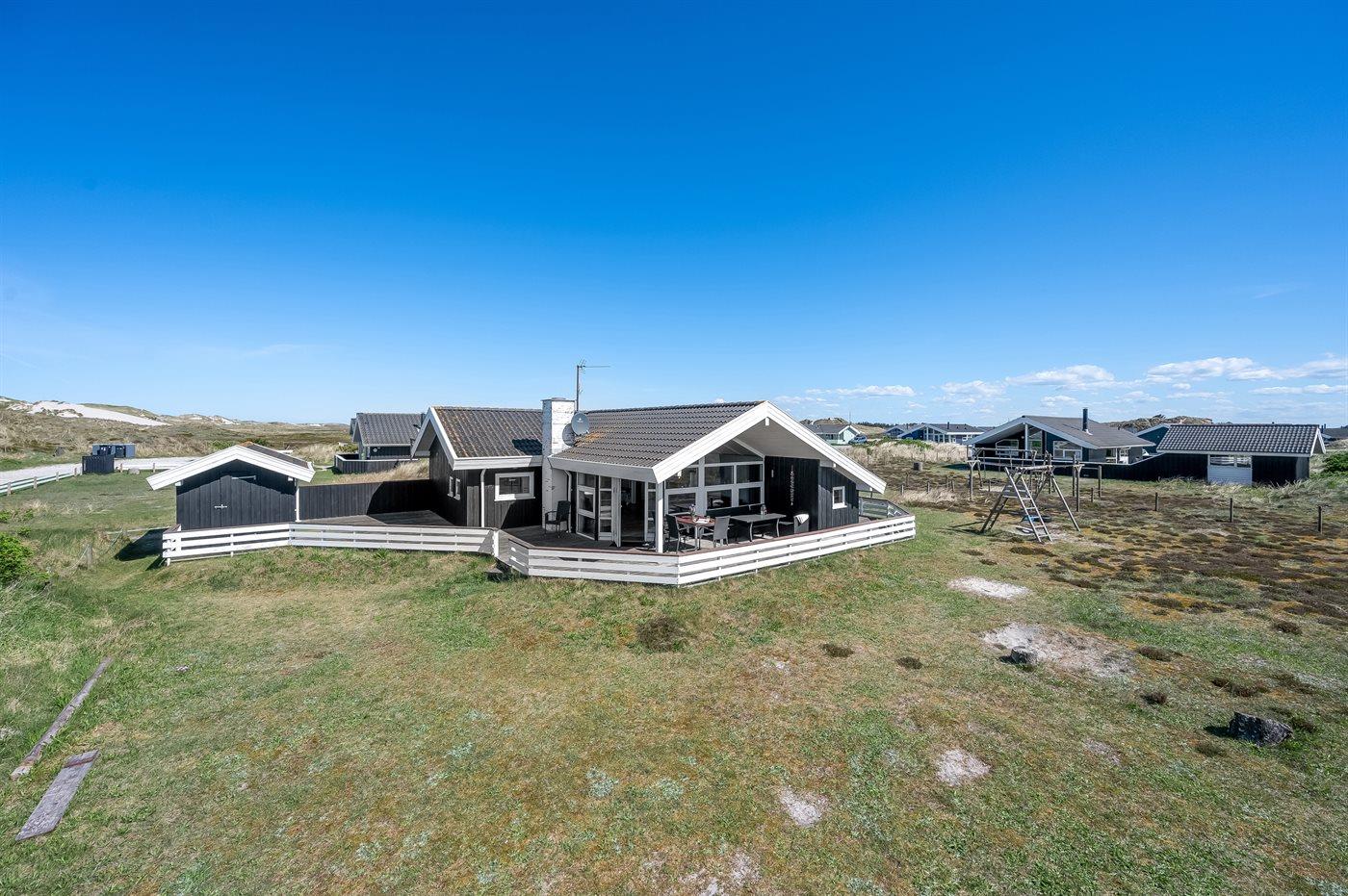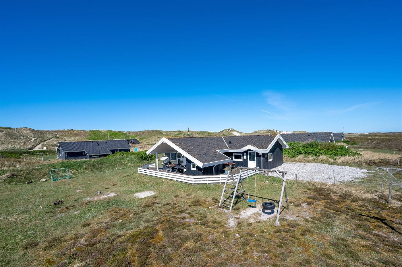 Virkelig lækkert sommerhus i træ med spa og sauna. Huset er bygget i 2003 og beliggende på en naturgrund kun 200 m fra Vesterhavet. Til huset hører stort terrasseareal, både åbent og overdækket, med havemøbler. Lyse trælofter og -vægge. Trægulv med løse tæpper, gulvtæppe i værelser, klinkegulv i gang. Lækkert badeværelse med spa, bruseniche og gulvvarme. Fra badeværelset direkte adgang til husets sauna. Gæstetoilette. Det moderne veludstyrede køkken indeholder bl.a. varmluftovn, mikrobølgeovn, opvaskemaskine og fryser. Hyggelig og smagfuldt indrettet opholdsstue med brændeovn, TV med parabol (digital), DVD-afspiller og stereoanlæg med CD-afspiller. Husets sovepladser fordeler sig på 3 værelser, alle med dobbeltseng. Huset er yderligere udstyret med gratis ADSL-internetforbindelse (computer medbringes), samt vaskemaskine og tørretumbler. Sandkasse og gynge på grunden. Et flot, lyst, venligt og anbefalelsesværdigt sommerhus med udsigt til klitterne.