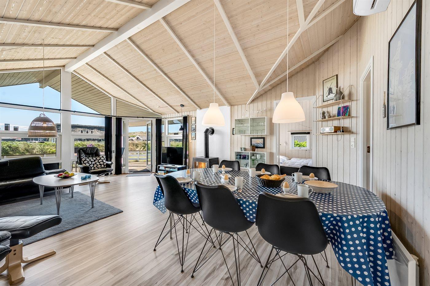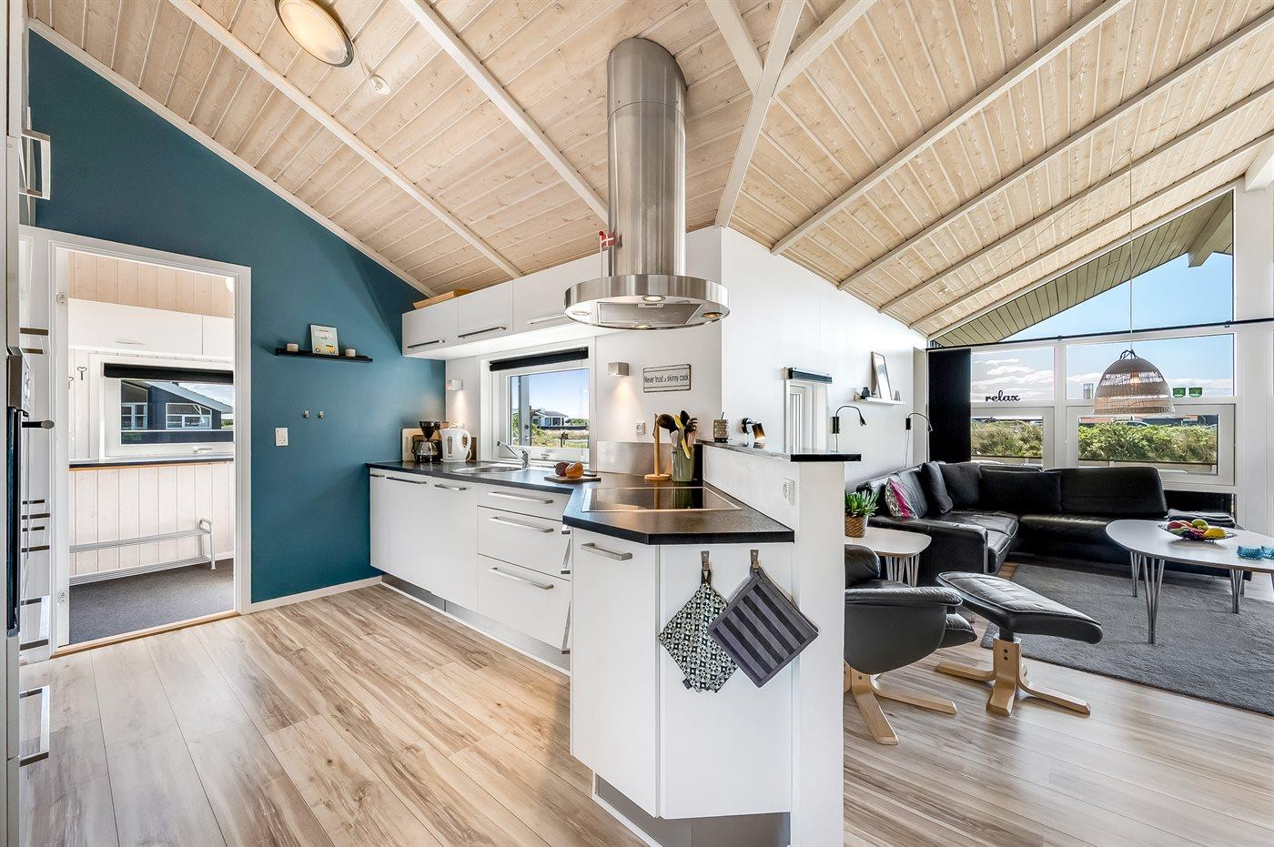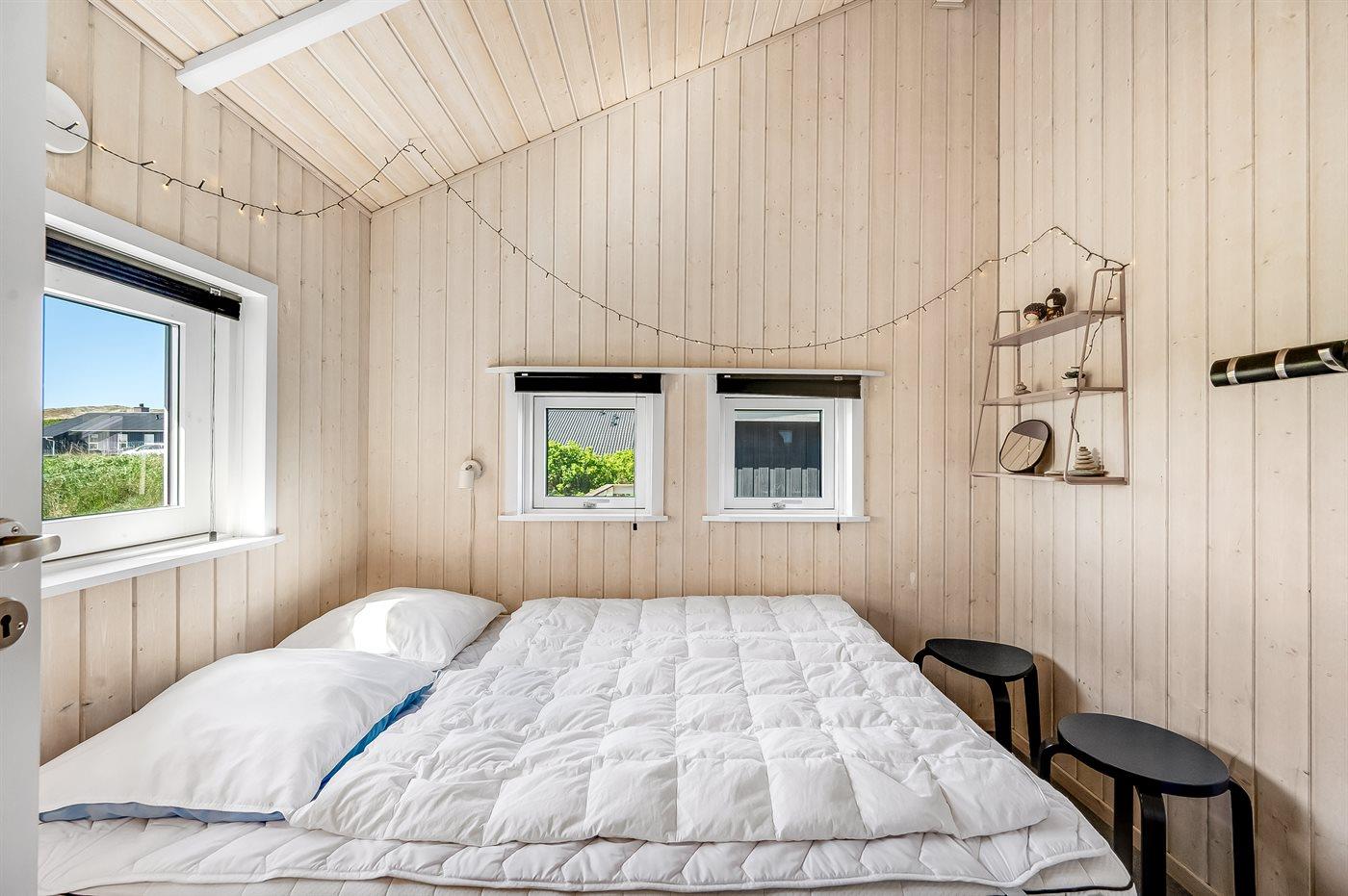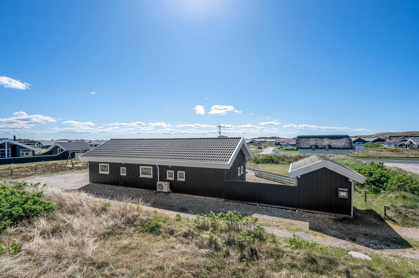 Virkelig lækkert sommerhus i træ med spa og sauna. Huset er bygget i 2003 og beliggende på en naturgrund kun 200 m fra Vesterhavet. Til huset hører stort terrasseareal, både åbent og overdækket, med havemøbler. Lyse trælofter og -vægge. Trægulv med løse tæpper, gulvtæppe i værelser, klinkegulv i gang. Lækkert badeværelse med spa, bruseniche og gulvvarme. Fra badeværelset direkte adgang til husets sauna. Gæstetoilette. Det moderne veludstyrede køkken indeholder bl.a. varmluftovn, mikrobølgeovn, opvaskemaskine og fryser. Hyggelig og smagfuldt indrettet opholdsstue med brændeovn, TV med parabol (digital), DVD-afspiller og stereoanlæg med CD-afspiller. Husets sovepladser fordeler sig på 3 værelser, alle med dobbeltseng. Huset er yderligere udstyret med gratis ADSL-internetforbindelse (computer medbringes), samt vaskemaskine og tørretumbler. Sandkasse og gynge på grunden. Et flot, lyst, venligt og anbefalelsesværdigt sommerhus med udsigt til klitterne.