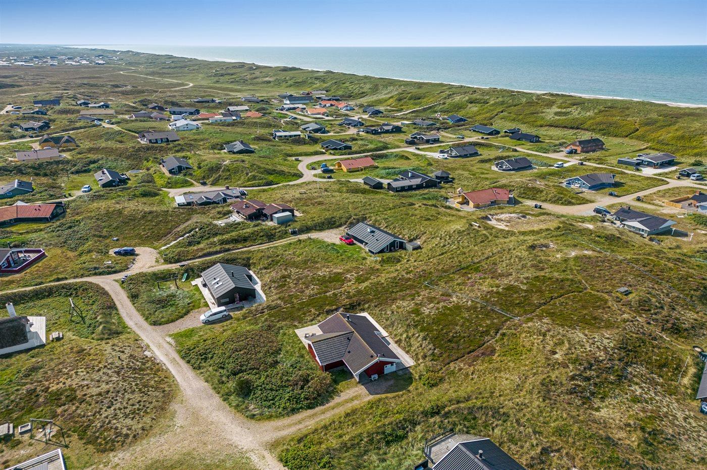 Ferieboligen er beliggende på en 1200 m² stor klitgrund. Der er 200 m til havet. Nærmeste forretning er beliggende i en afstand af 1430 m. Til ferieboligen hører 78 m² terrasseareal. Desuden er der 8 m² overdækket terrasse. Der er redskabsrum. Parkering ved ferieboligen.