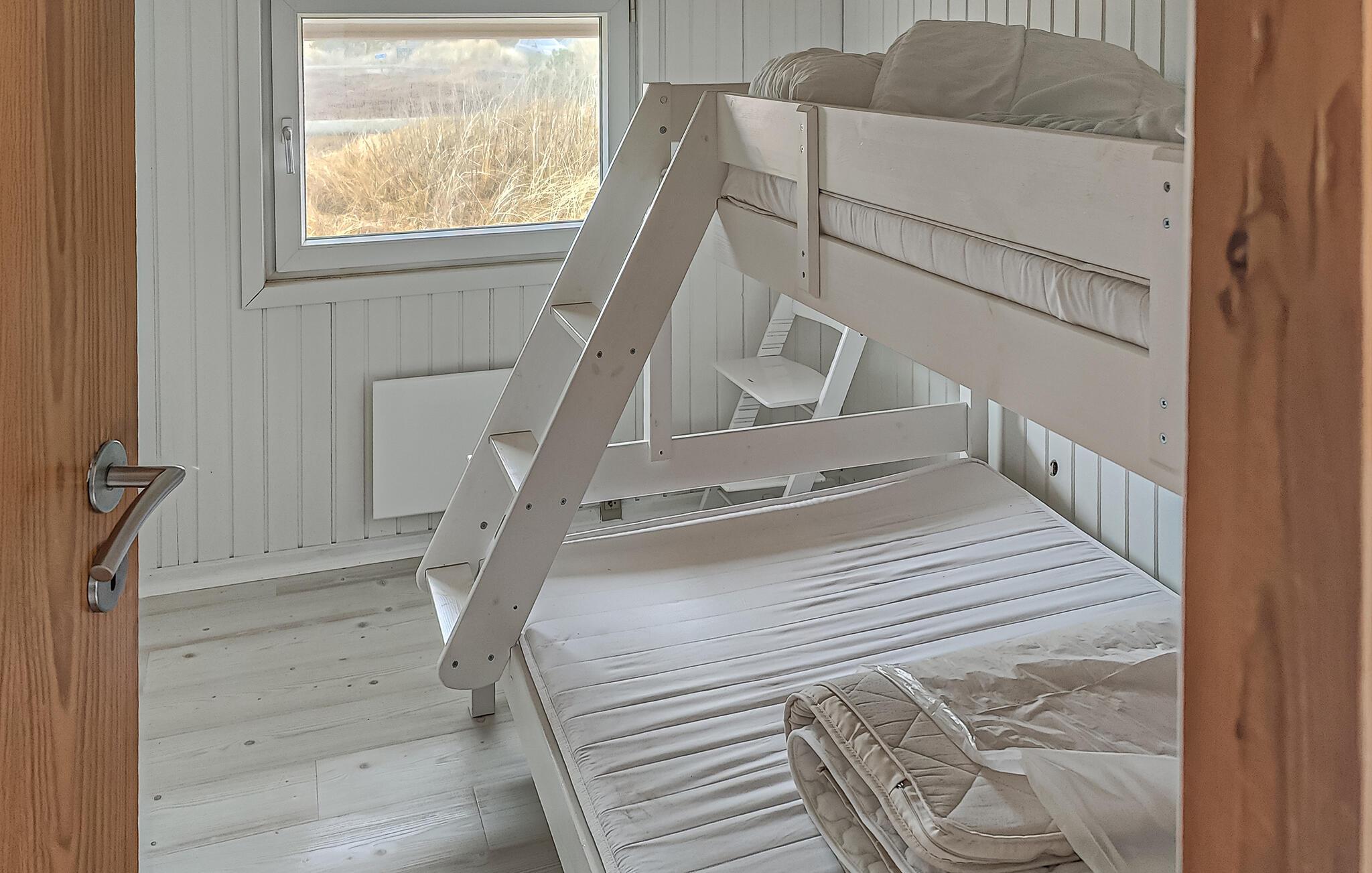 På en dejlig klitgrund en lille gåtur fra stranden ligger dette hyggelige sommerhus. De store vinduer bader rummet i et dejligt lys og giver jer en herlig ramme om feriehyggen. Find sammen til dagens måltider med familien, planlæg jeres aktiviteter og forkæl jer selv med en rolig stund i saunaen efter dagens lange gåture på stranden. Når I er samlet i stuen igen, kan I tænde op i brændeovnen og sætte jer med brætspil.