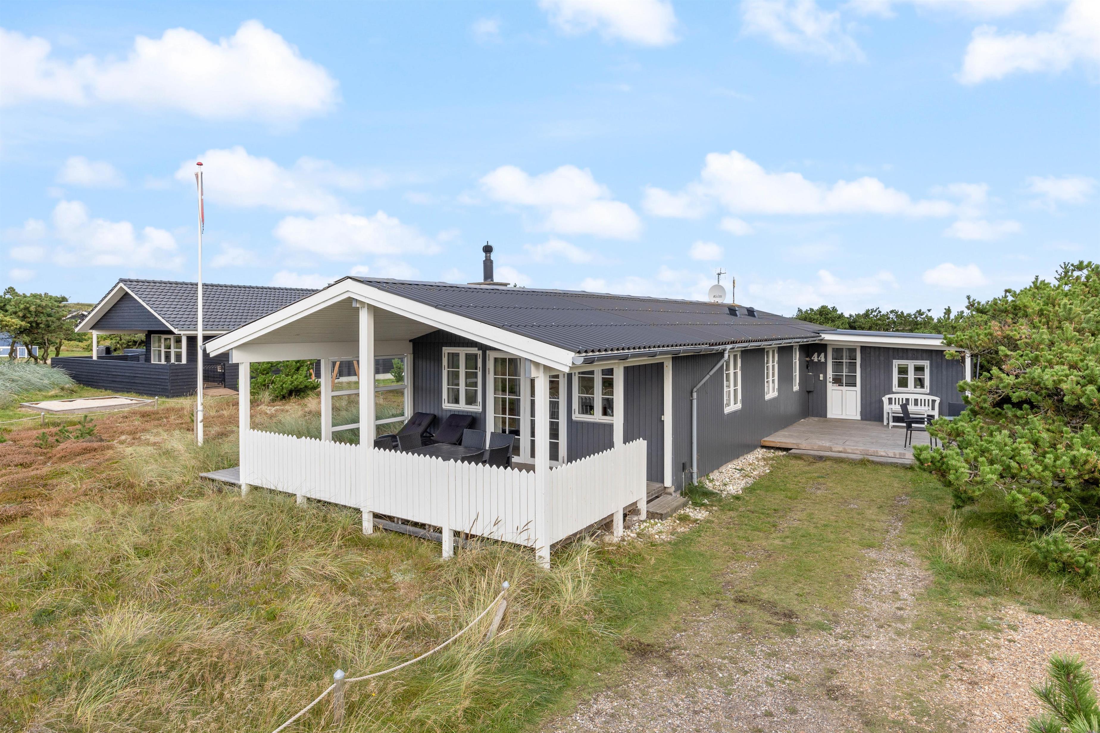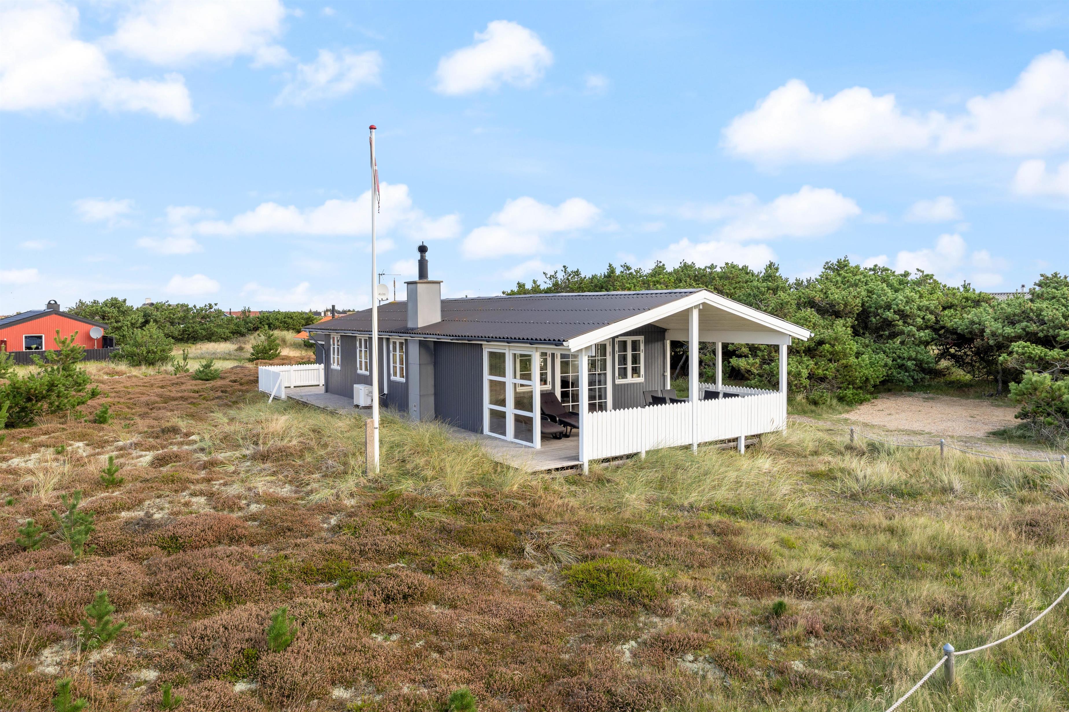 Sommerhuset er beliggende i Bjerregård mellem Vesterhavet og Ringkøbing Fjord. Fra feriehuset er der blot 400 meter til den hvide sandstrand, som indbyder til lange gåture med fødderne i vandkanten. Her kan I også bygge store sandslotte, flyve med drager eller samle rav og muslingeskaller.