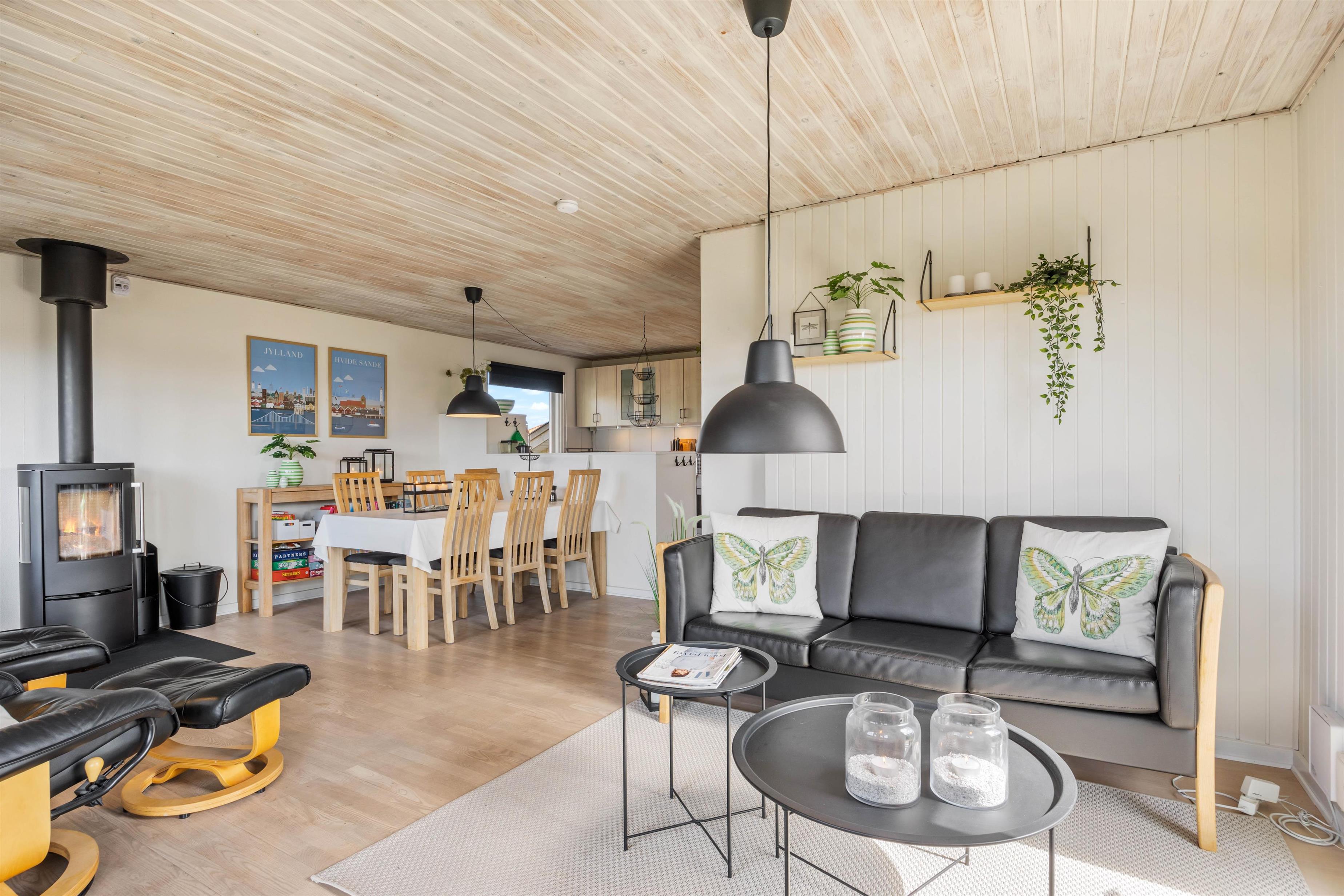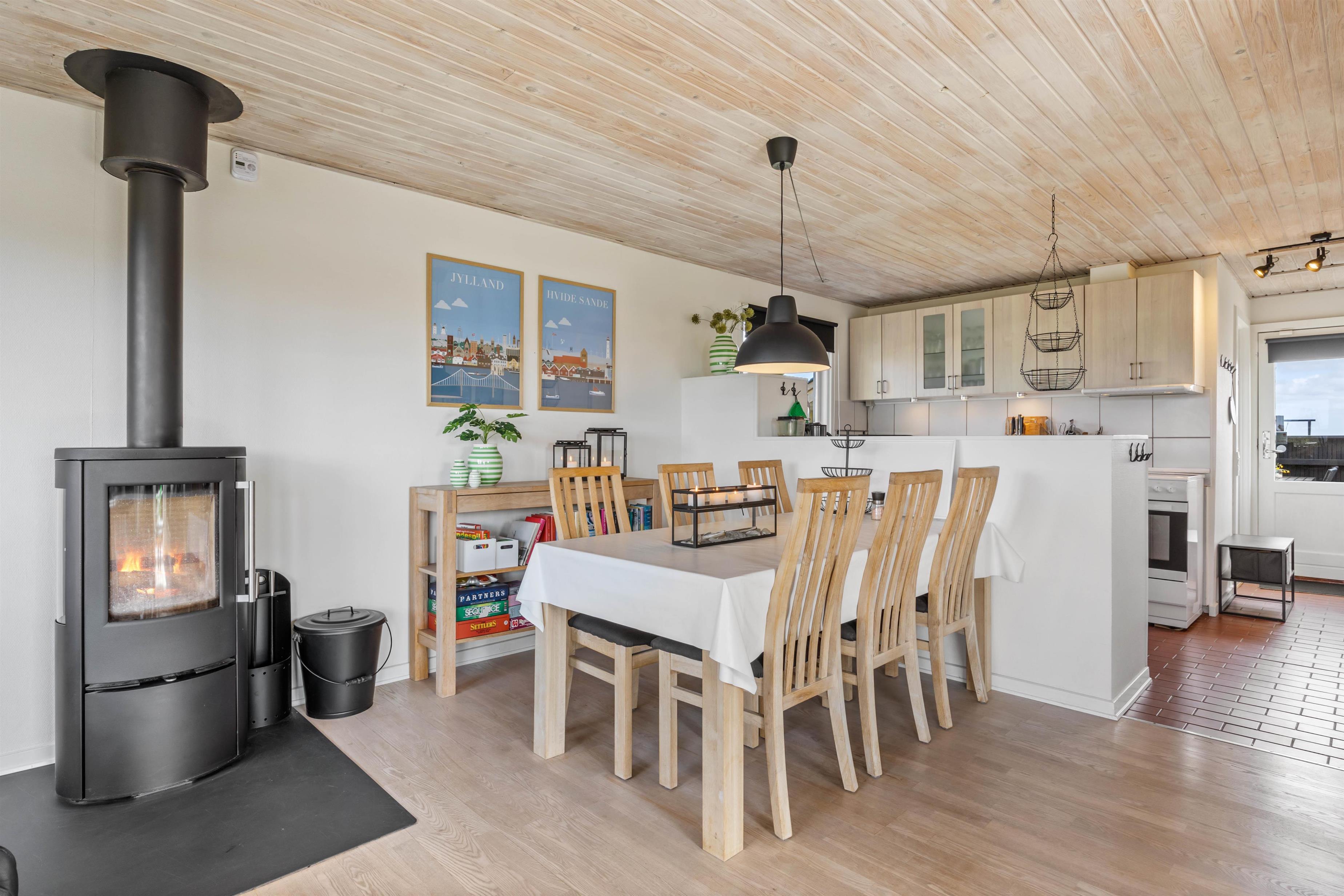 Sommerhusets hjerterum er alrummet, som består af køkken, spiseplads og stue. Her kan hele familien samles til hyggelige stunder sammen, mens brændeovnen knitrer i baggrunden. Der er Chromecast i sommerhuset, så I kan streame jeres yndlingsfilm og -serier. Der er en energibesparende varmepumpe, som I med fordel kan benytte jer af til at holde en behagelig temperatur i feriehuset.
