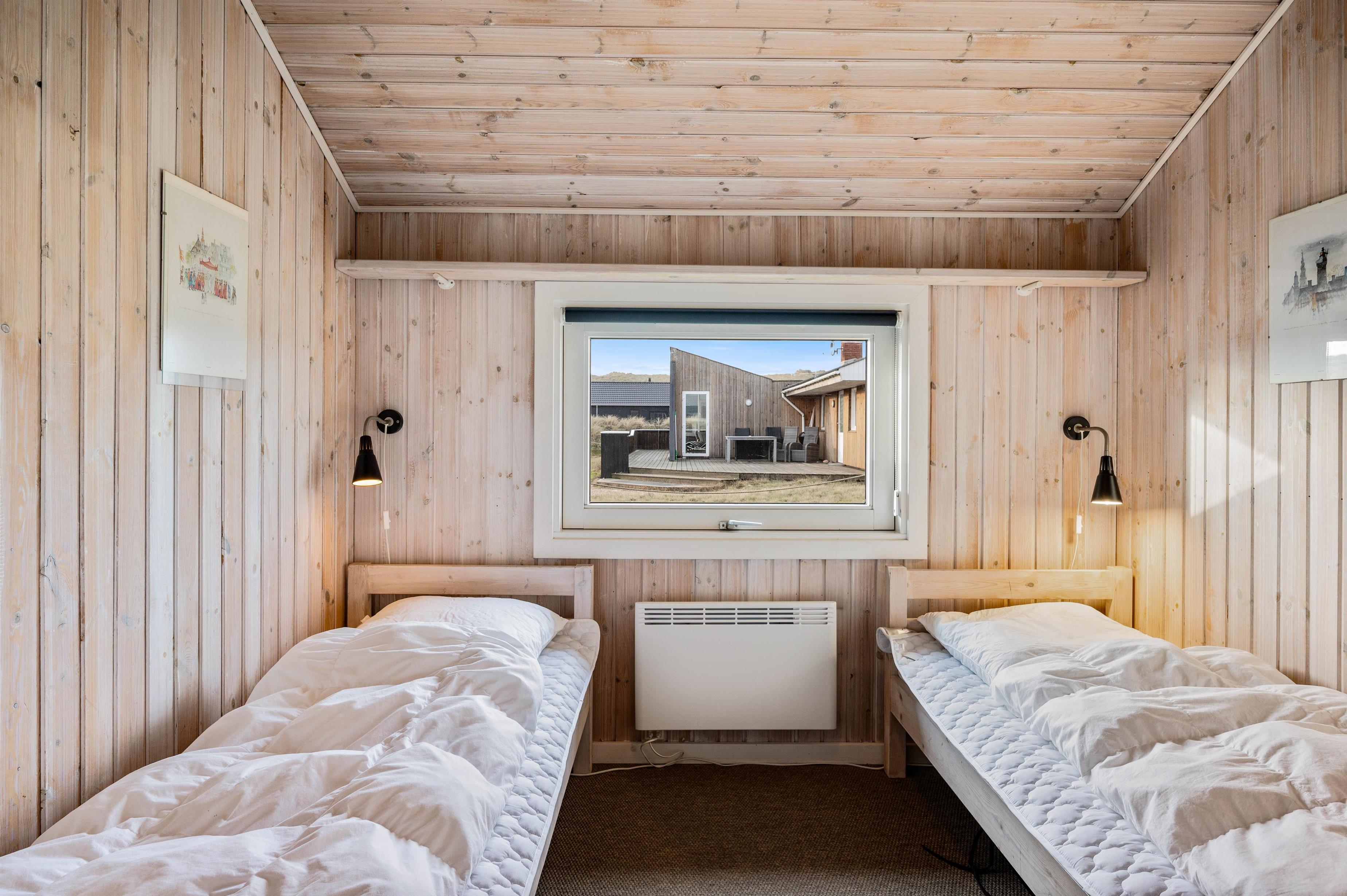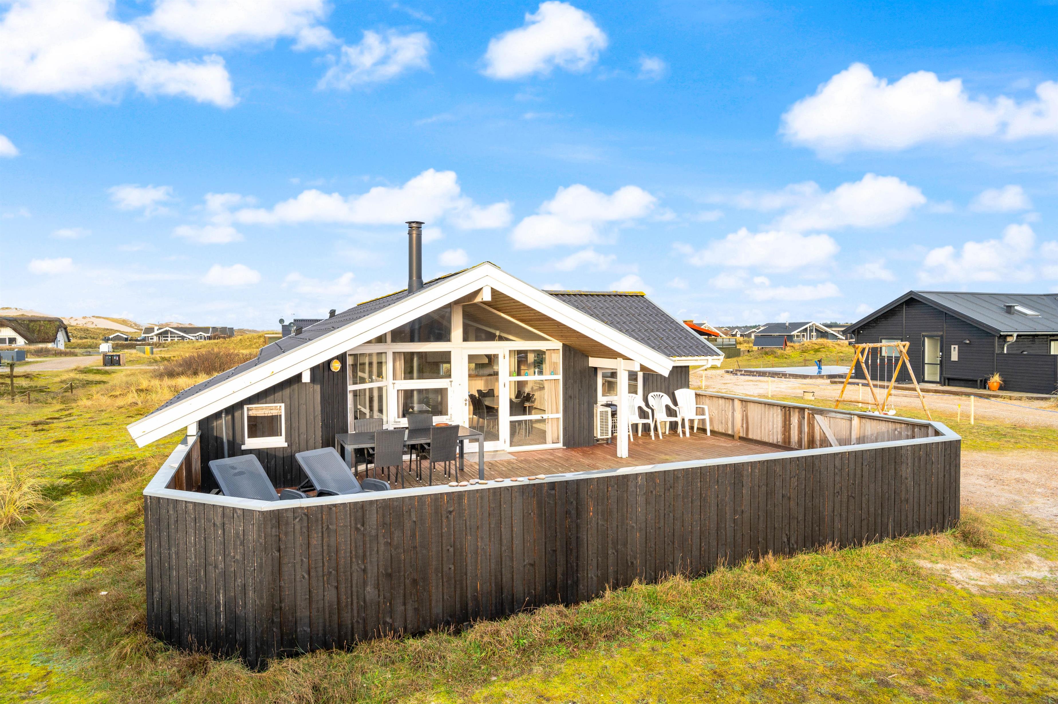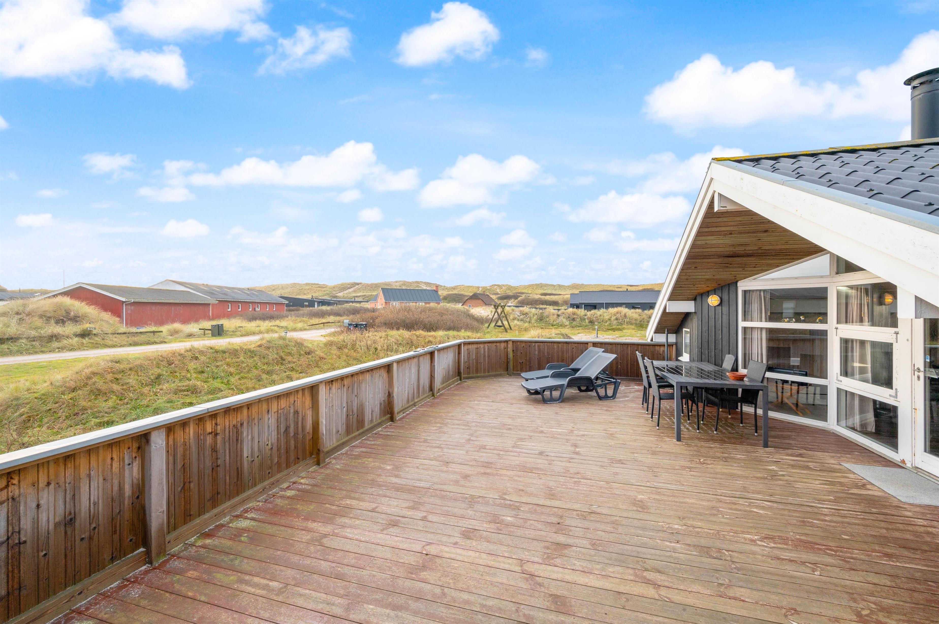 Dette 2 stjernede sommerhus med spabad og sauna har plads til 6 personer. Sommerhuset er beliggende kun 150 meter fra Vesterhavets brede sandstrande og indkøb, mens den lukkede terrasse er god, hvis I har små børn eller hunde med.