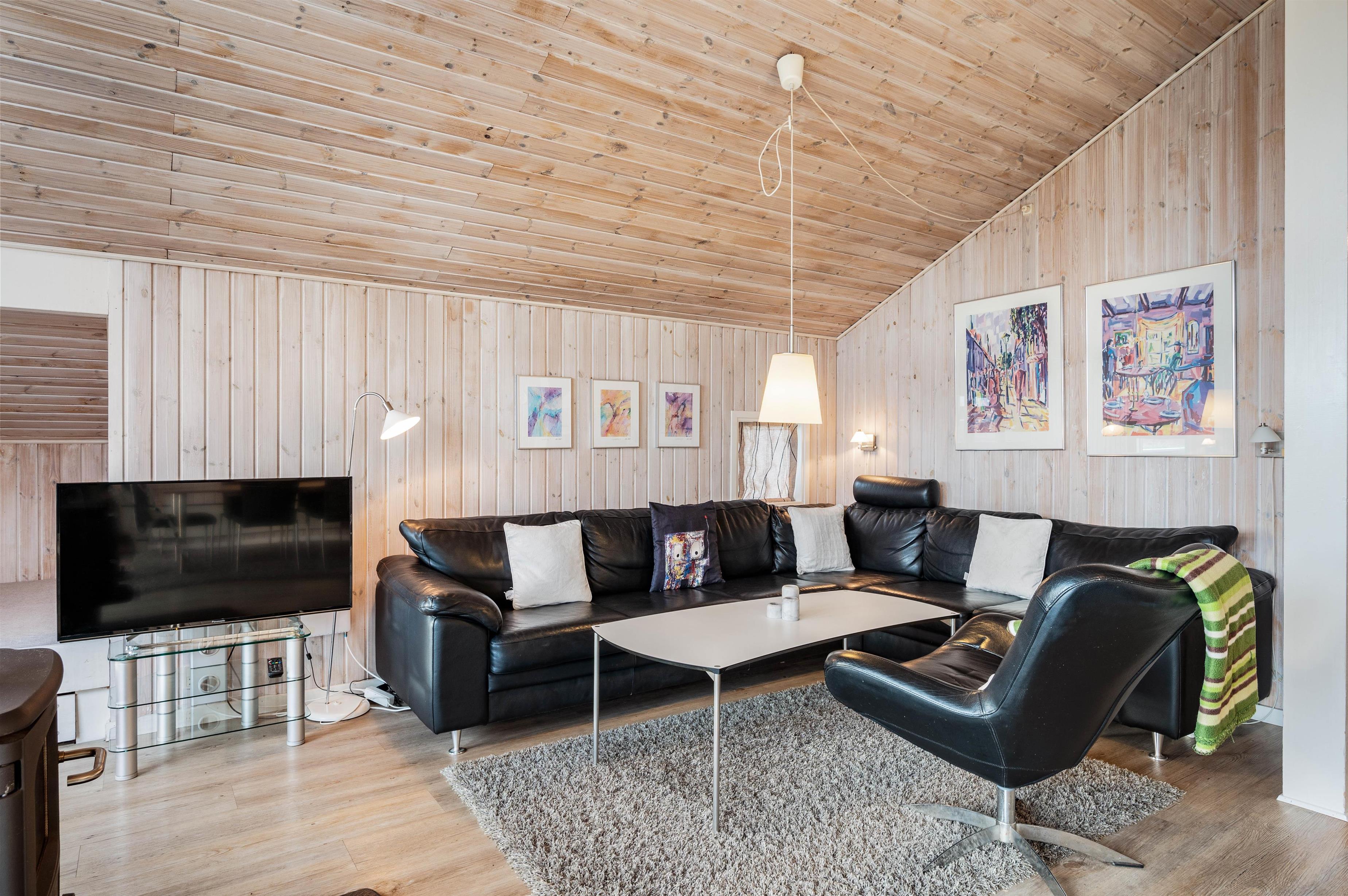 Alle 6 gæster kan samles i sofaen, hvor den står på afslapning og hyggelige aftner. Husk snacks, så I kan finde feriens mester i kortspillet, 500, eller Yatzy. I stuens hjørne findes alkoven, der er perfekt til ferielæsningen eller måske familiens mindste vil bygge en hule her? Stuen er med loft til kip og i åben forbindelse med spiseafdeling og køkken. På denne måde kan I opholde jer sammen, selvom der laves mad i køkkenet og planlægges udflugter omkring bordet. Rummet kan I holde behageligt ved hjælp af den energibesparende varmepumpe og brændeovnen.
