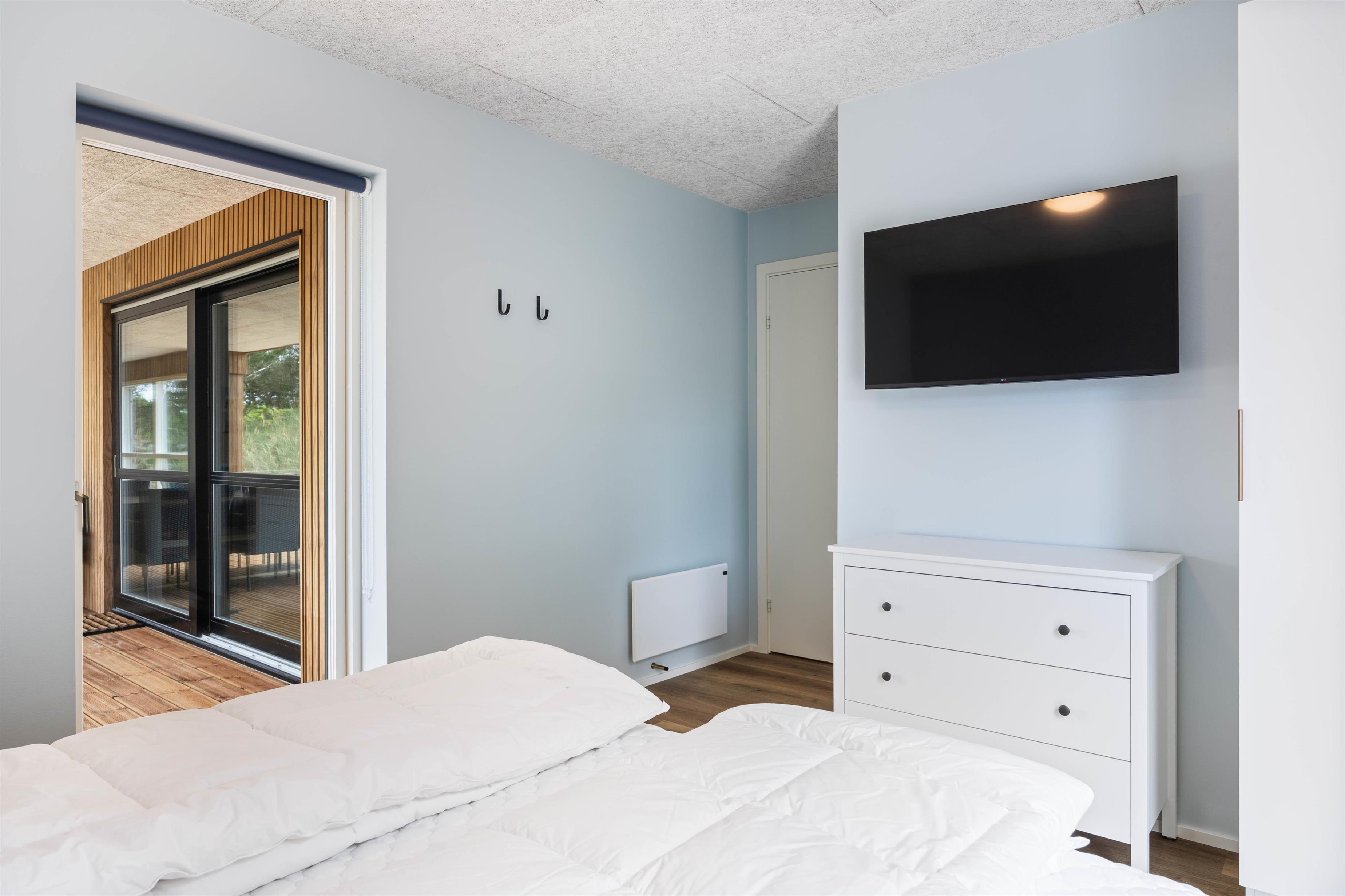 Sommerhusets hjerte- og fællesrum er det store opholdsrum, hvor køkken, stue og spiseplads smelter sammen. Her kan I sammen skabe mange ferieminder med fælles madlavning i det lækre køkken og hyggelige brætspilsaftener. Rummeligheden og de rolige nuancer skaber en dejlig atmosfære. For at holde rumtemperaturen behagelig, kan I med fordel gøre brug af varmepumpen. Vaskemaskine og tørretumbler finder I også i feriehuset, så I har mulighed for at opfriske håndklæderne under opholdet.