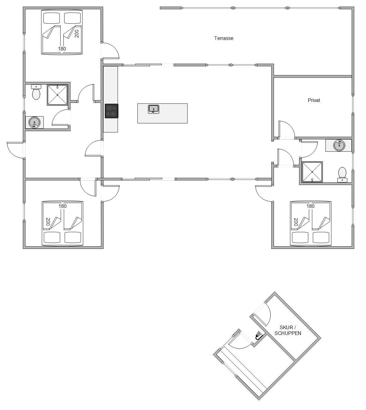 Bjerregårdsvej 178 kan huse op mod 6 gæster – og hunden er naturligvis også velkommen! Dette luksus feriehus er på hele 170 m2, udstyret med 3 fine soveværelser og 2 badeværelser. Begge med brus og gulvvarme, så I undgår kolde fødder.