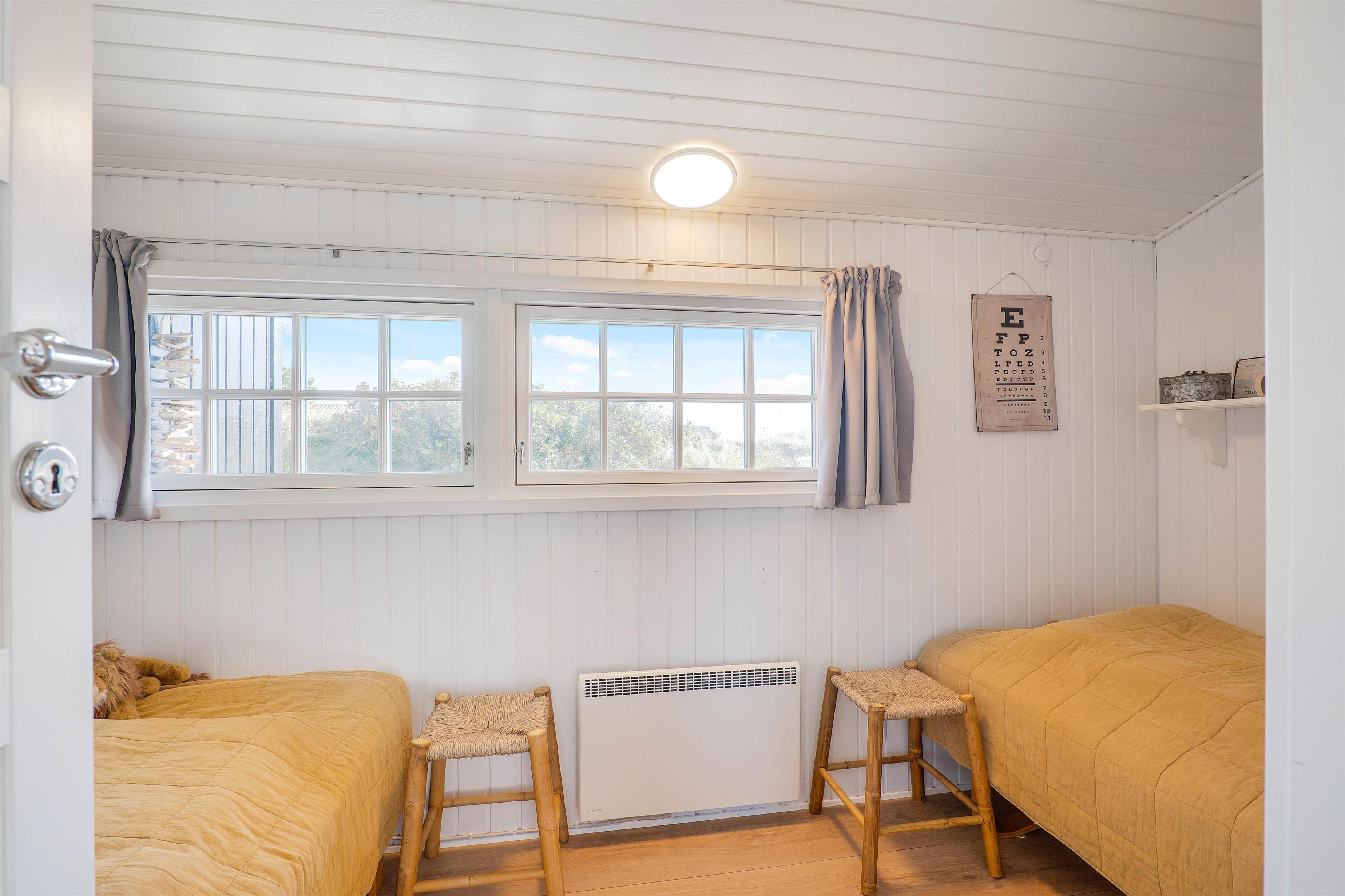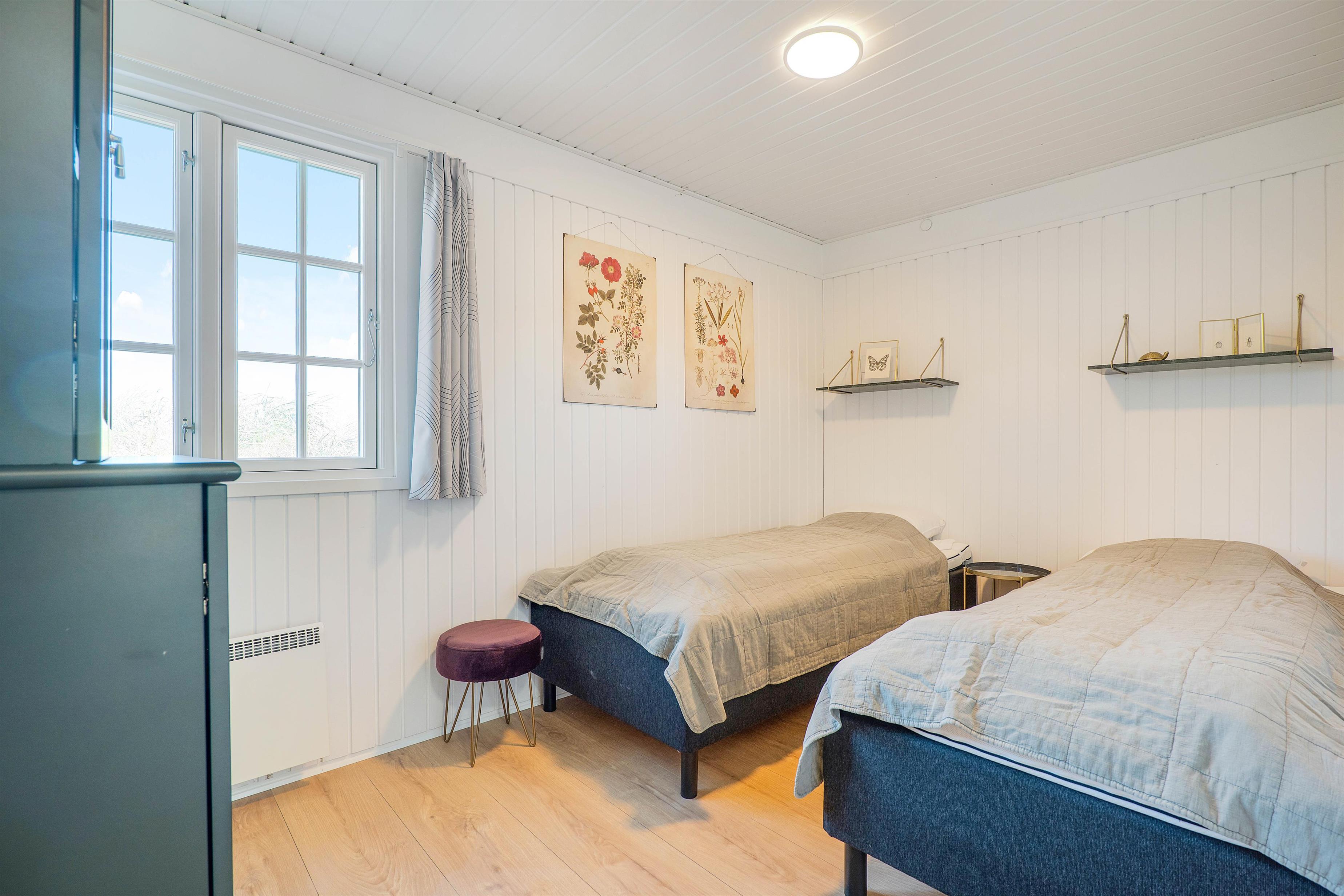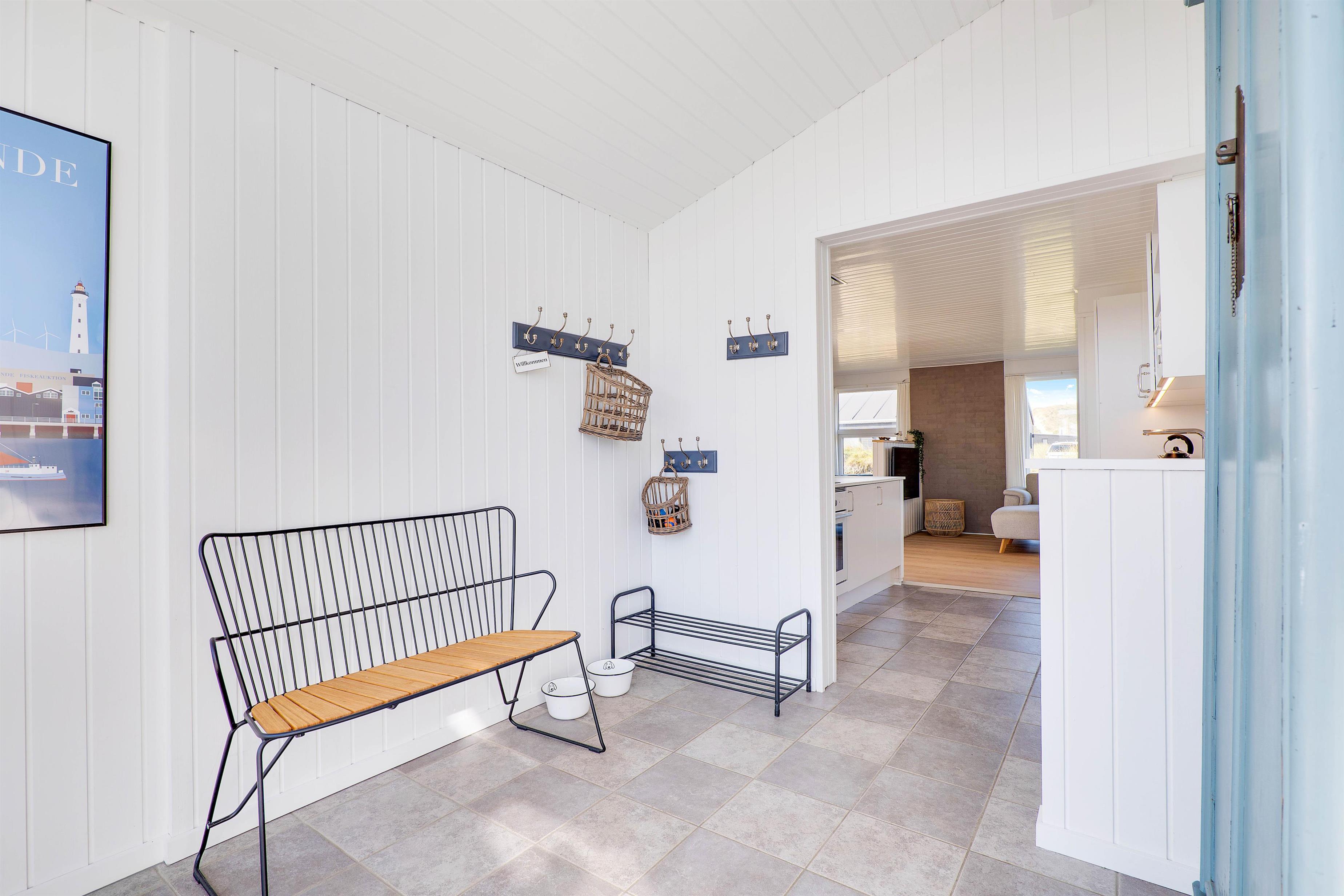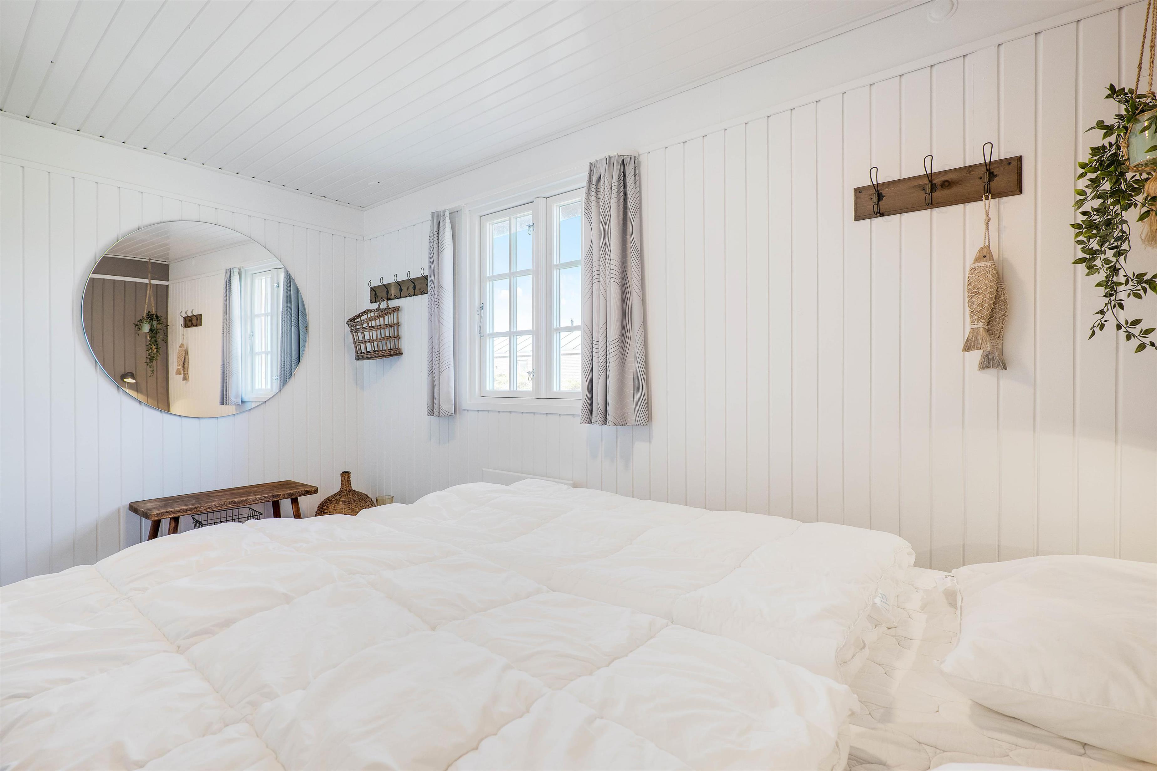 Her vil I hurtigt falde til i de indbydende omgivelser, hvor lyse farver og hyggeligt interiør fungerer som rød tråd i alle ferieboligens rum.