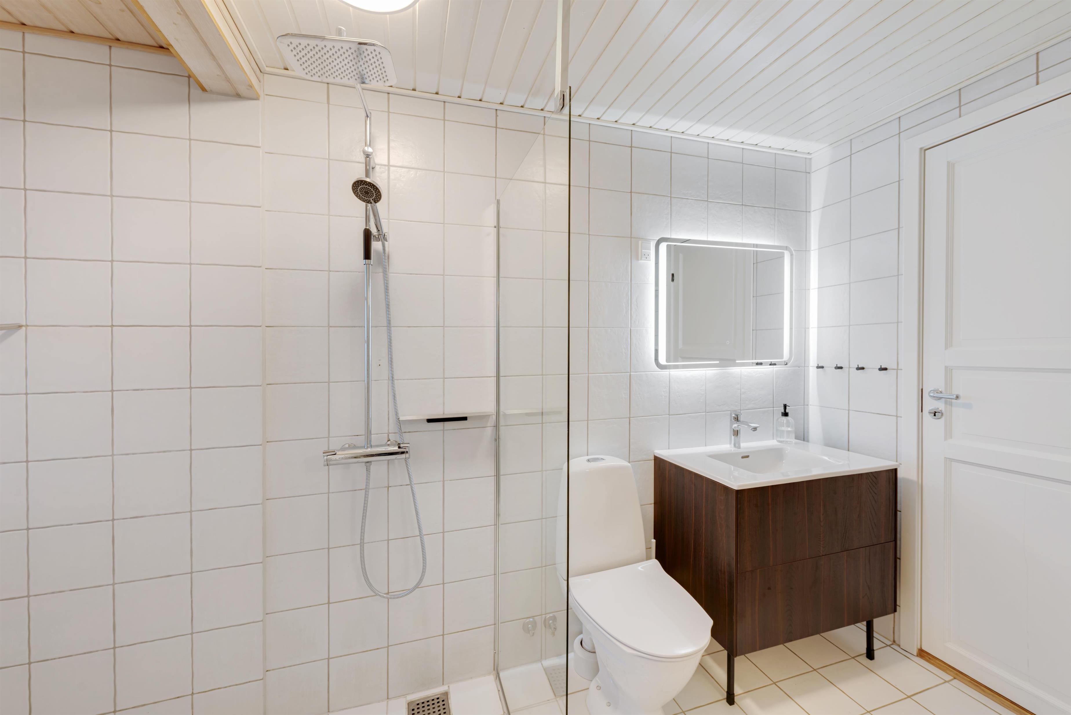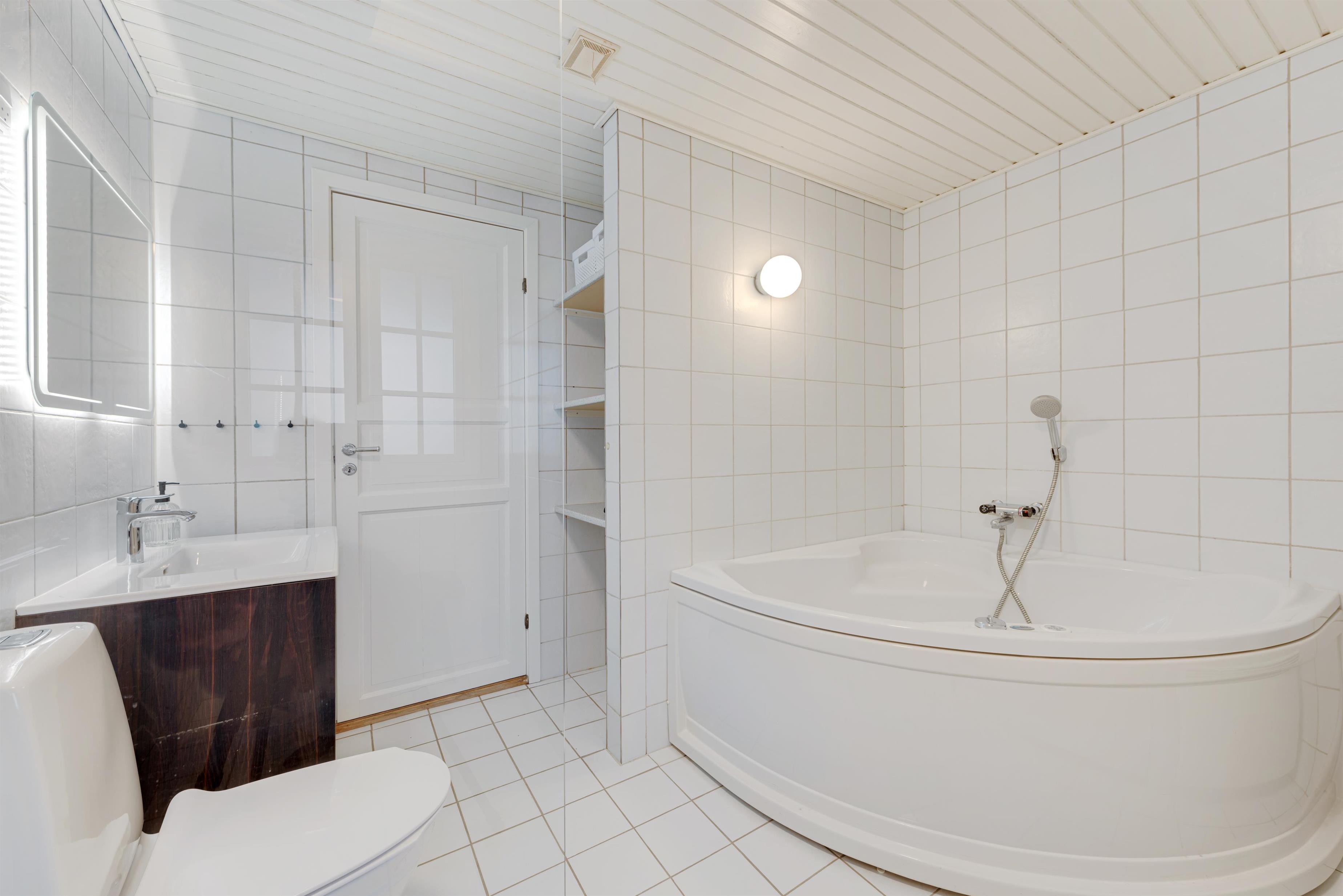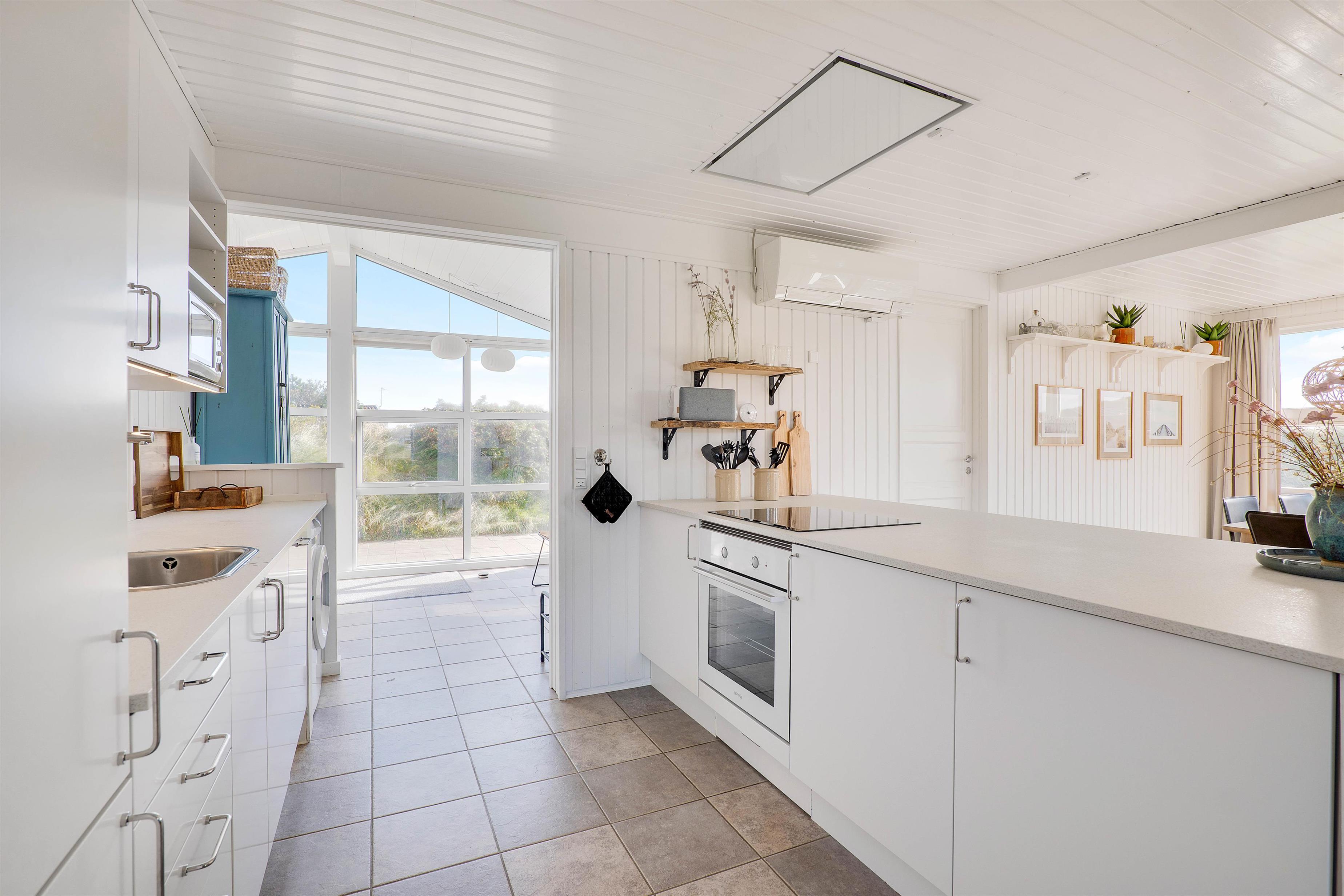 Her får I alle praktiske nødvendigheder i form af opvaskemaskine, vaskemaskine og gulvvarme på både badeværelset, i entréen og i køkkenet. Der står også en gratis internetforbindelse til rådighed, så I kan være online på ferien.