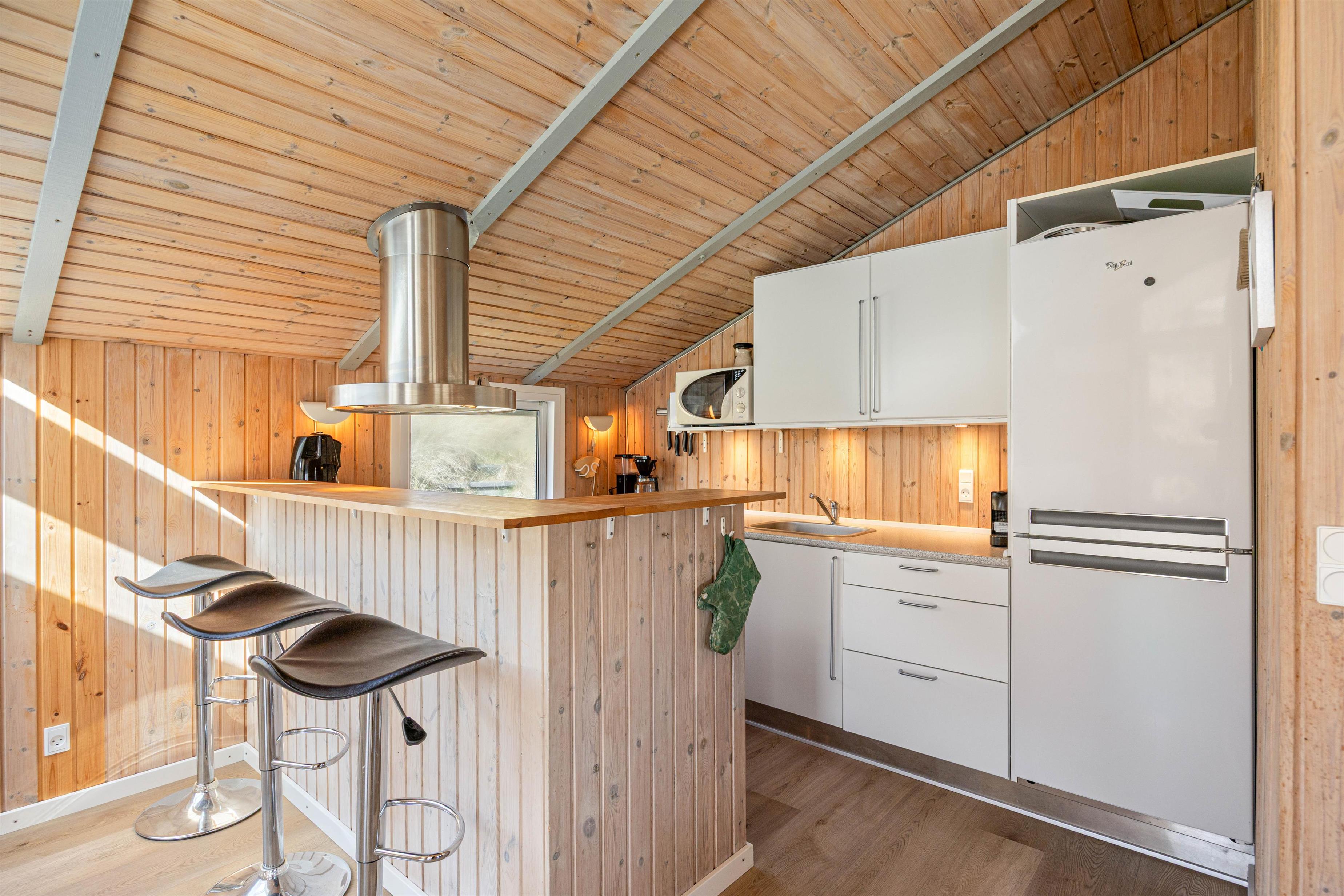 Det veludstyrede køkken har selvfølgelig alt, hvad I har brug for - bl.a. 94 l. separat fryser, mikroovn og opvaskemaskine, hvilket gør husarbejdet lidt nemmere.