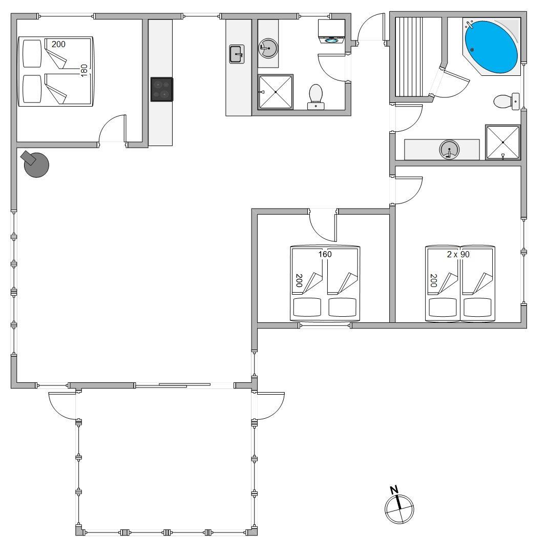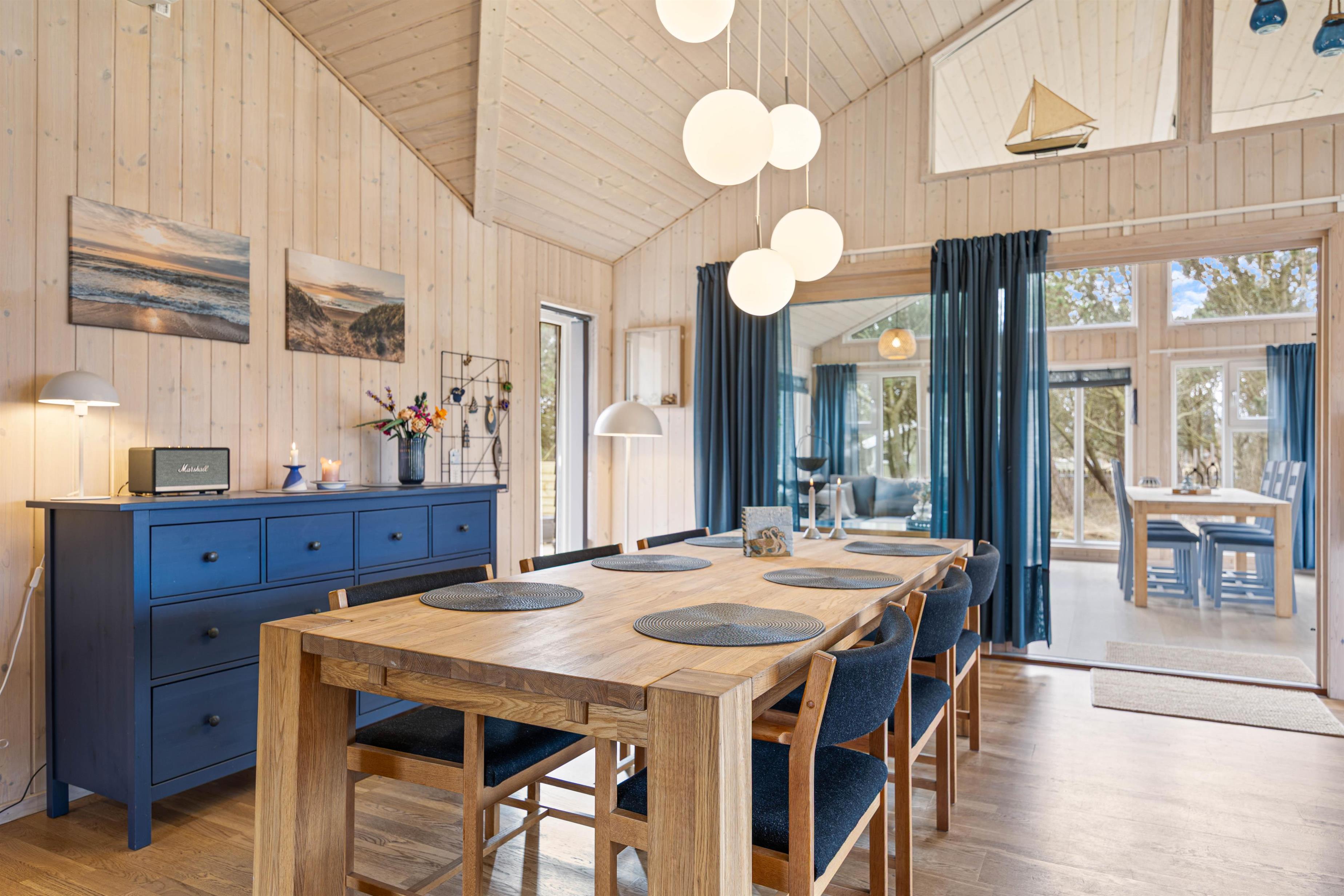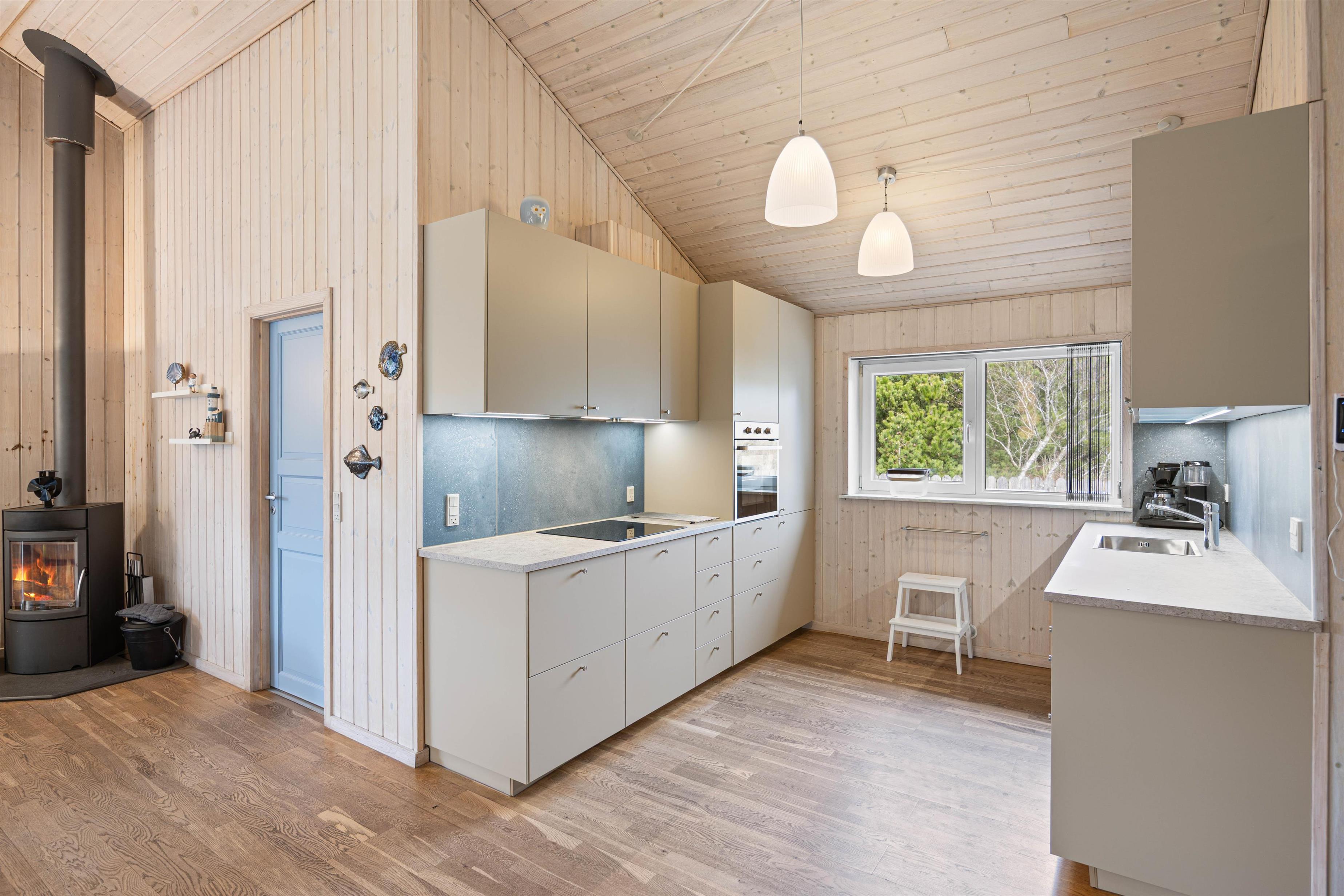 De 112 m2 er praktisk fordelt: Det åbne køkken-alrum med stue, moderne køkken samt adgang til udestuen, bliver utvivlsomt samlingspunktet. Her er der plads til fælles madlavning, filmaftener i sofaen, sjove spil og planlægning af feriens udflugter i den unikke natur - lokalt som regionalt. Desuden er hemsen et perfekt sted at trække sig tilbage for at slappe af. Den isolerede udestue tillader tilbagetrækning og afslapning med lys og udsigt til natur og himmel.