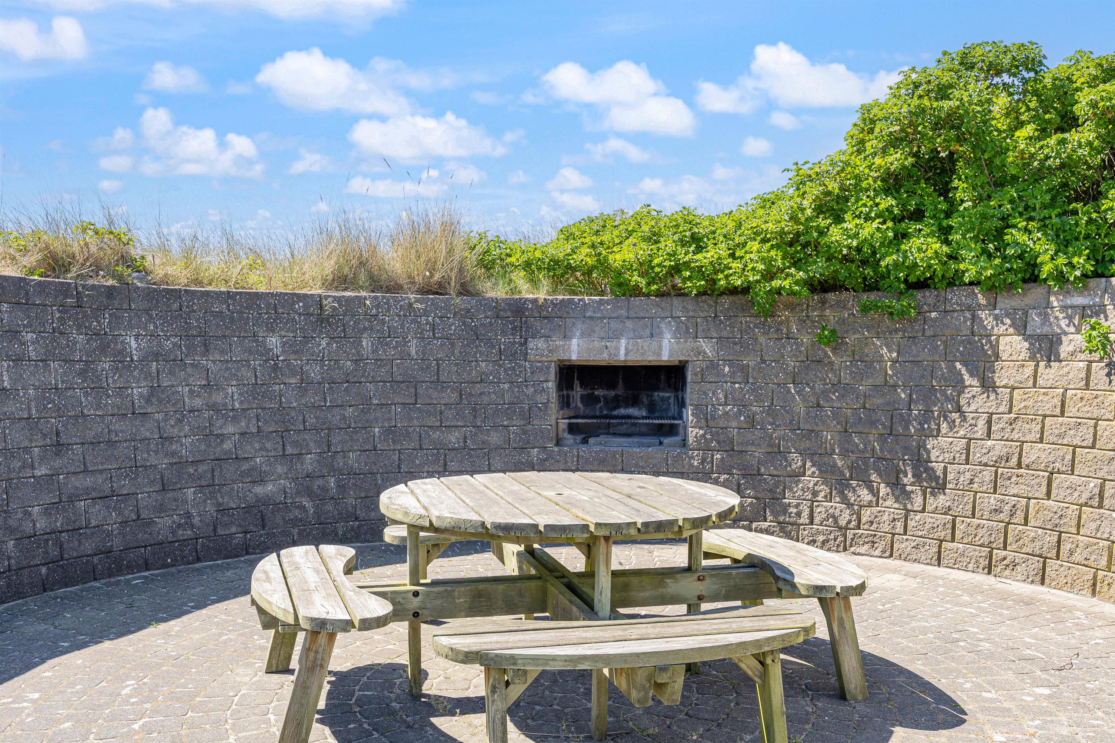 Sommerhuset er indrettet med tanke på både voksne og børn. På den store naturgrund finder du en stor, afskærmet og overdækket terrasse med indmuret grill. Her kan du virkelig nyde solen og den friske havluft, mens der både er sandkasse og et gyngestativ til børnene.
