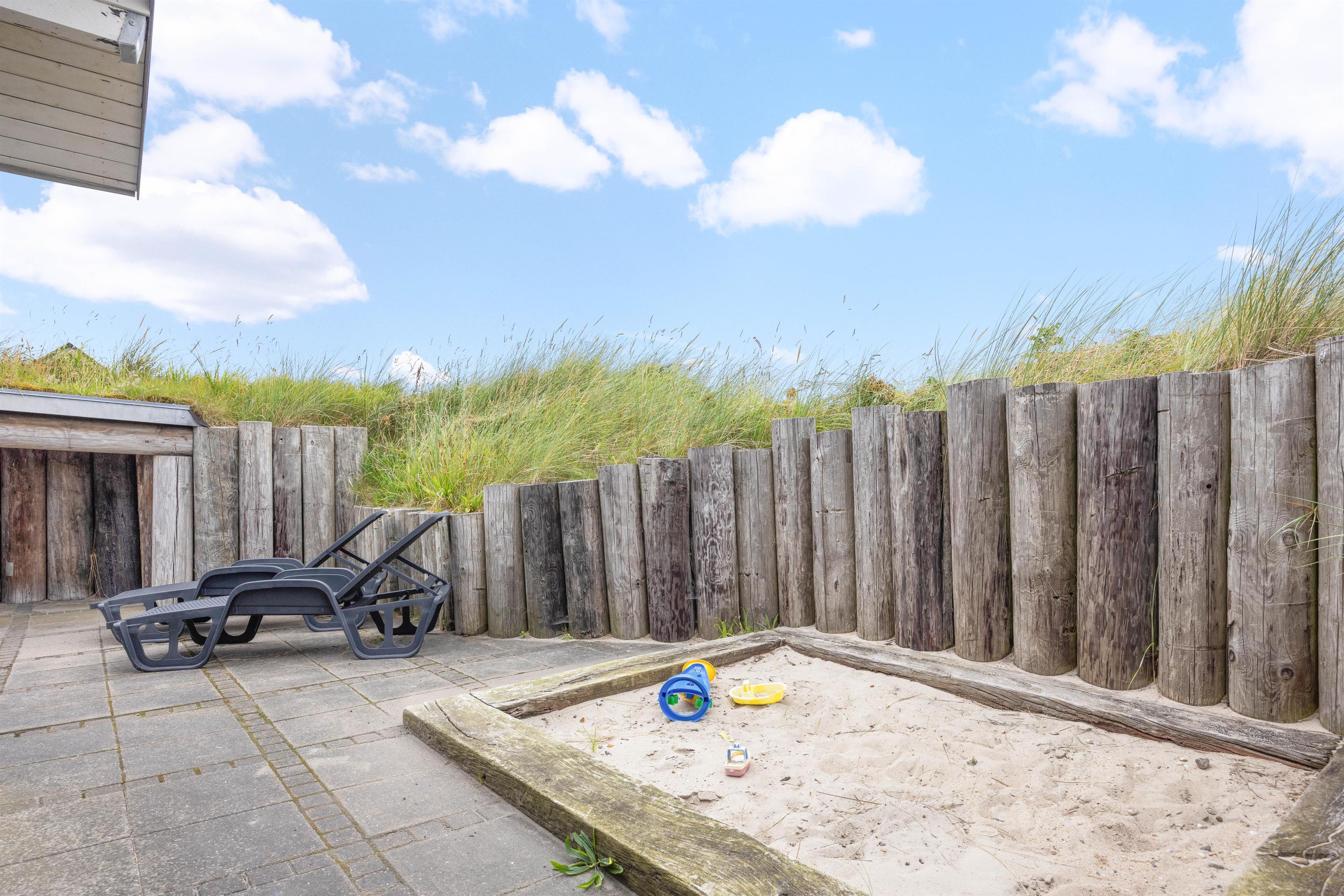 Sommerhuset er omringet af terrasssen, der smukt er afskærmet af naturen, således I uforstyrret kan benytte terrassen. Fra terrassen kan naturen og den friske luft nydes til solnedgangen. I dagtimerne kan solen og naturen nydes i en af liggestolene, mens børnene leger i sandkassen. Grillen kan om aftenen gøres klar til en lækker grillaften med familien.