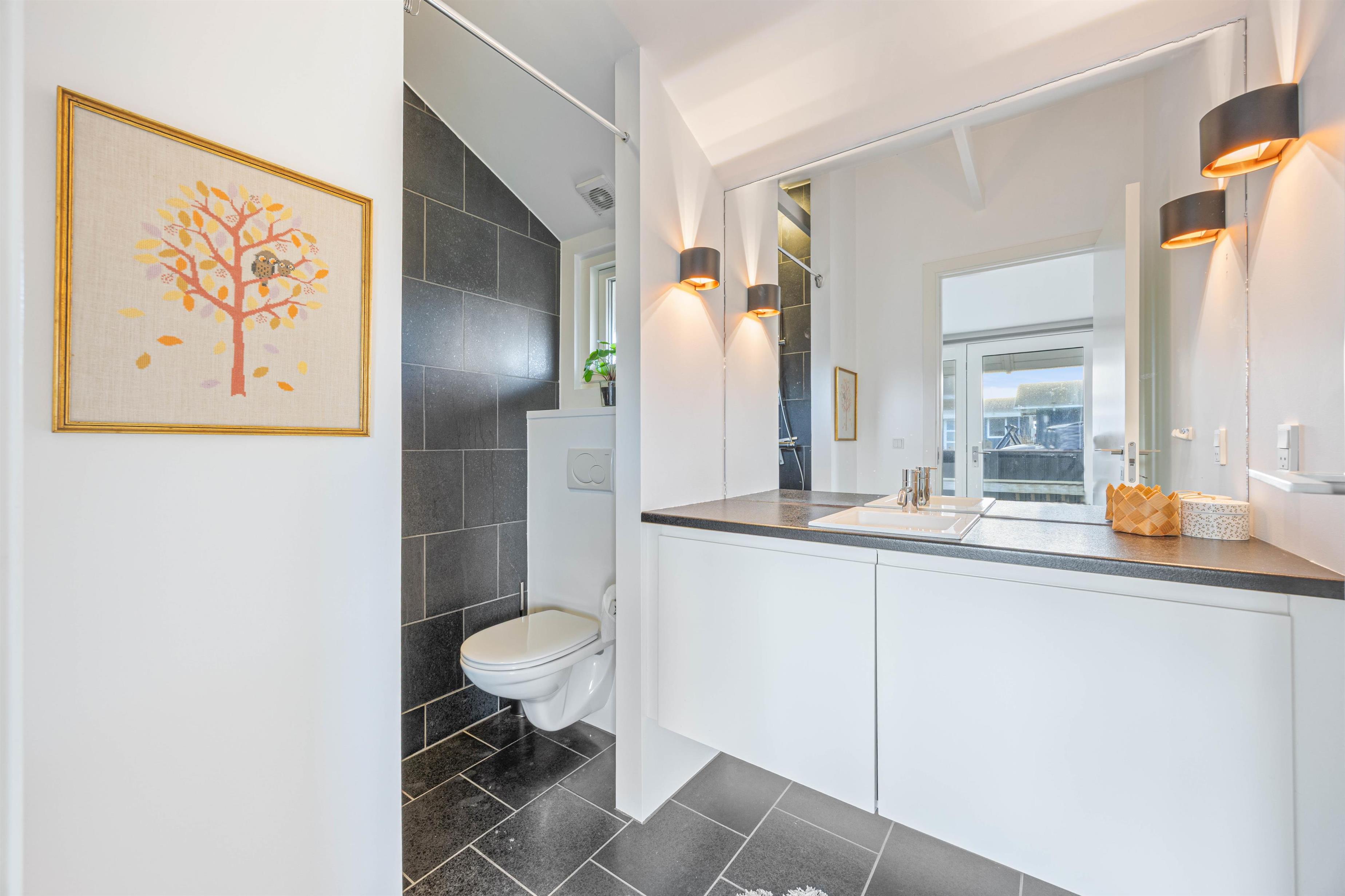 Sommerhuset har 5 soveværelser, som alle er indrettet med komfortable dobbeltsenge. I feriehusets anneks finder I 2 af værelserne, mens de resterende ligger i hovedhuset. I hver afdeling finder i et badeværelse, som begge er udstyret med gulvvarme. Badeværelset i hovedhuset har indgang til saunaen, som indbyder til afslapning og velvære efter en god gåtur ved stranden på en blæsende efterårsdag.