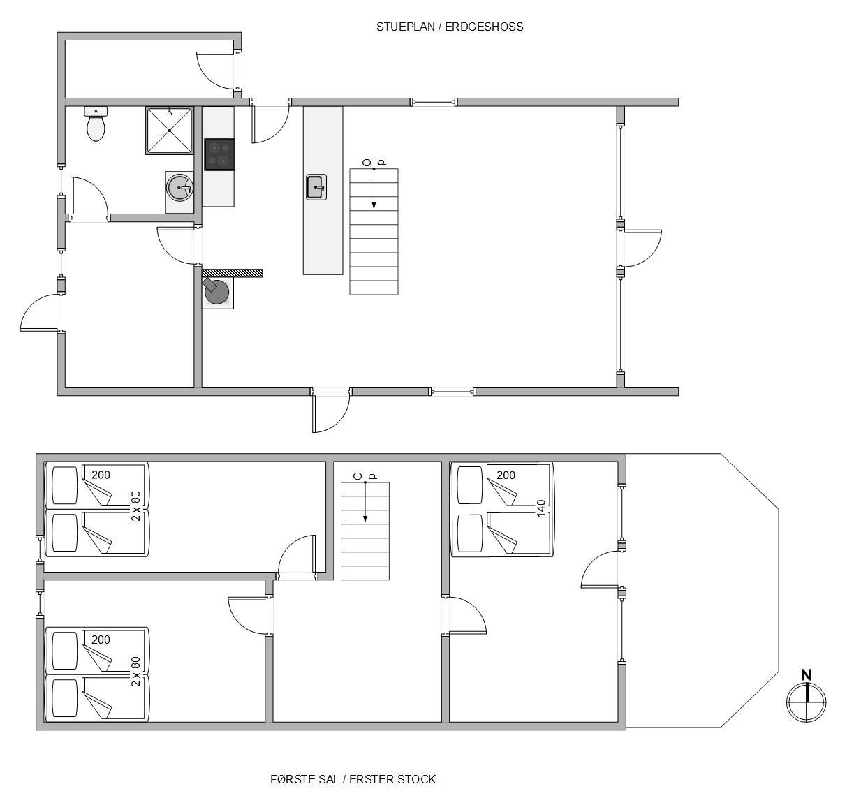 På 1. sal findes soveafdelingen, hvor der er tre charmerende soveværelser. Fra det ene soveværelse er der adgang til en god altan, hvorfra man kan nyde morgenkaffen udsigten over det skønne område.