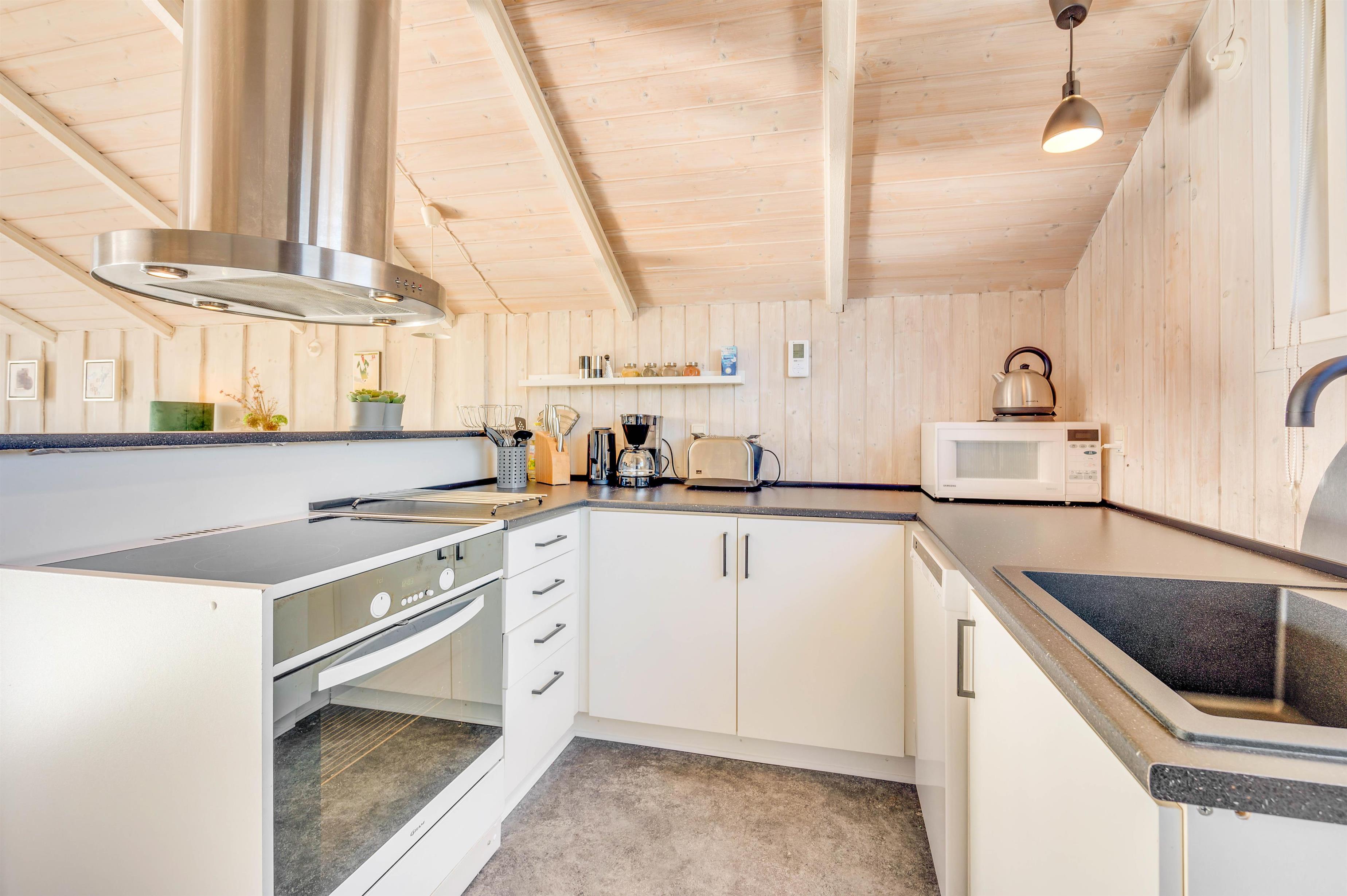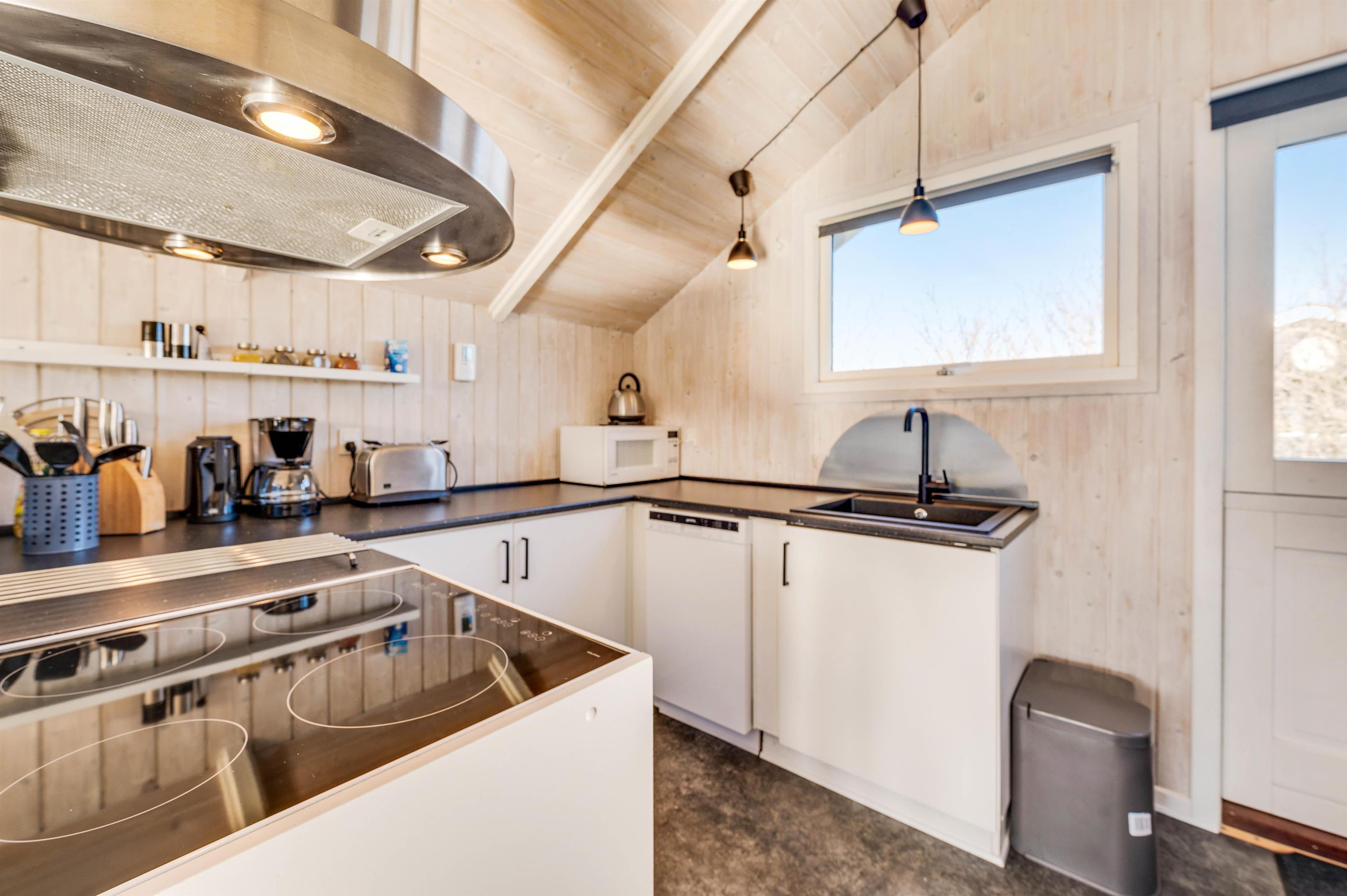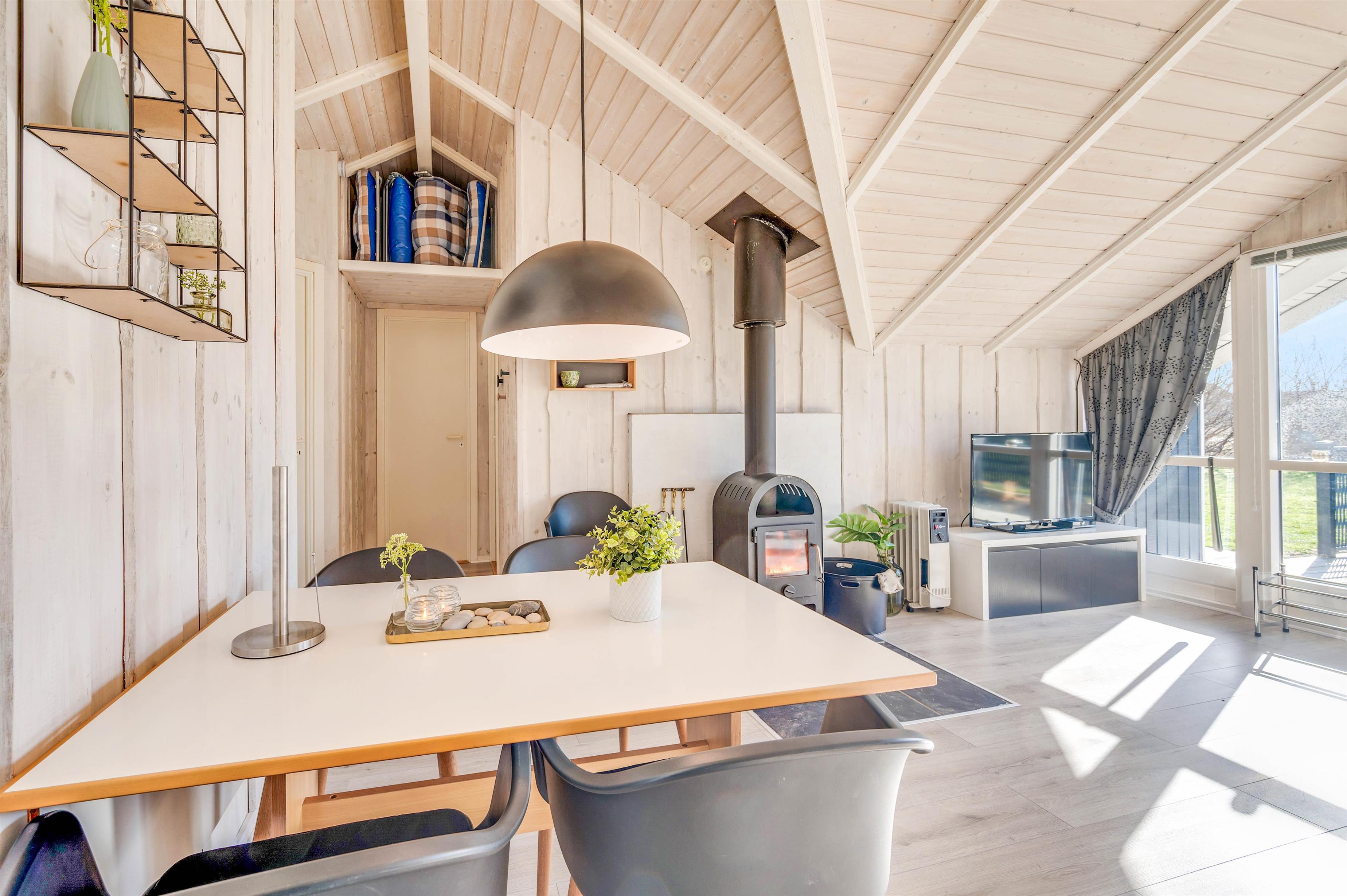 Til den skønne knitren fra brændeovnen kan I spille spil ved spisebordet eller se en god film sammen i den dejlige sofagruppe, mens kokken tryller i køkkenet med både mikroovn og opvaskemaskine. Den praktiske og energibesparende varmepumpe startes nemt, hvis der er yderligere behov for at regulere temperaturen.