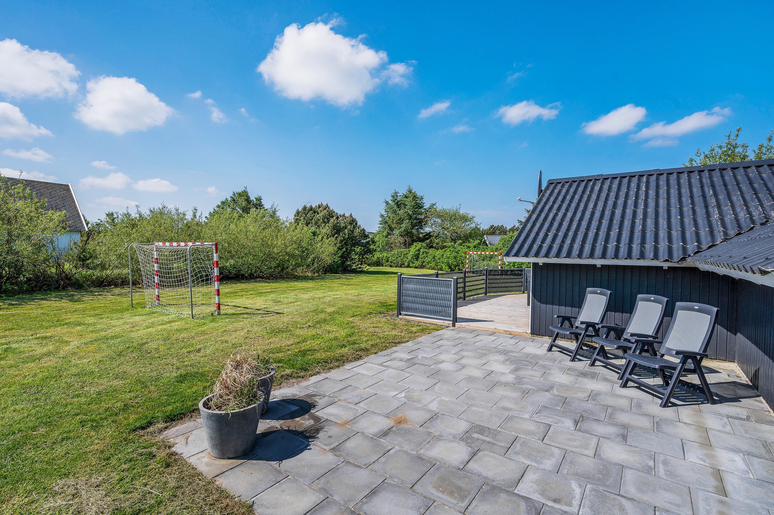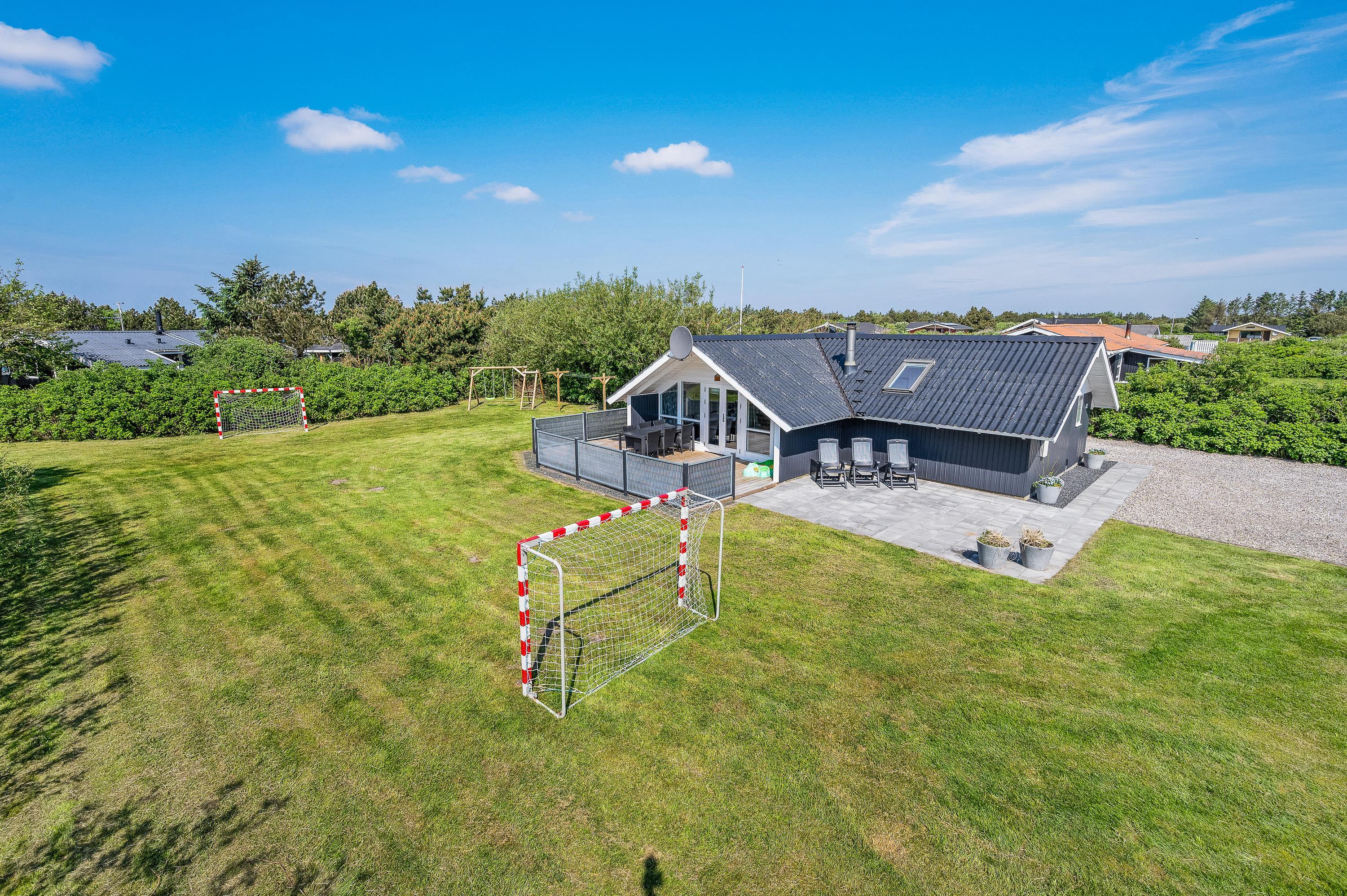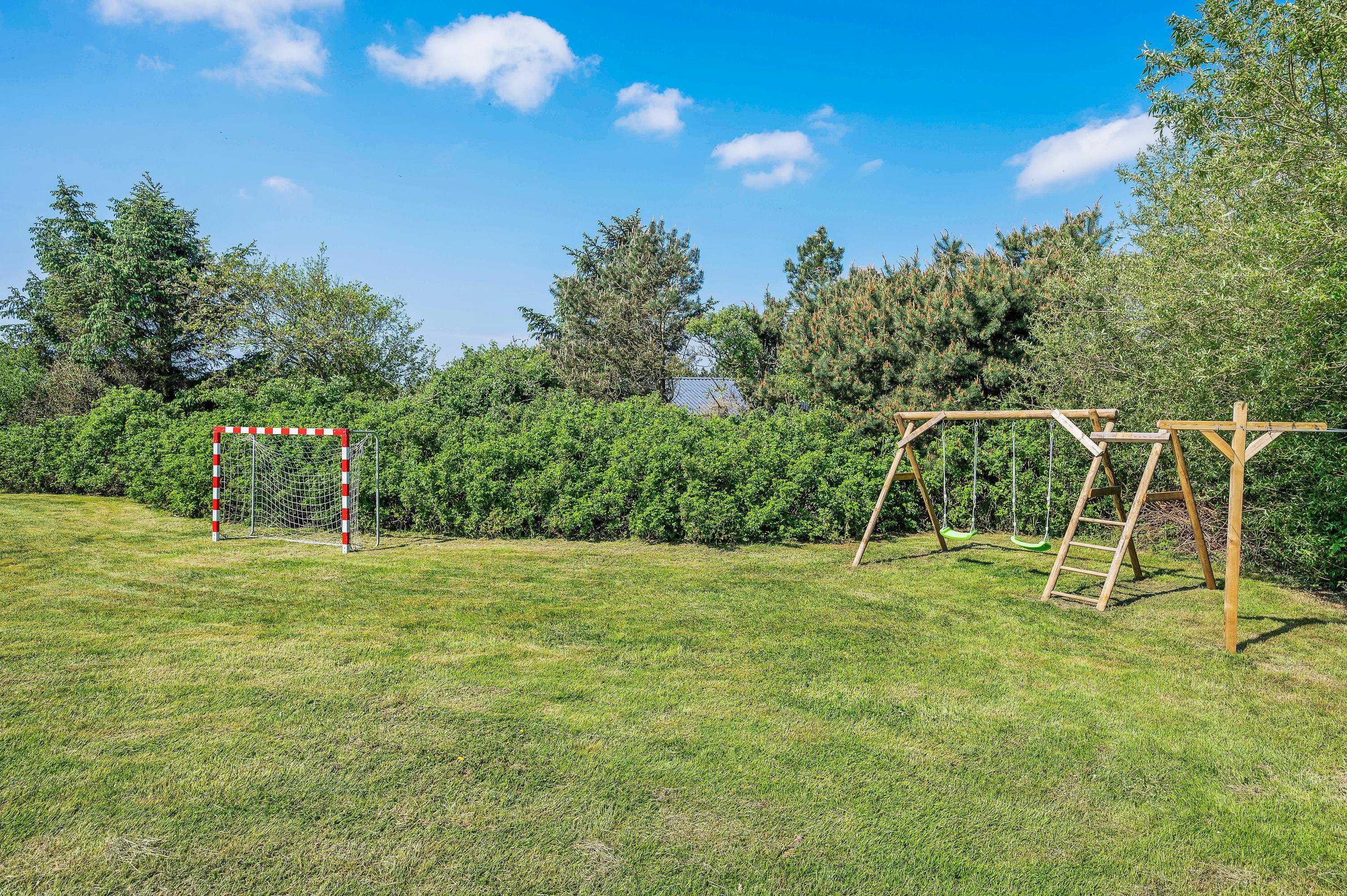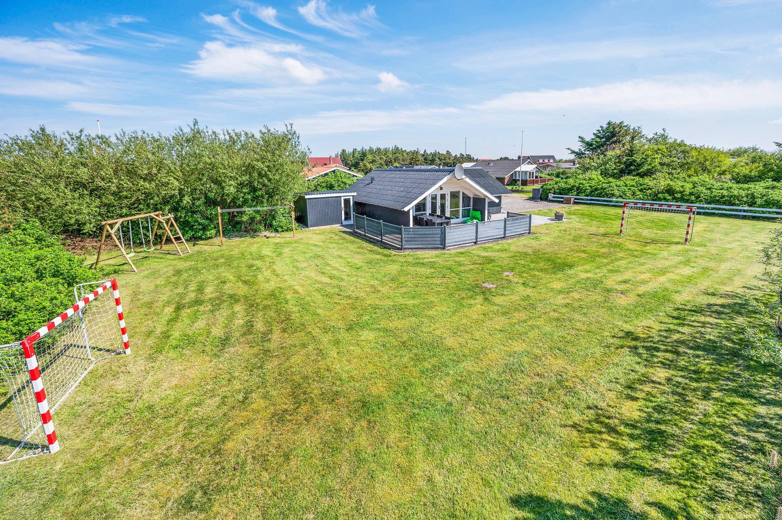På Kirksvej 15 i Bjerregård ligger dette hyggelige sommerhus, hvor der er gjort plads til børn såvel ude som inde. Det store plæneareal indbyder de unge til boldspil, de mindre børn til en tur i gyngerne, og til de mindste finder du sandkassen, der er placeret på terrassen, så du kan holde øje. I værelset med de 2 enkeltsenge er der fladskærm, så de unge kan hygge sig med spil helt for sig selv. Og kan I ikke undvære hunden, kan I roligt tage den med også.