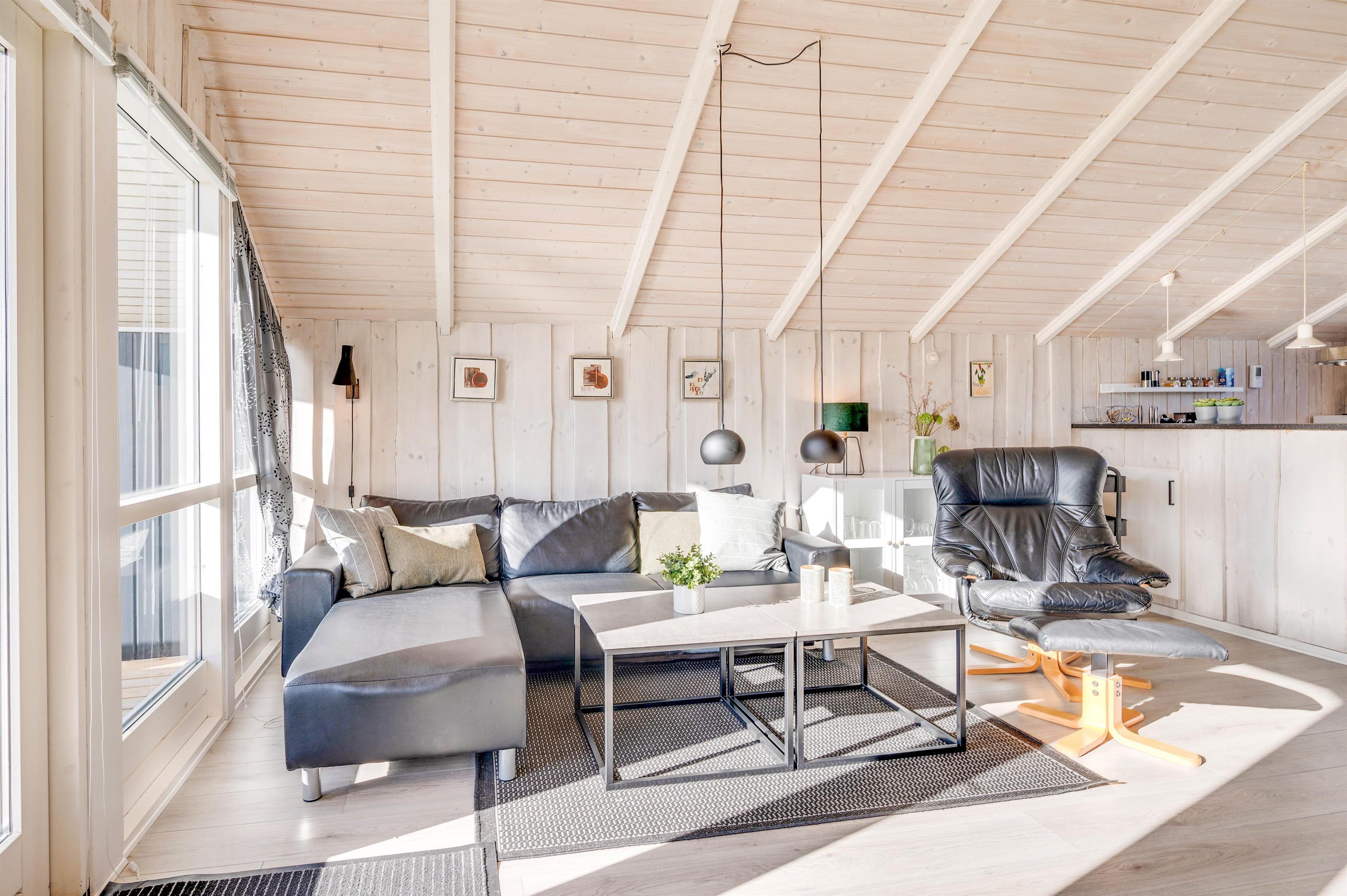 Feriehuset er hyggeligt indrettet, og den charmerende stil, der er kendetegnende for et Kalmarhus, kommer fuldt til sin ret med de lyse gulve, de lyse vægge og flotte lofter til kip. Køkken-alrummet er sommerhusets hjerte og indbyder til hygge og samvær.