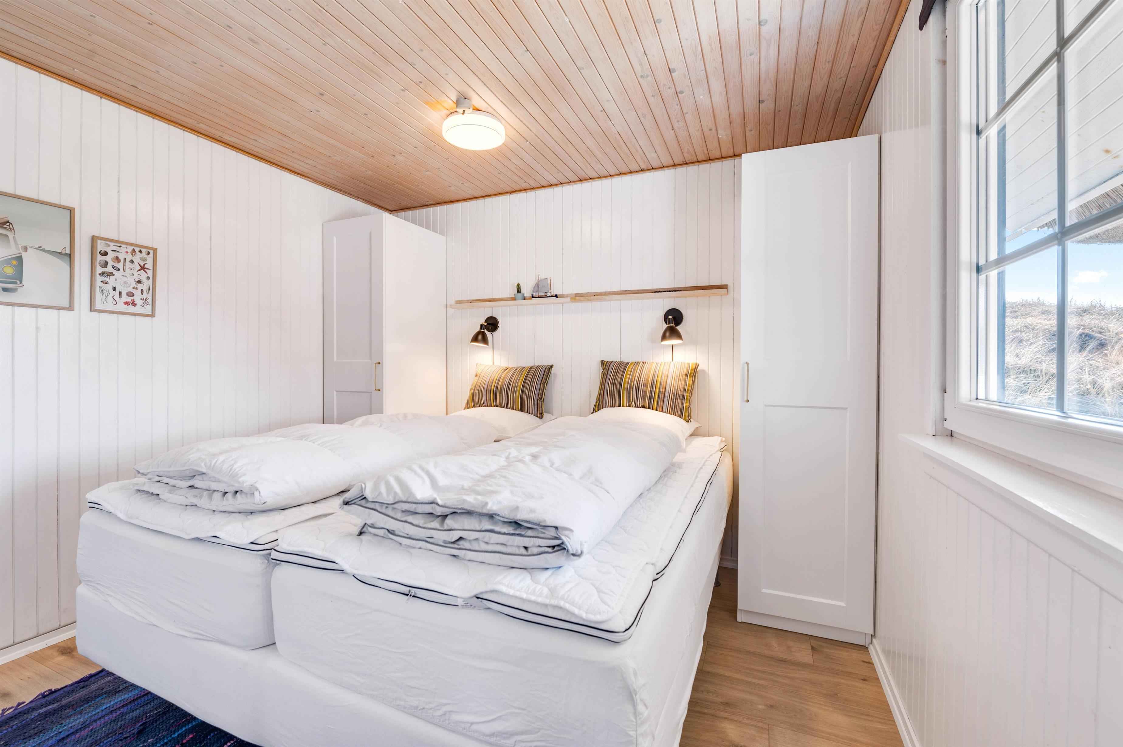 Sovepladserne fordeler sig i 3 soverum. Et værelse er med en dobbeltseng, mens der på de resterende værelser er enkeltsenge.