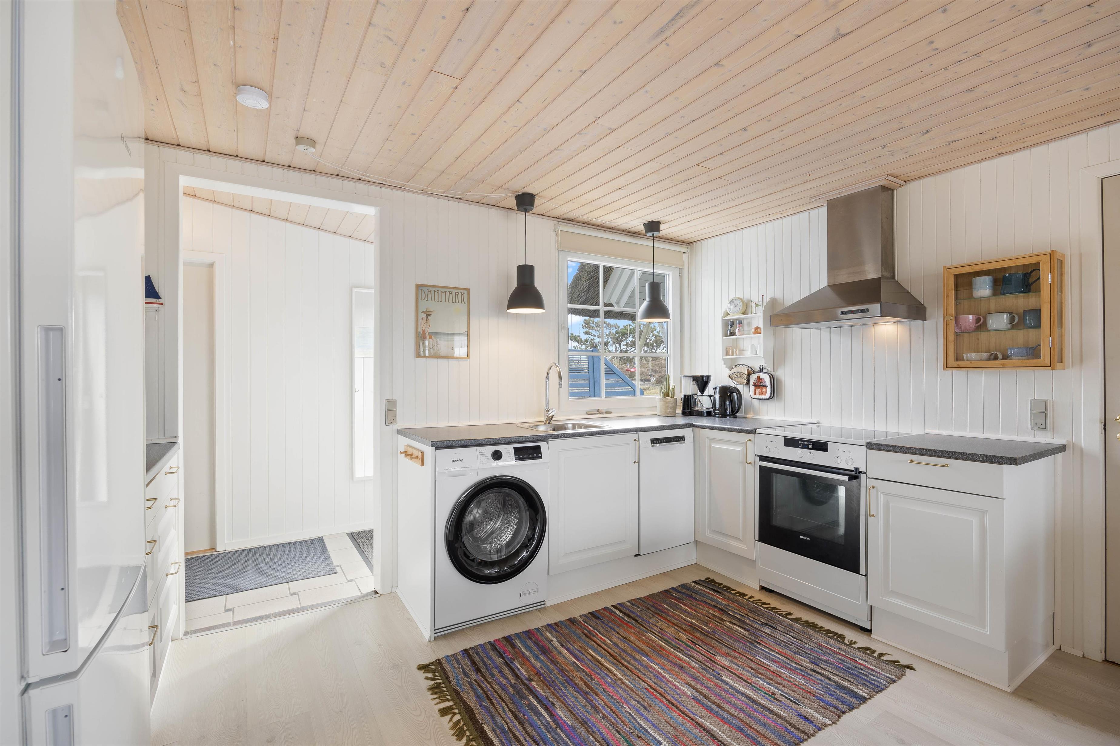 Sommerhusets hjerte er det store opholdsrum-spisestue med et velindrettet køkken-hjørne. Her finder du bl.a. 90 L fryser, mikroovn og opvaskemaskine, som alt sammen gør det nemt at stå for madlavningen.