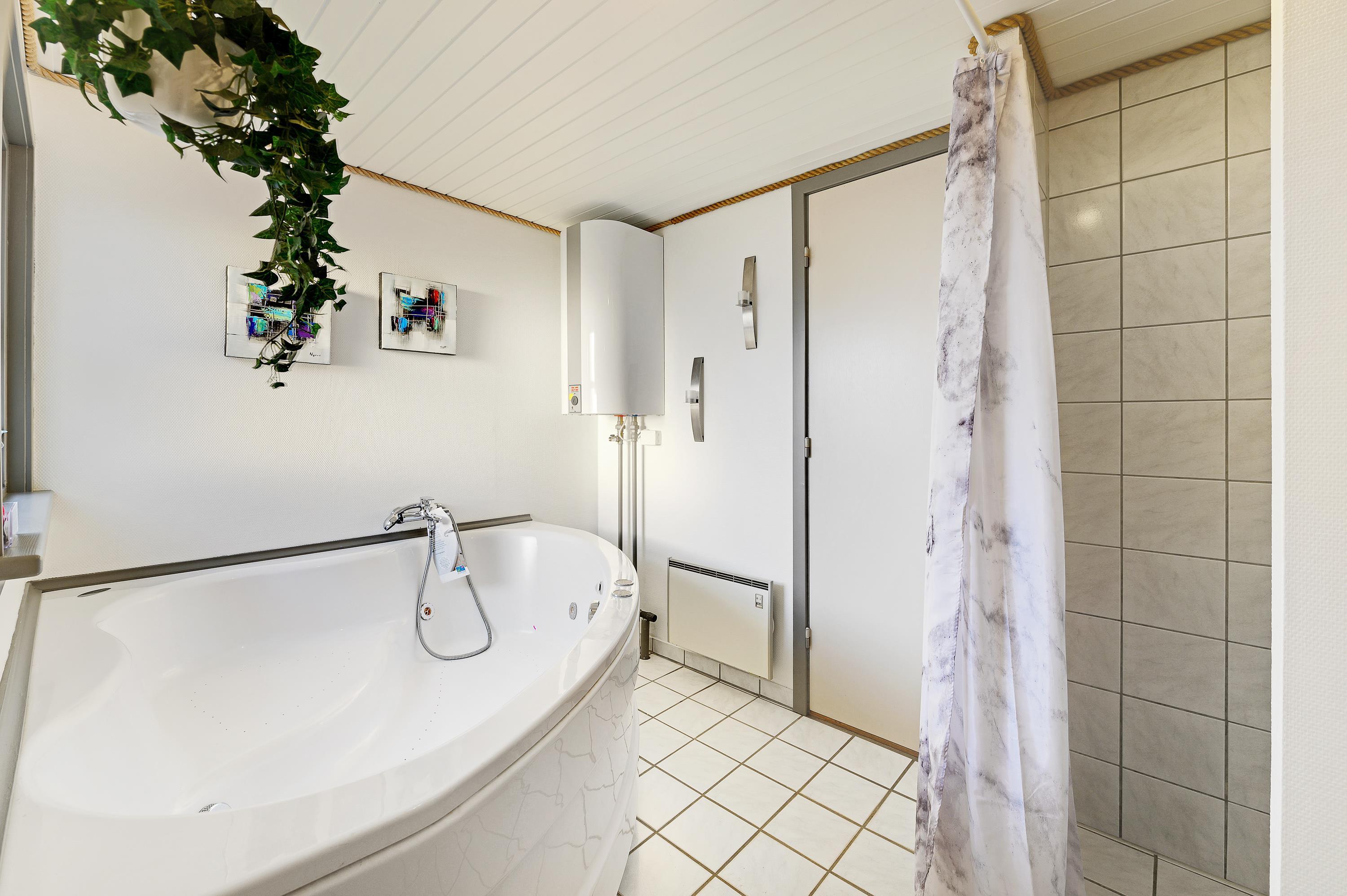 Feriehuset byder på flere gode overraskelser, og ud over de praktiske goder som opvaskemaskine, vaskemaskine og tørretumbler. På badeværelset finder I sommerhusets sauna og spabad, så I kan nyde fridagene ekstra meget, og blive varmet ordentligt igennem efter en lang dag i den friske havluft.