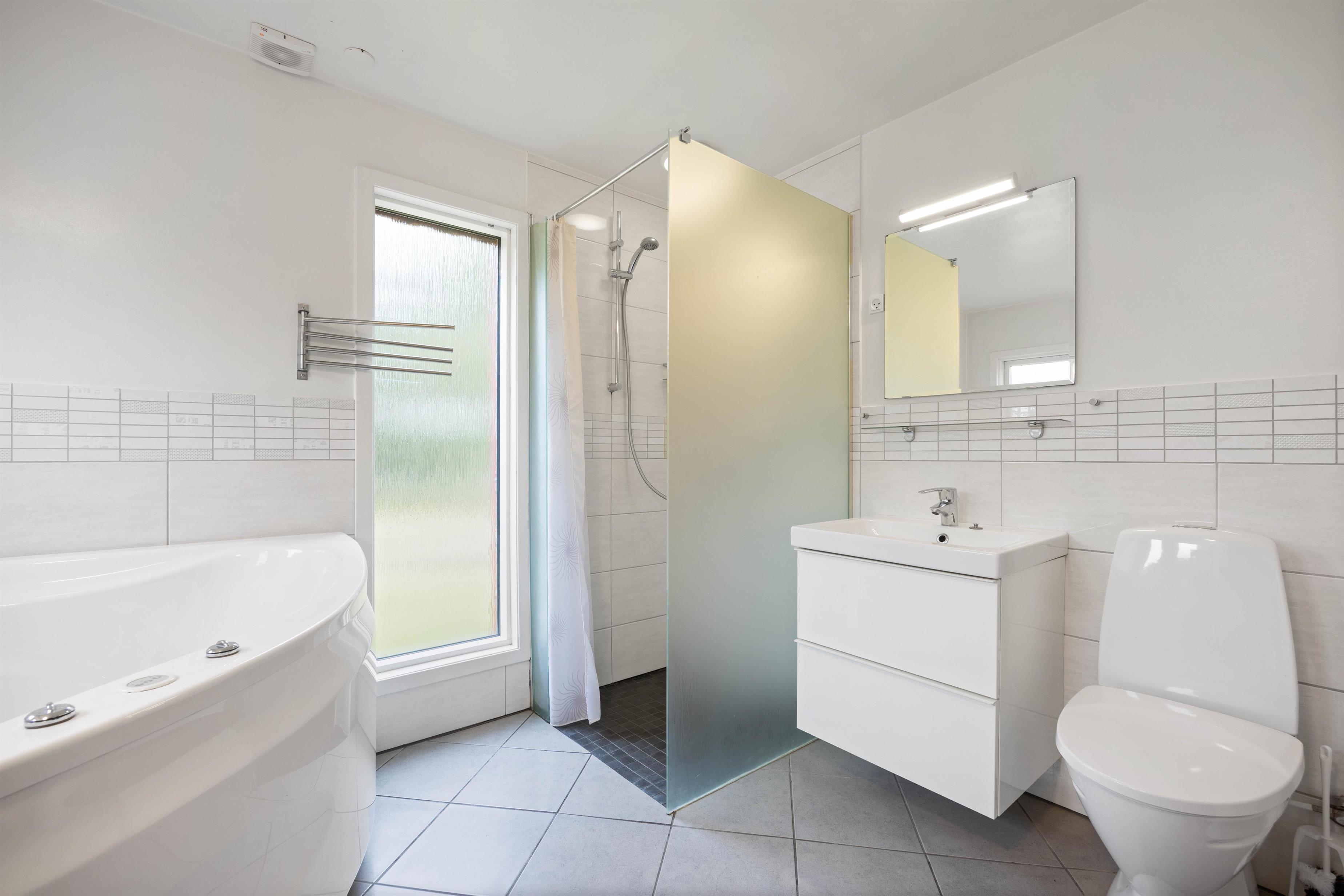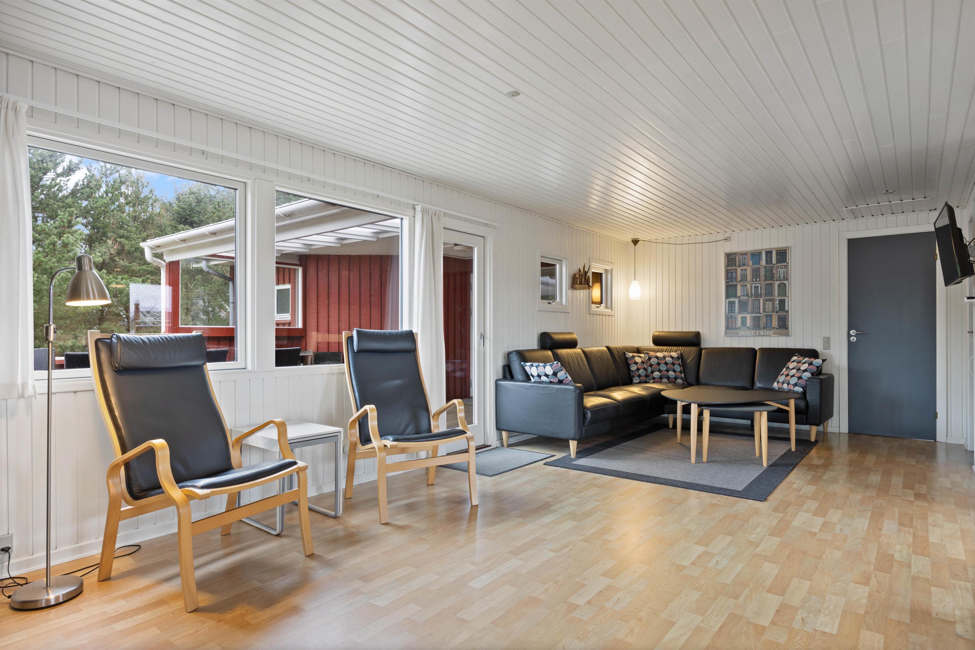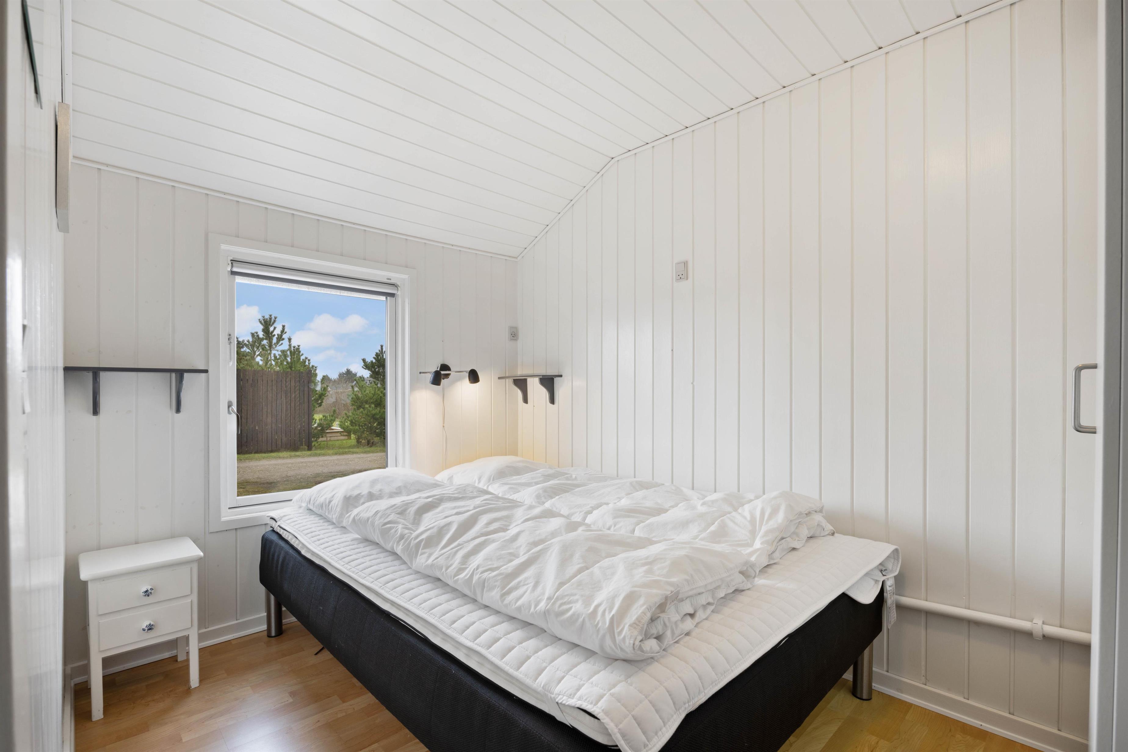 Sommerhuset har hele 5 lyse soveværelser, hvor de 4 er med dobbeltsenge og 1 er med 2 enkeltsenge. Der findes 2 gode badeværelser med gulvvarme. Det ene badeværelse er med spa og det andet er med sauna. Så her er alle muligheder for afslapning og afstresning efter en kølig dag i klitterne.