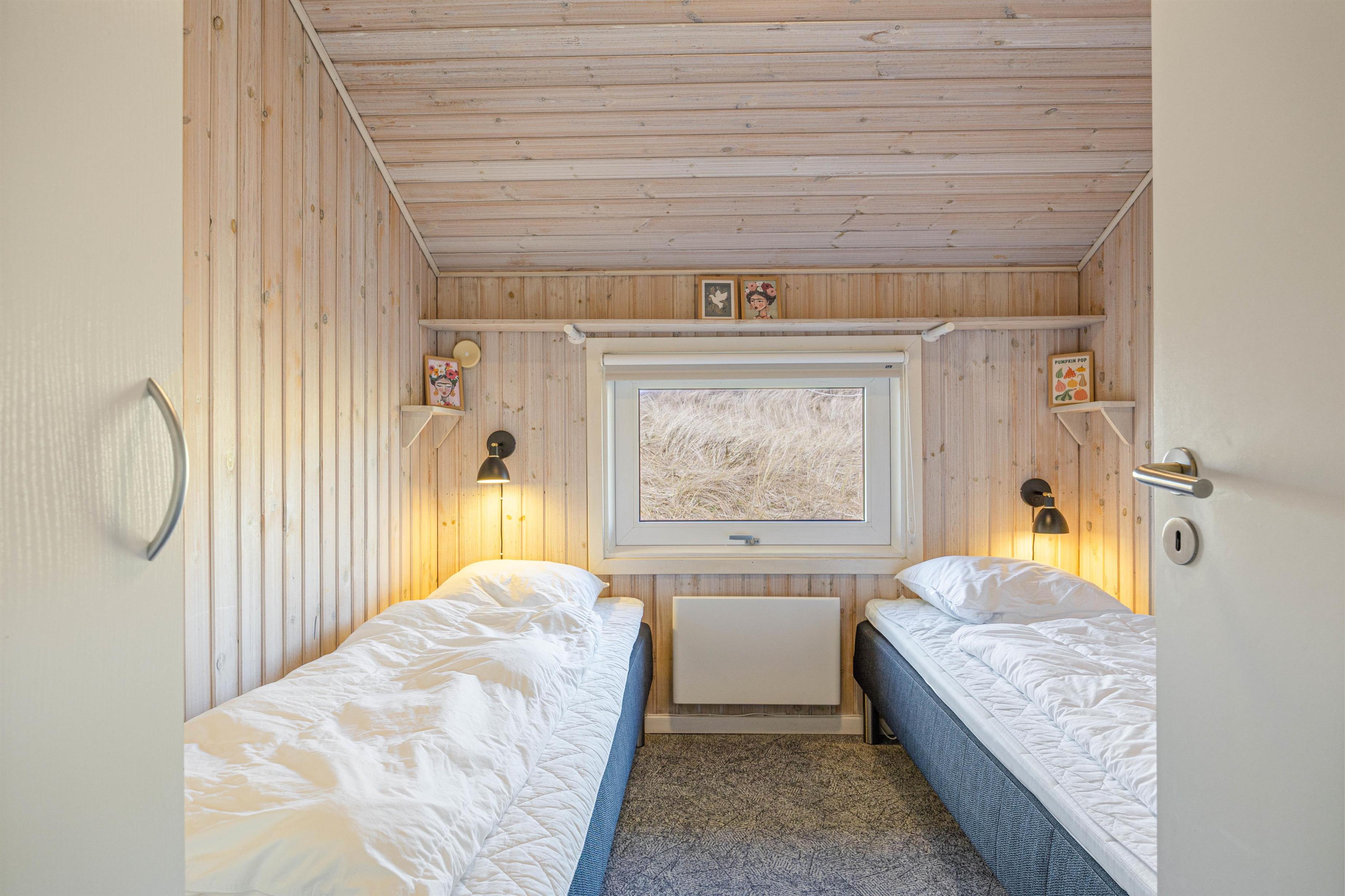 Sommerhuset er beliggende i Bjerregård, tæt på stranden og Vesterhavet. Her kan familien nyde en afslappende ferie væk fra hverdagens stress og jag – her er plads til 8 gæster og deres 2 hunde. Her er 3 soverum, hvoraf 2 er indrettet med dobbeltseng og det sidste med 2 enkeltsenge. De sidste 2 sovepladser findes i stuen i form af en hyggelige alkove. Her vil børnene helt sikkert elske at sove i deres egen lille hule.