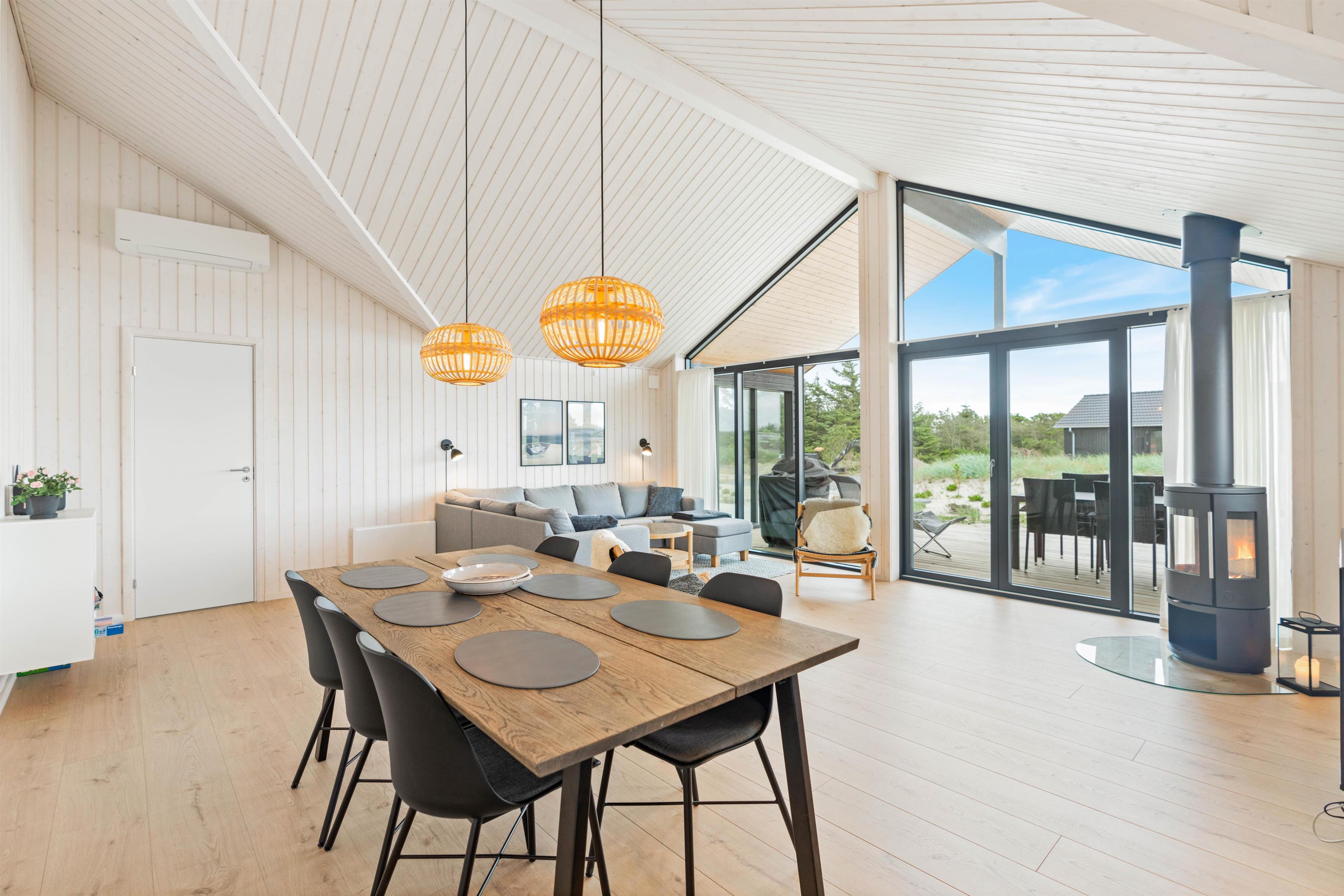 I stuen finder I sommerhusets brændeovn samt den energibesparende varmepumpe. Så tænd op i brændeovnen og sæt jer med et glas vin til lyden af ildens knitren og mærk varme sprede sig i rummet. Eller hvad med at byde hinanden på et spil billard, dart eller bordtennis? Lav en feriekonkurrence og kår årets vinder i det fede aktivitetsrum.
