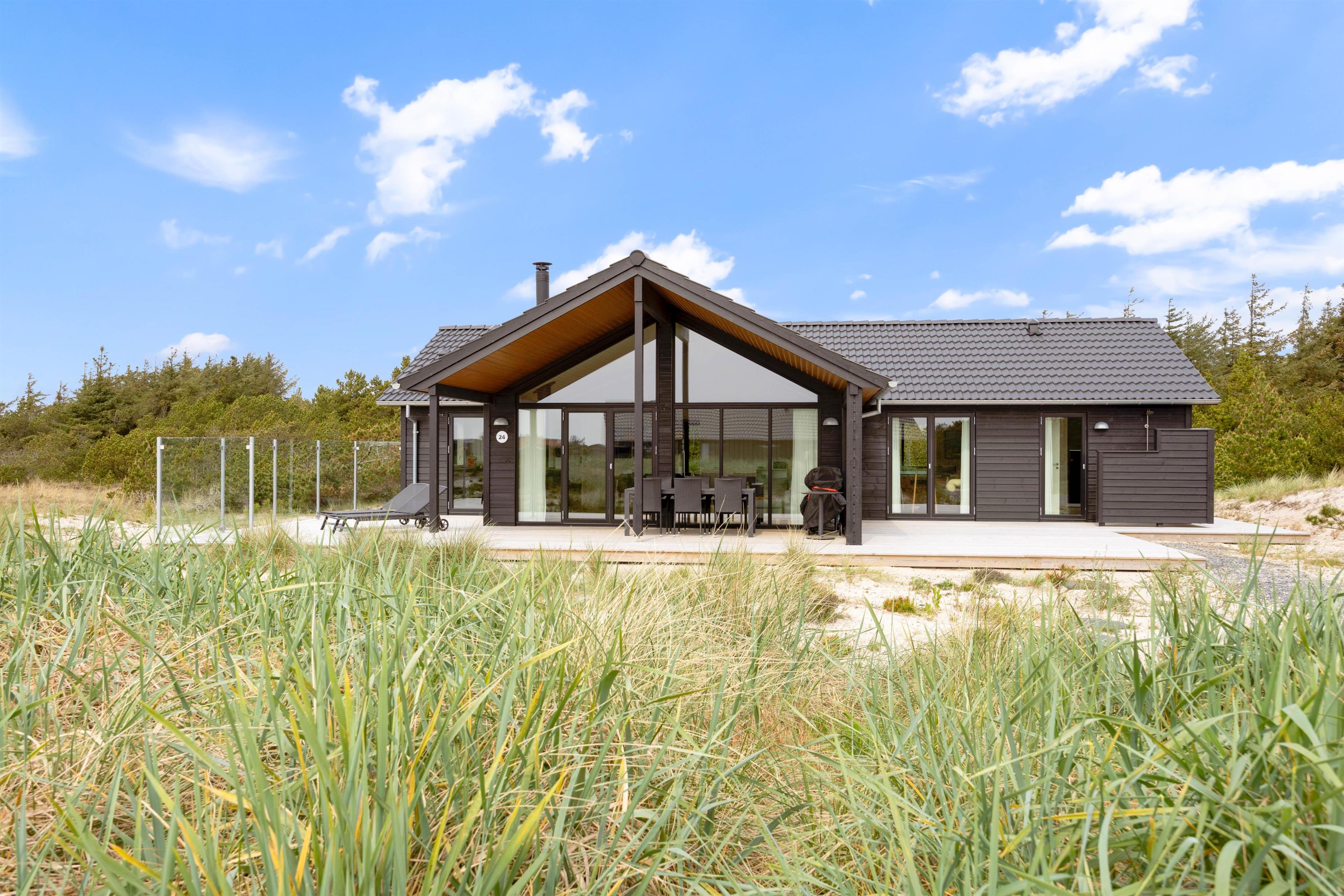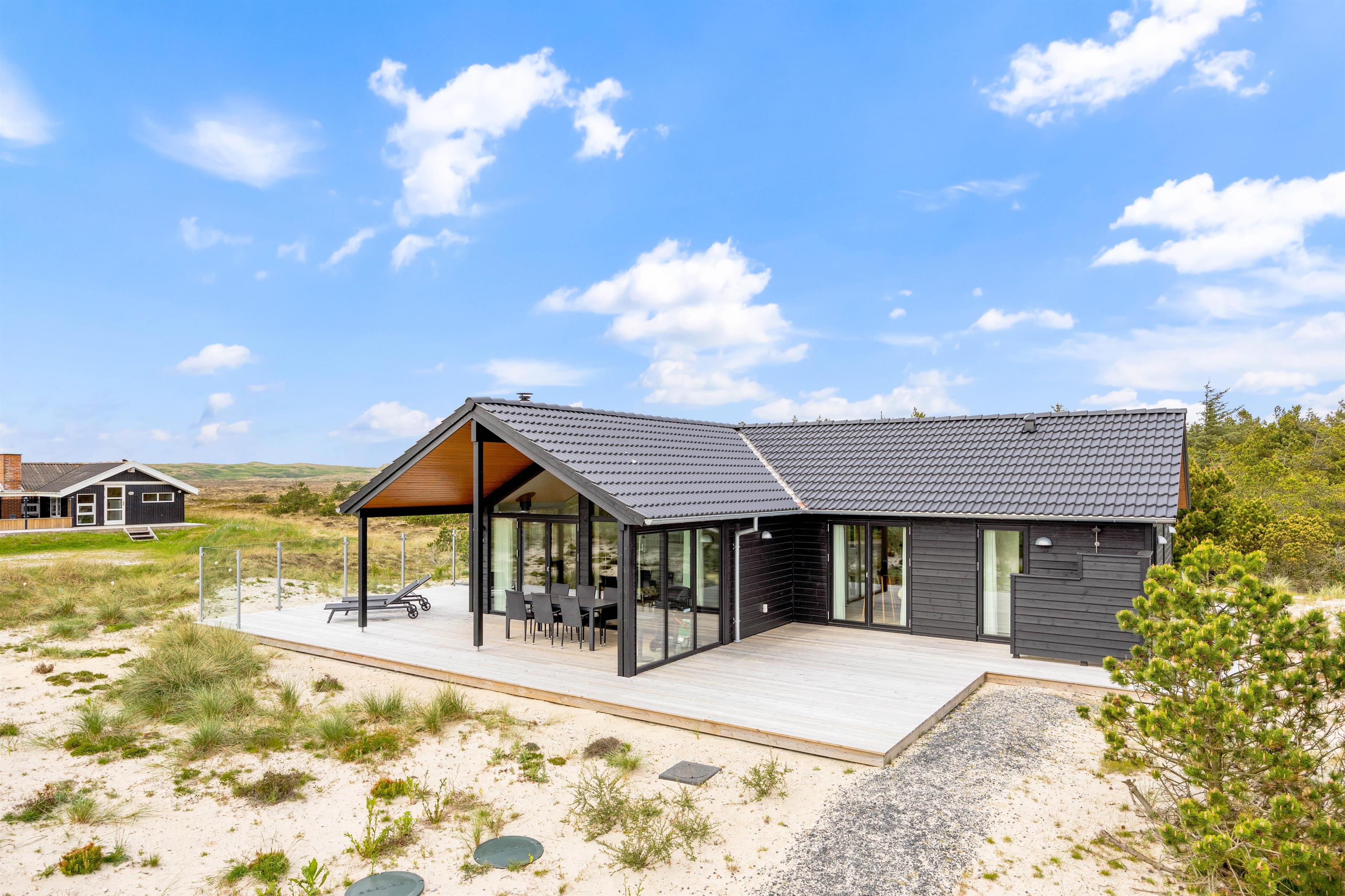 Går I med drømmen om et lækkert sommerhus ved Vesterhavet? Så er dette lækre sommerhus på Arvidvej 24 et godt bud på jeres næste feriedomicil. Sommerhuset har med sine 120 m2 rigeligt plads til hele familien. Det er bygget i 2022 og er beliggende i et roligt område med det skønne hede landskab lige uden for døren. En af Danmarks smukkeste sandstrande er beliggende kun 700 m fra feriehuset og nåes hurtigt. Ved sommerhuset er det muligt at oplade jeres el-bil ved hjælp af et el-ladestik.