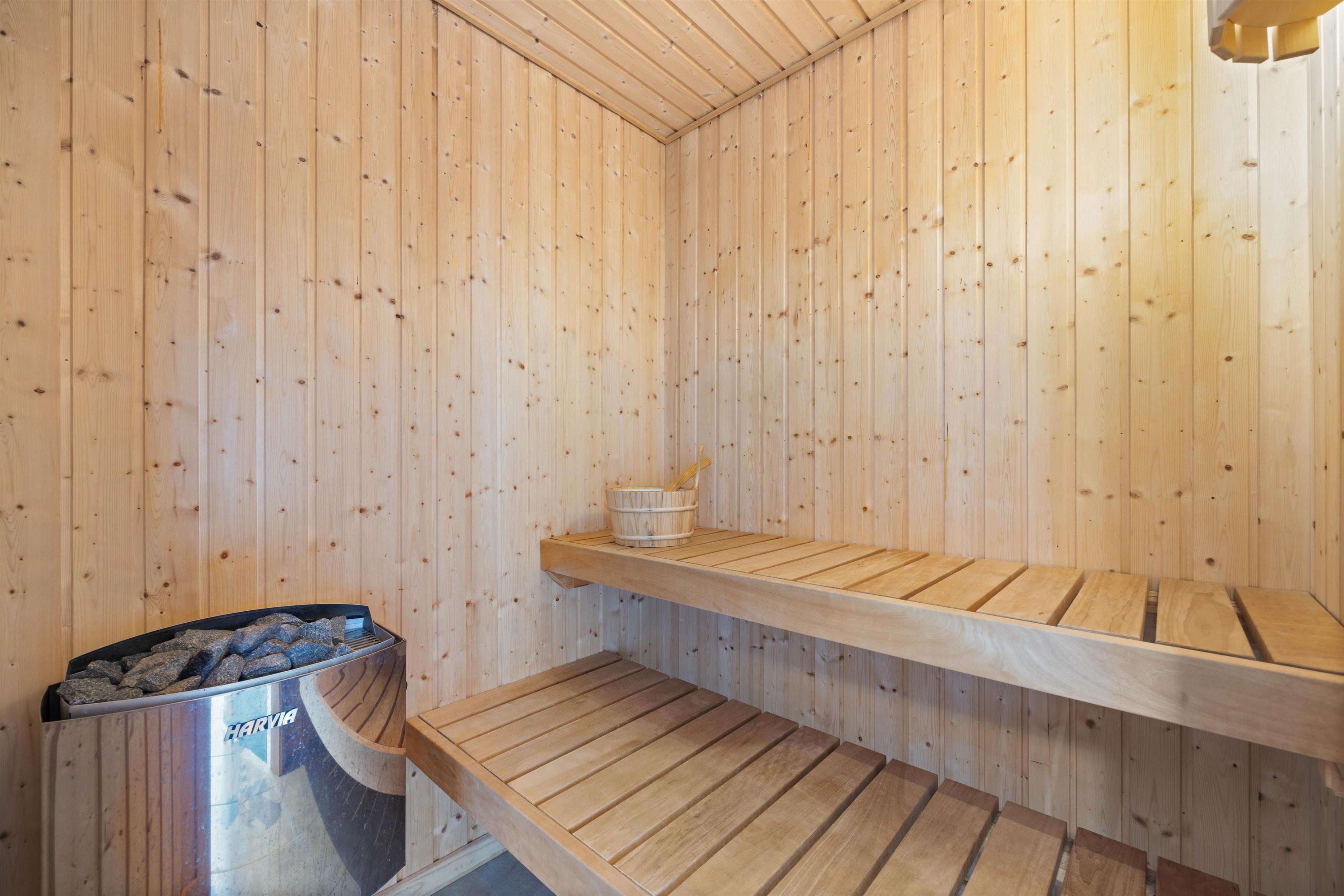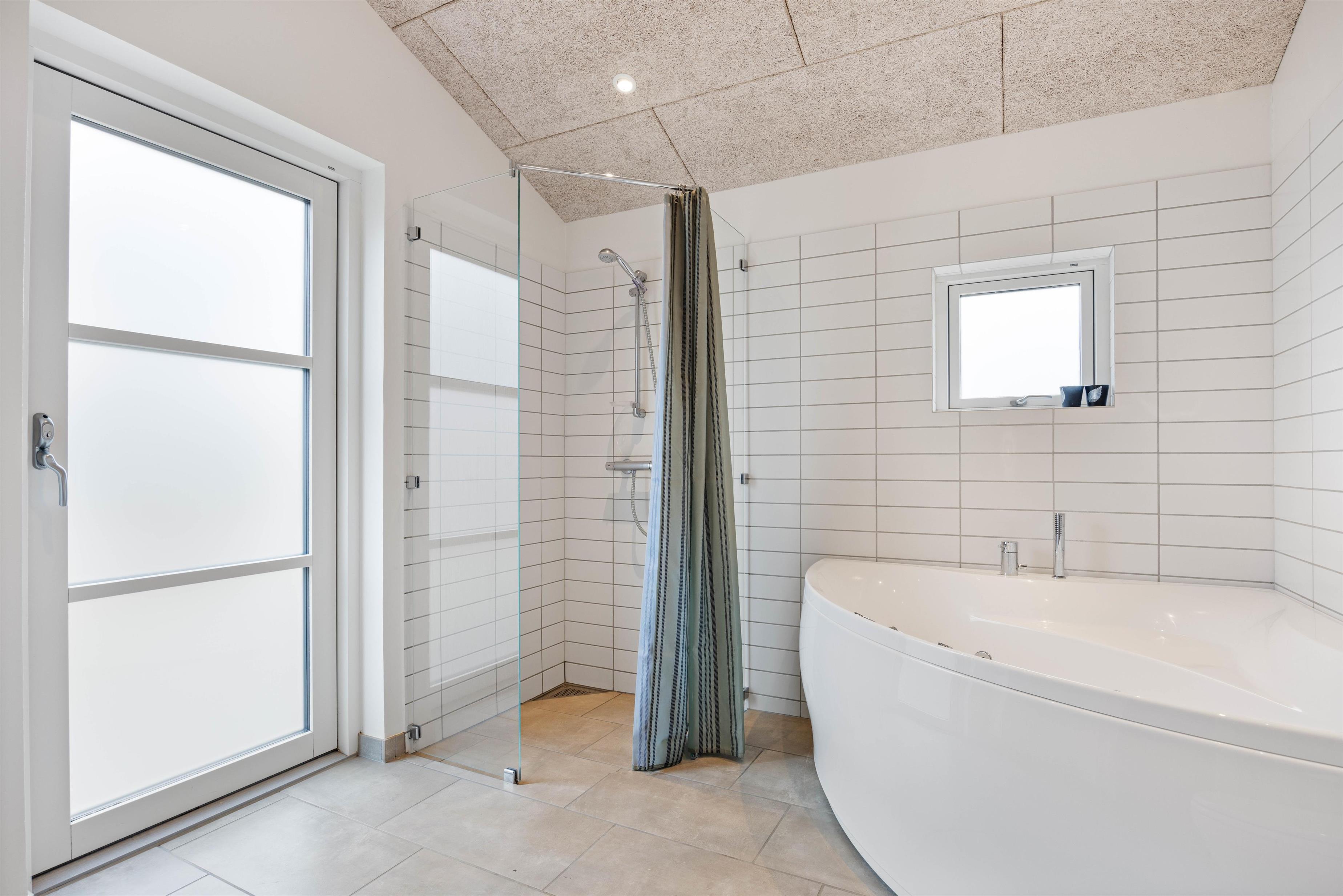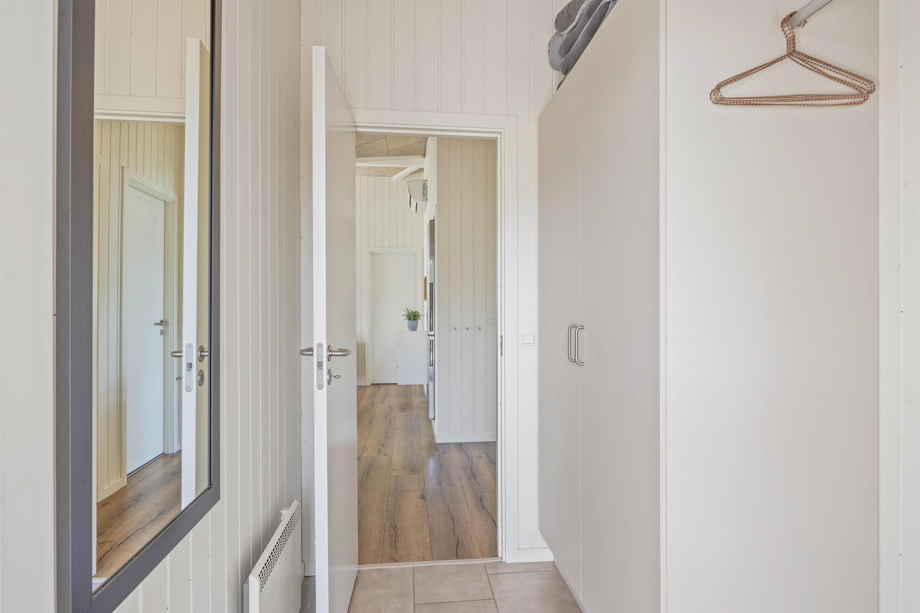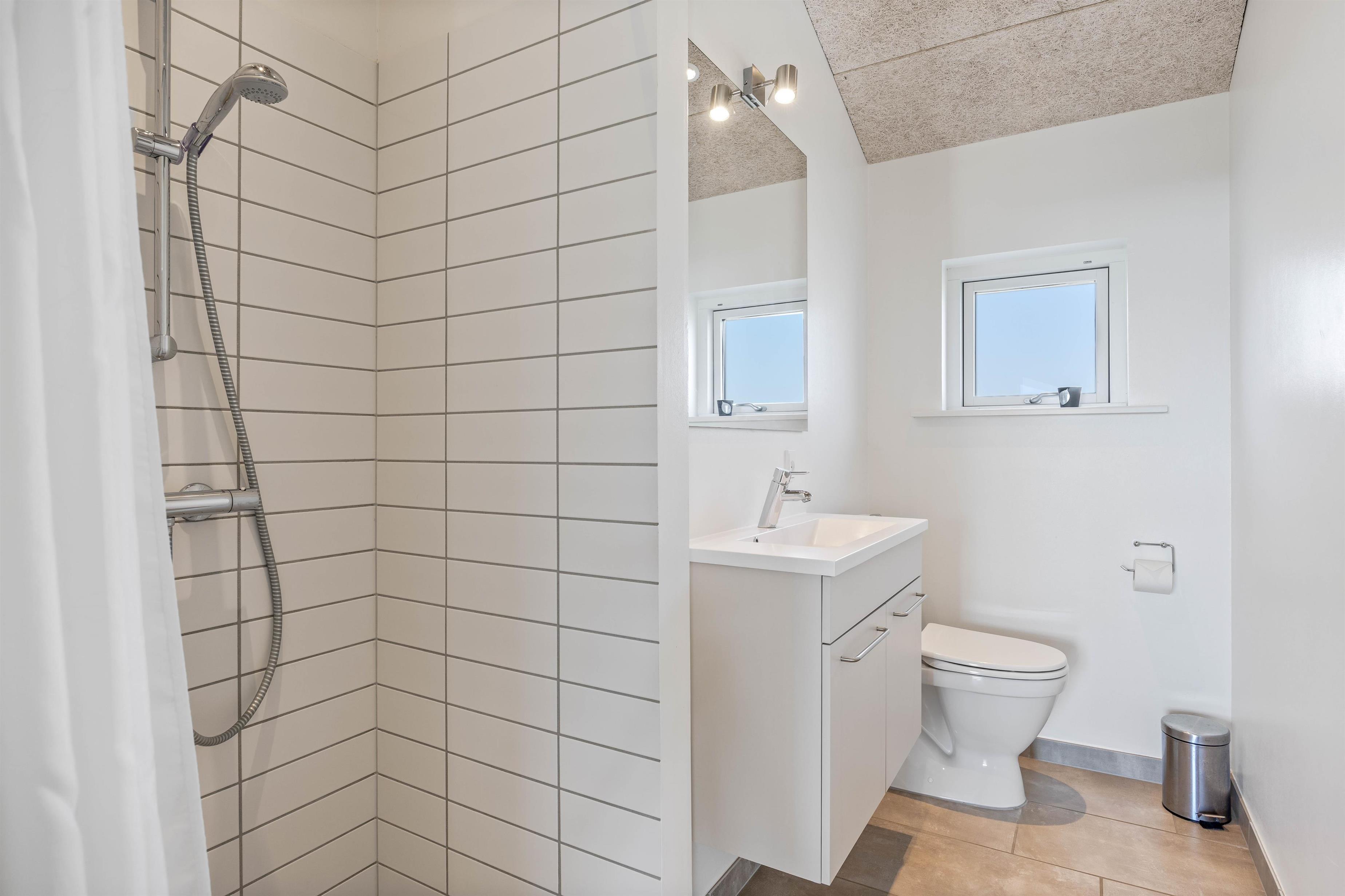 Her er 3 soverum samt 2 badeværelser, hvoraf det største indbyder til afslapning med spa og sauna. Atmosfæren er rar med loft til kip, rolige farver og store vinduespartier mod syd. De store vinduespartier i køkkenalrummet giver et fantastisk naturligt lysindfald.