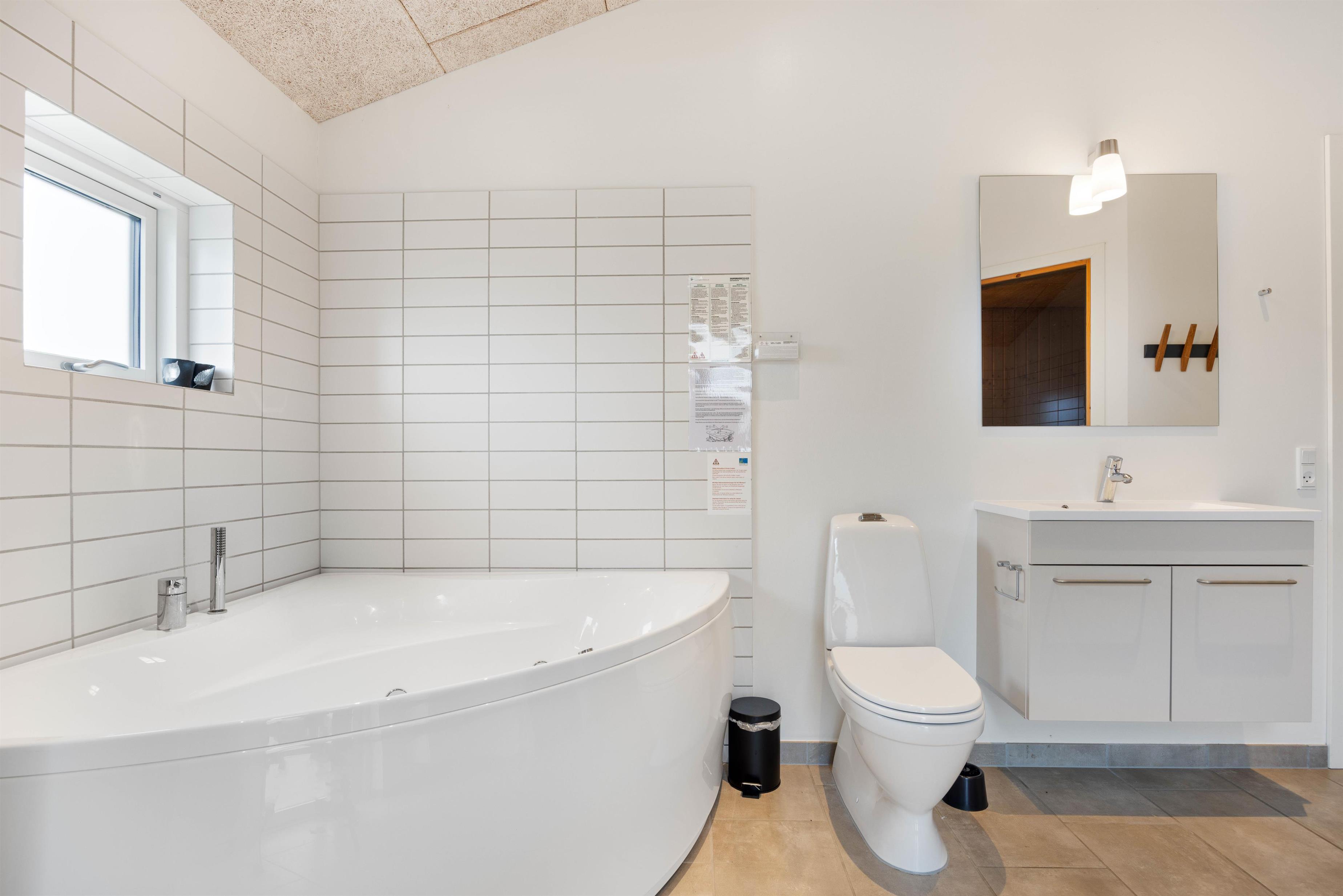 Lækkert og velplejet sommerhus med alt hvad I kan ønske jer til en vellykket ferie med børn og hund. Beliggende i et naturskønt og roligt område finder I dette nydelige feriehus, hvorfra I bare har 800 meter til Danmarks største swimmingpool, Vesterhavet, hvor både to- og firbenede kan nyde en frisk dukkert. På de køligere dage venter jer afslapning med spa og sauna.