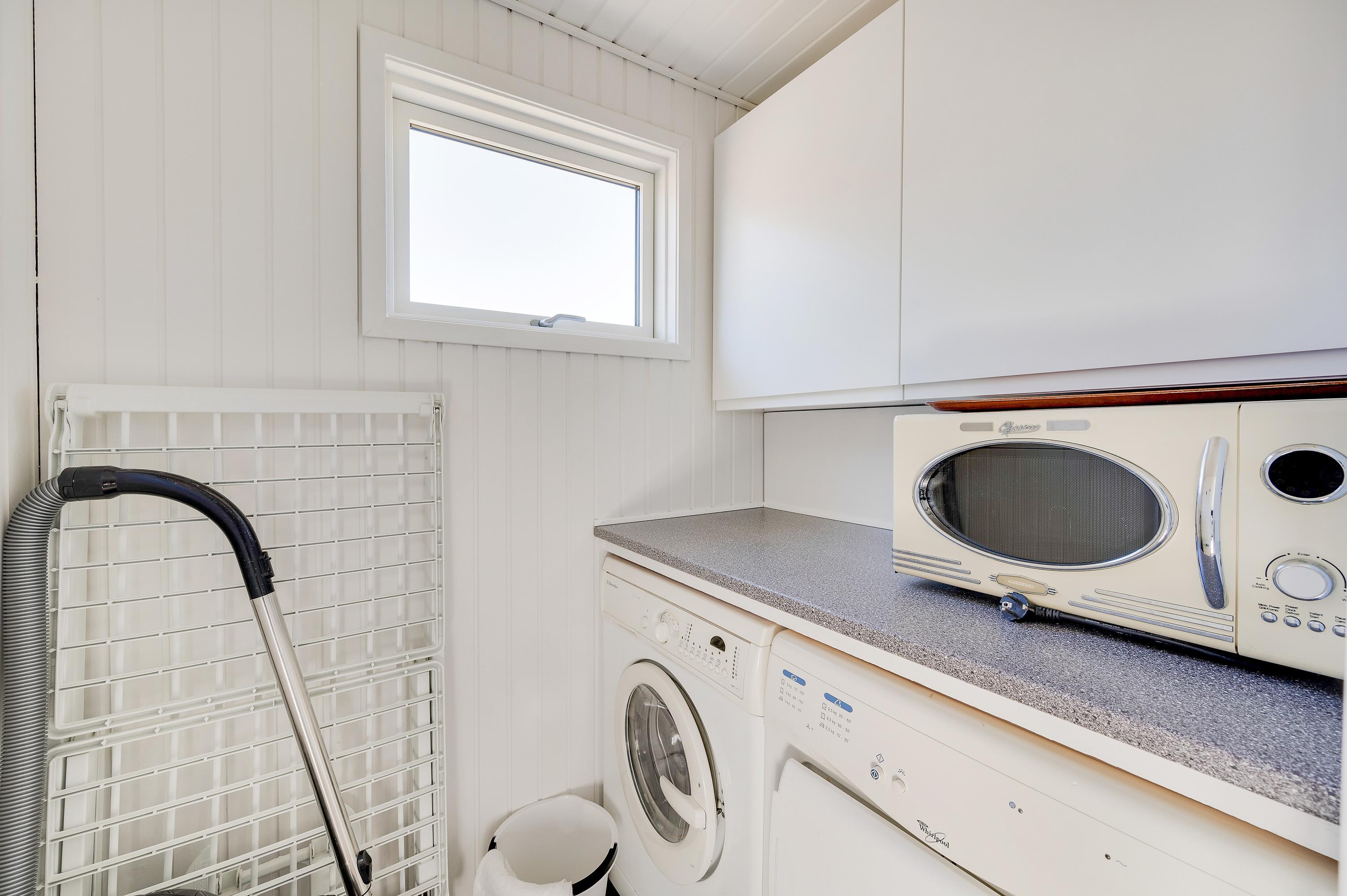 På badeværelset er der gulvvarme, så I ikke får kolde fødder under tandbørstningen. I sommerhuset er der desuden både vaskemaskine og tørretumbler, så I kan have rent tøj til hele ferien.