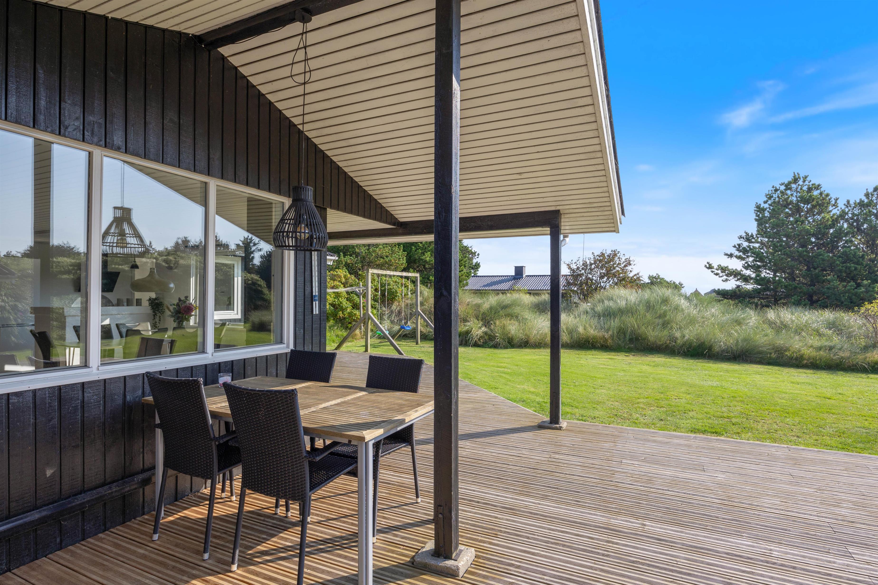 På den sydøst-vendte terrasse kan i nyde sommersolen imens børnene leger. Terrassen er afskærmet og delvist overdækket, så I kan sidde i læ for vind og vejr. Den overdækkede del er perfekt til aften, hvor I skal nyde et lækkert grillmåltid.