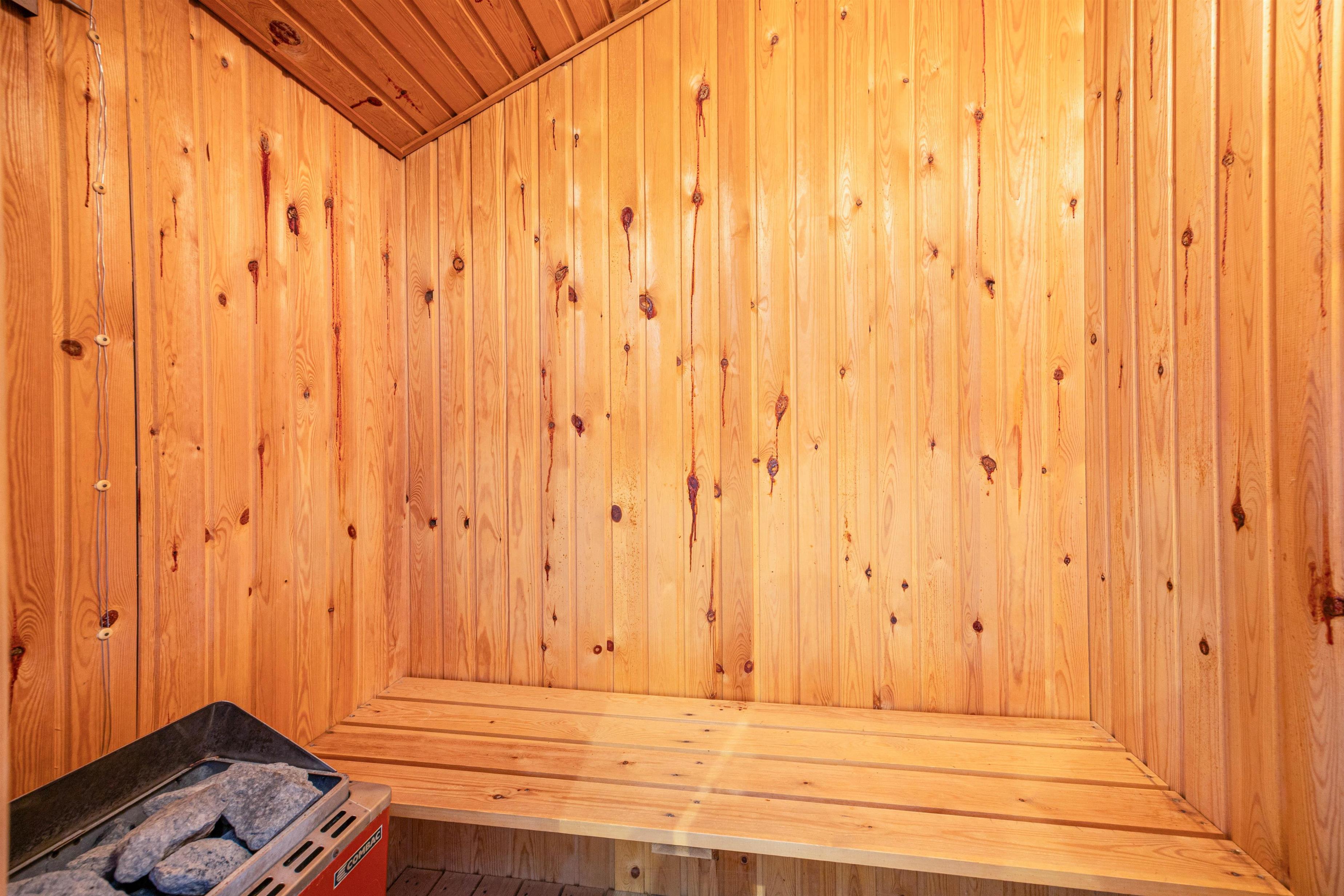 I forbindelse med badeværelset med gulvvarme kan I arrangere en lille wellnessaften med sauna og spa, hvor I kan slappe af efter en dag, fyldt med oplevelser. Der er både vaskemaskine og tørretumbler til jeres rådighed, så I kan rejse let og opfriske tøj og håndklæder i løbet af ferien.