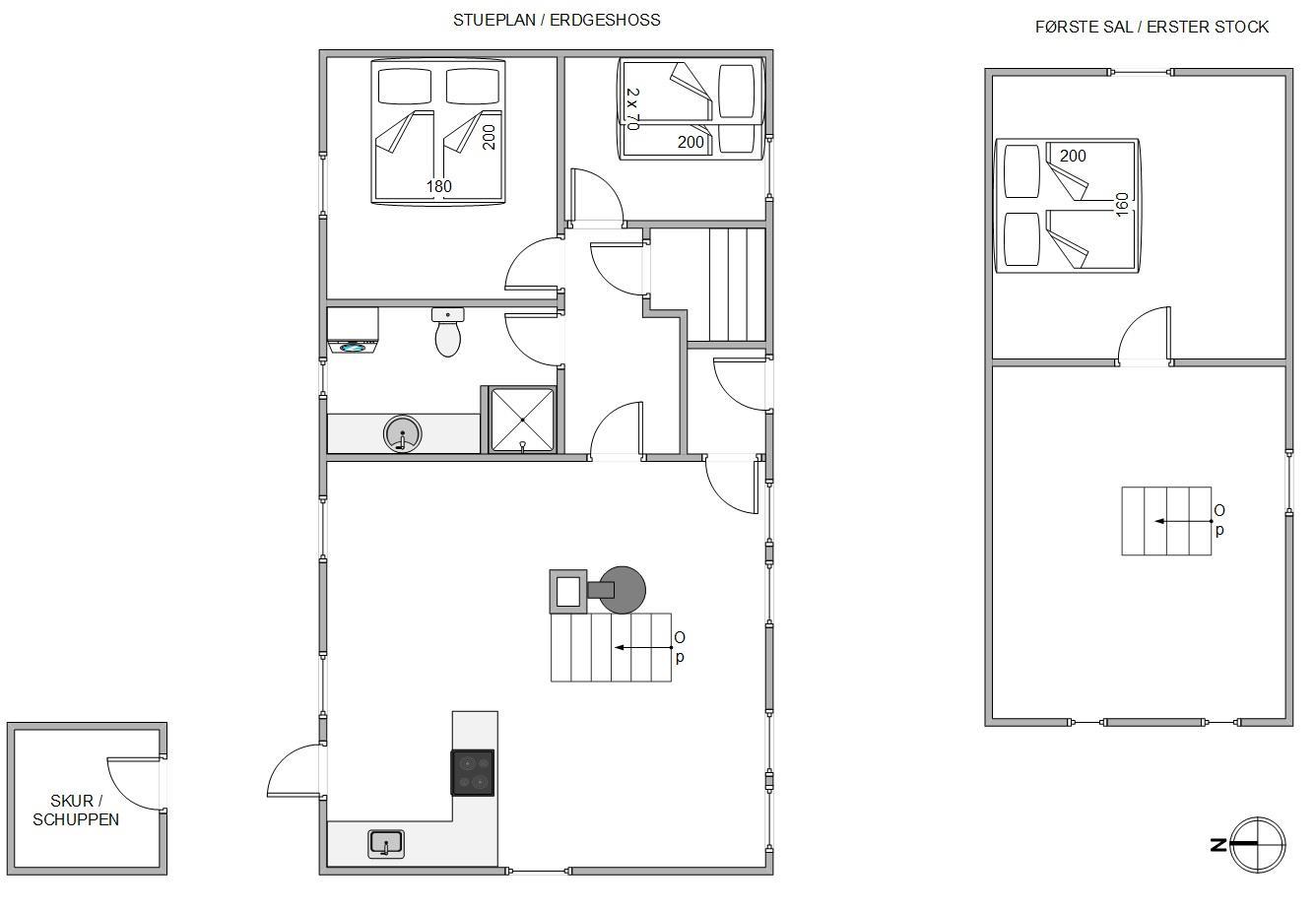 Det praktiske badeværelse med gulvvarme og den tilstødende sauna giver velvære og afspænding efter en begivenhedsrig dag ved Vesterhavet. I de 3 soveværelser er der 2 dobbeltsenge og et værelse med 2 enkeltsenge til fordeling imellem op til 6 personer.