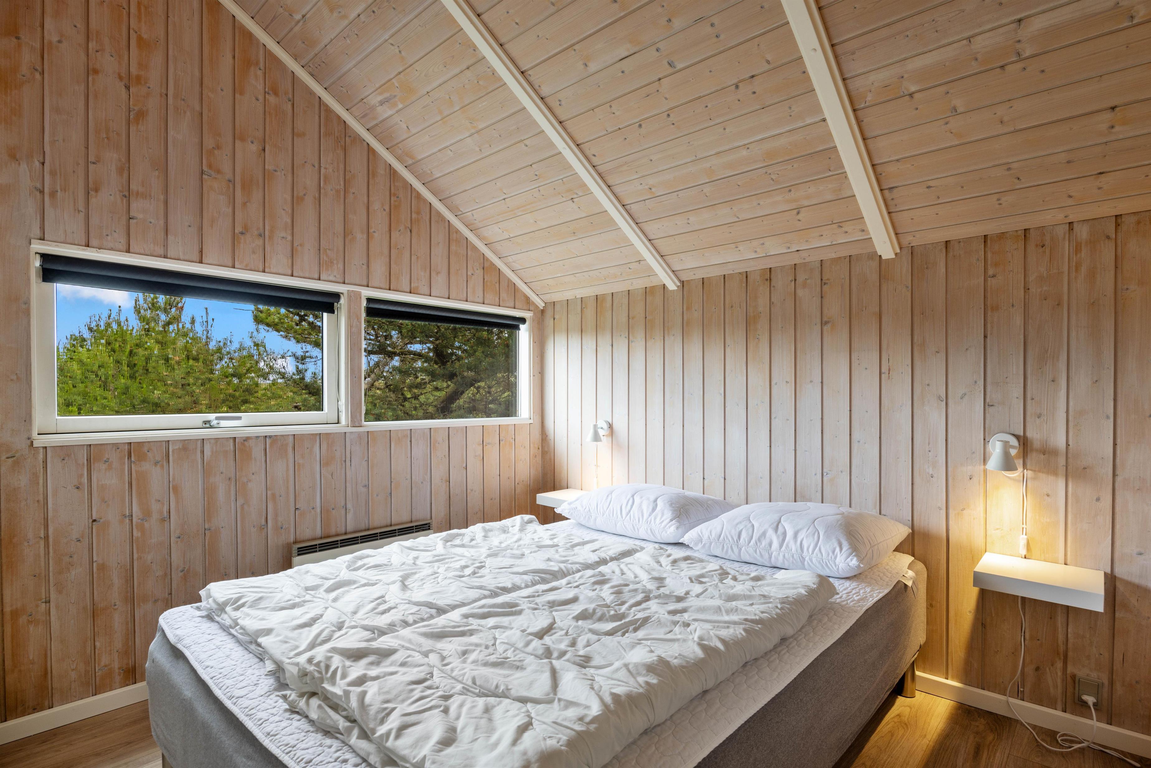 På en skøn naturgrund i Bjerregård finder I dette lyse og indbydende sommerhus på Blåbærheden 30. Her kan op til 8 personer og 2 hunde nyde en dejlig ferie i rolige omgivelser og nær Vesterhavet, der ligger 700 meter herfra. I sommerhuset er der lagt op til velvære og afslapning på badeværelset, hvor I både finder spabad og sauna. På den store og delvist overdækkede terrasse kan I nyde det gode sommervejr, mens børnene leger i sandkassen og gynger højt på gyngen.