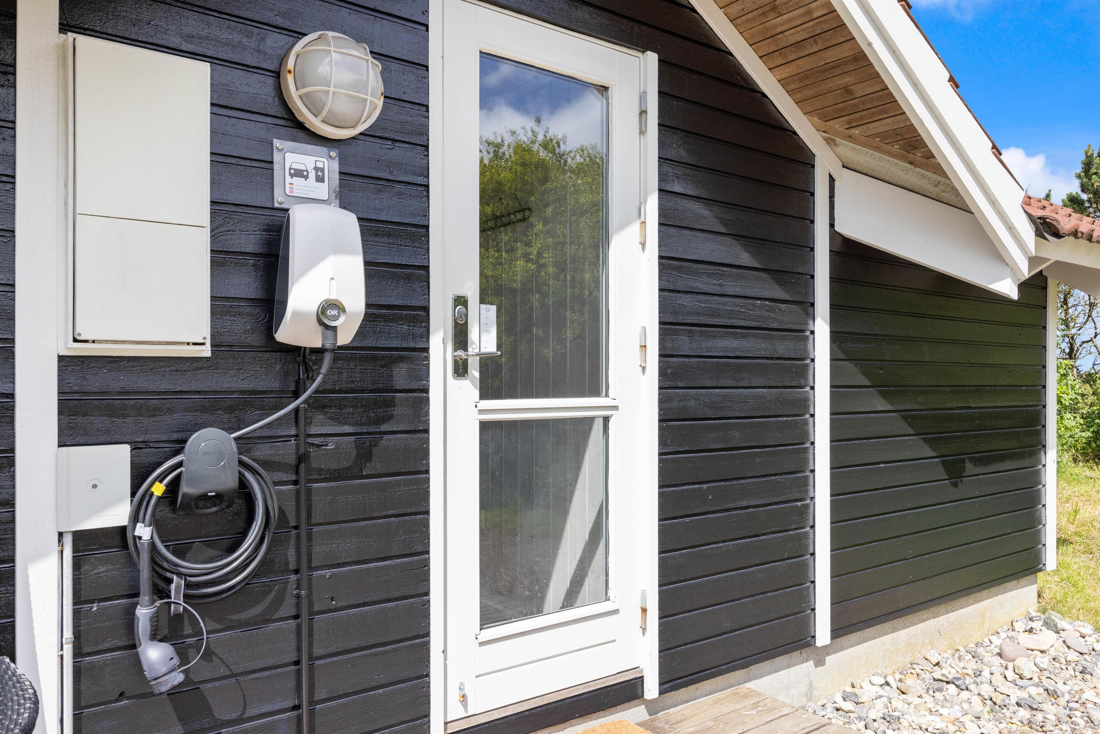 Ved sommerhuset er der ladestik, så elbilen kan oplades direkte ved feriehuset.